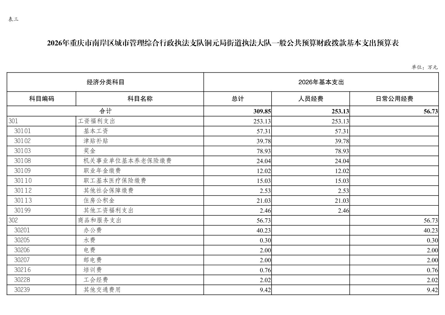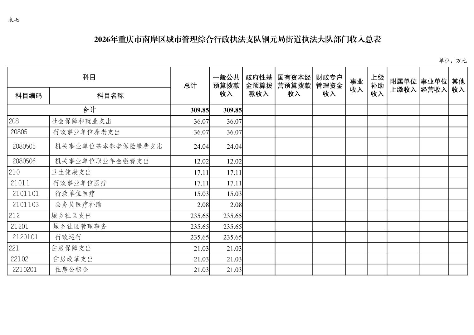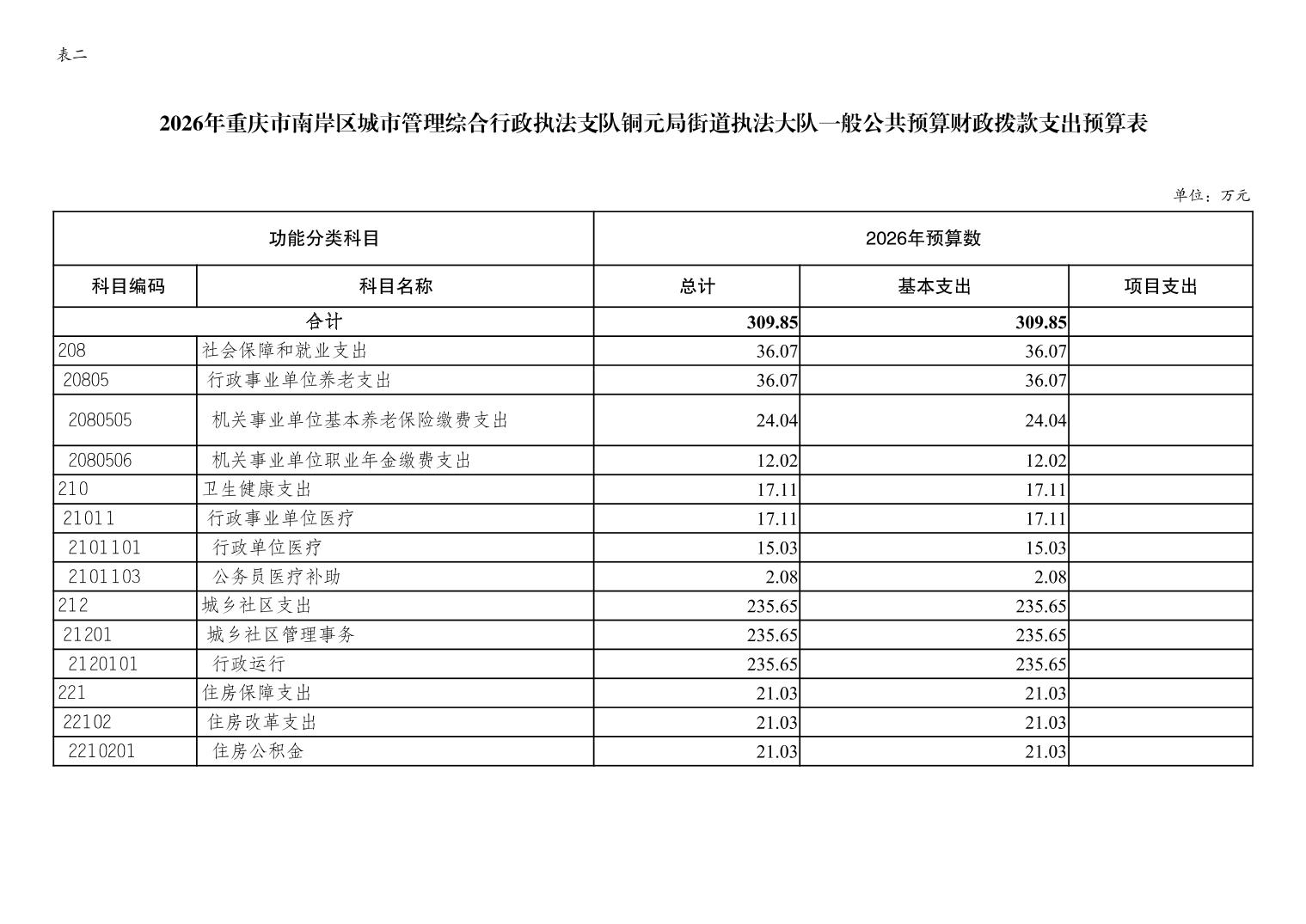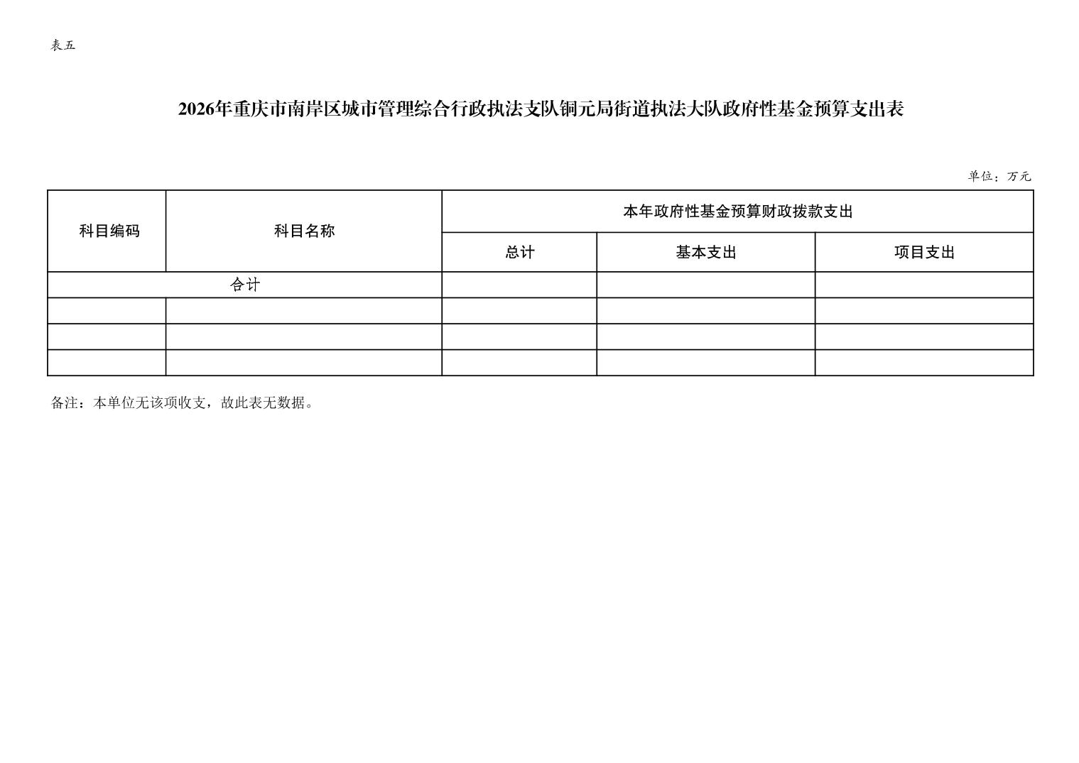 重庆市南岸区城市管理综合行政执法支队铜元局街道执法大队2026年单位预算情况说明
