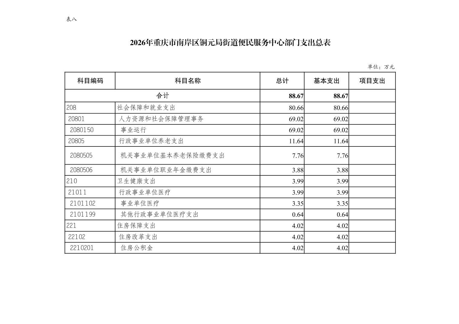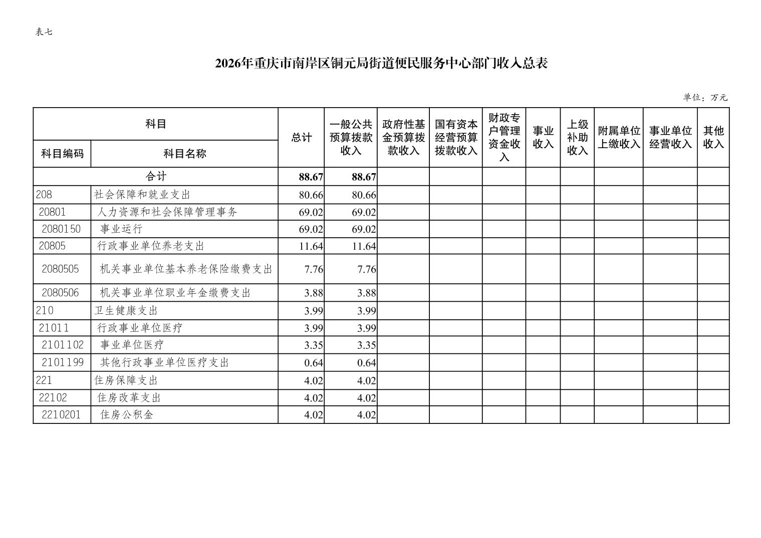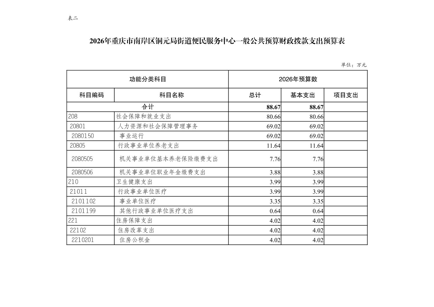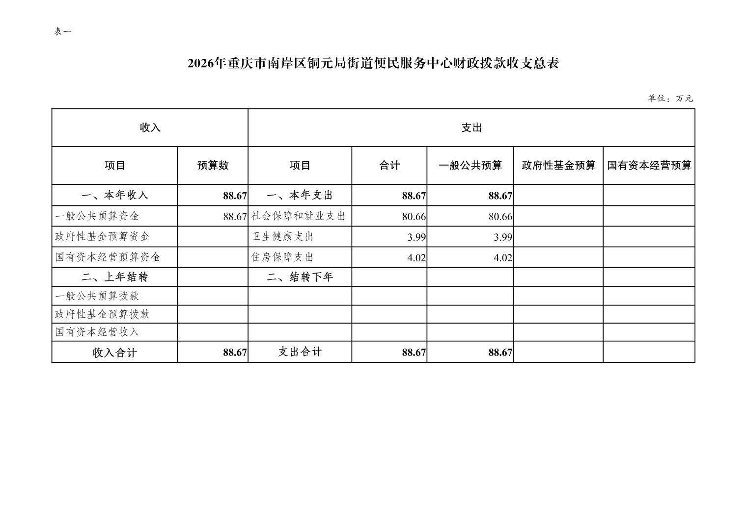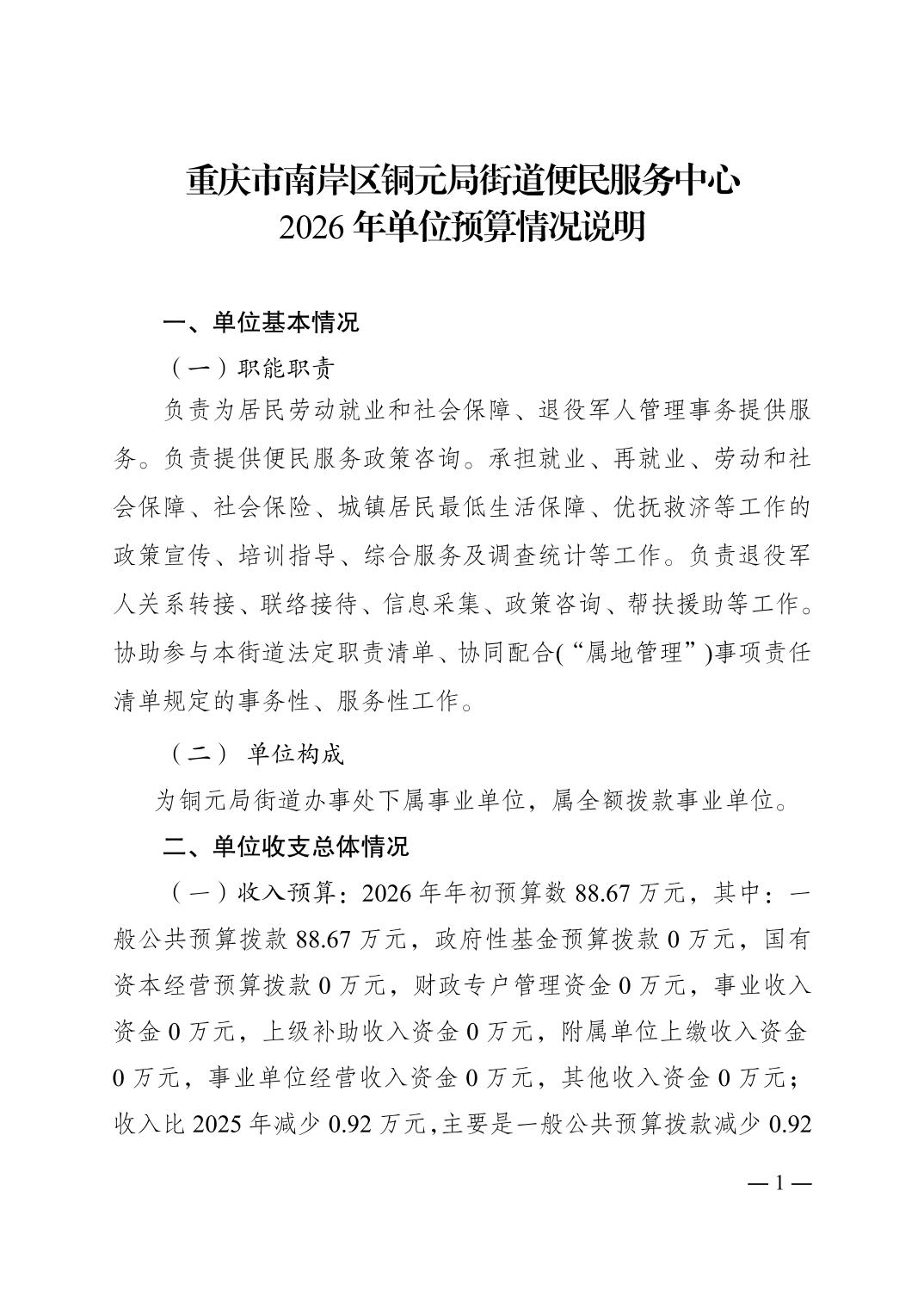 重庆市南岸区铜元局街道便民服务中心2026年单位预算情况说明