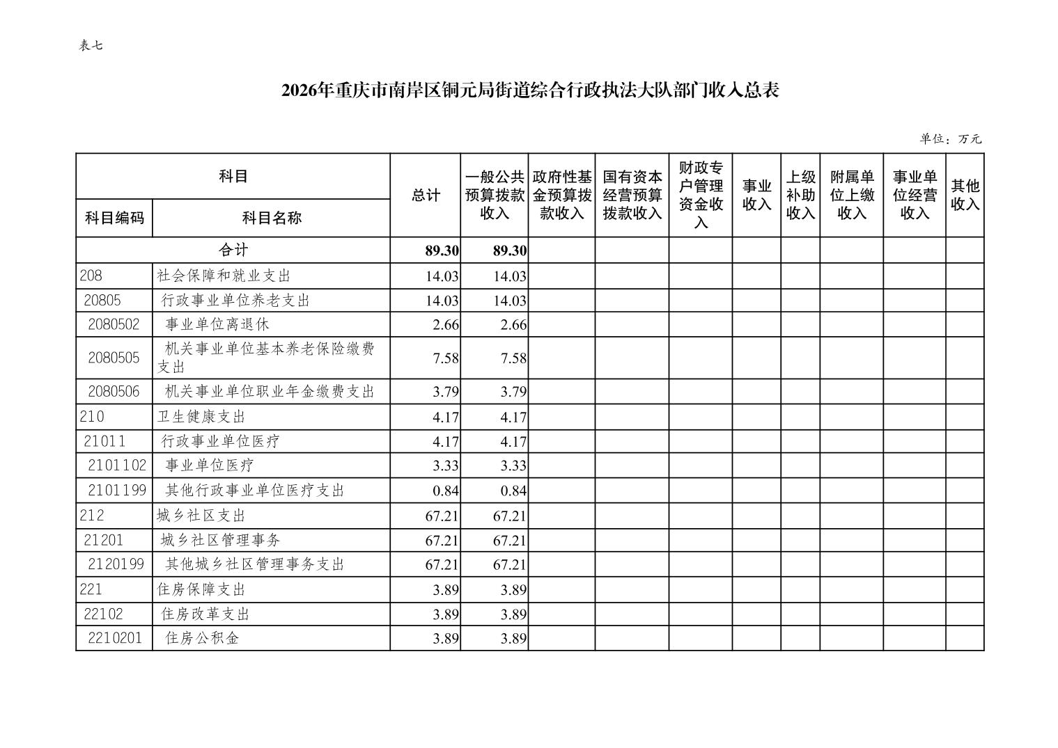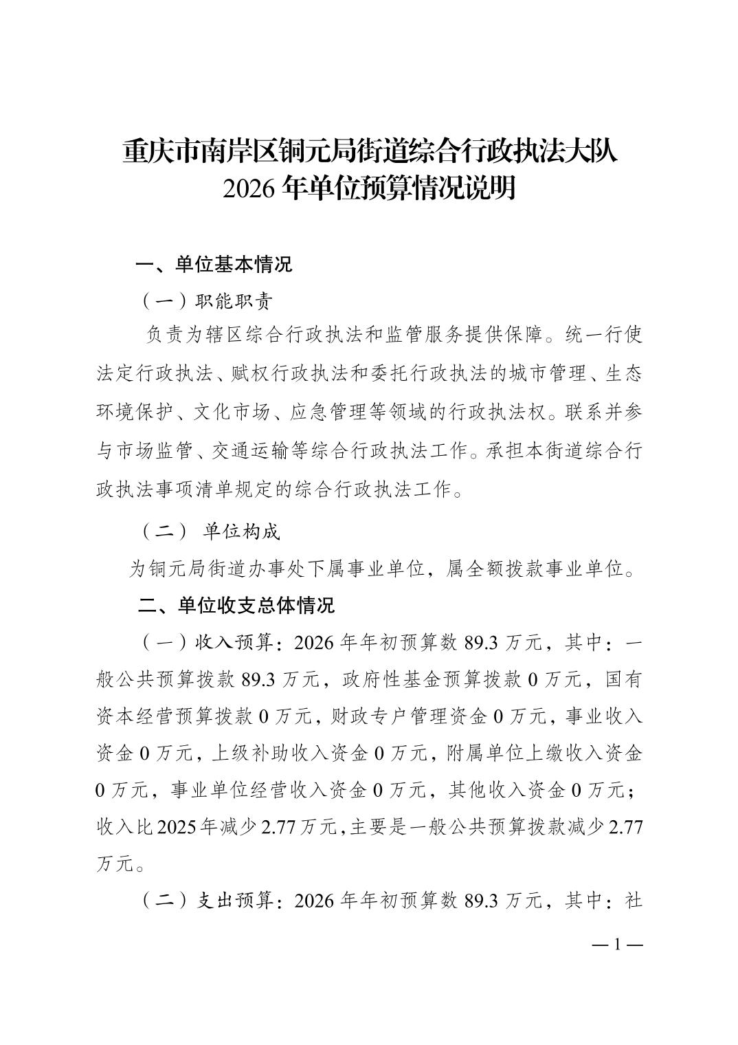 重庆市南岸区铜元局街道综合行政执法大队2026年单位预算情况说明