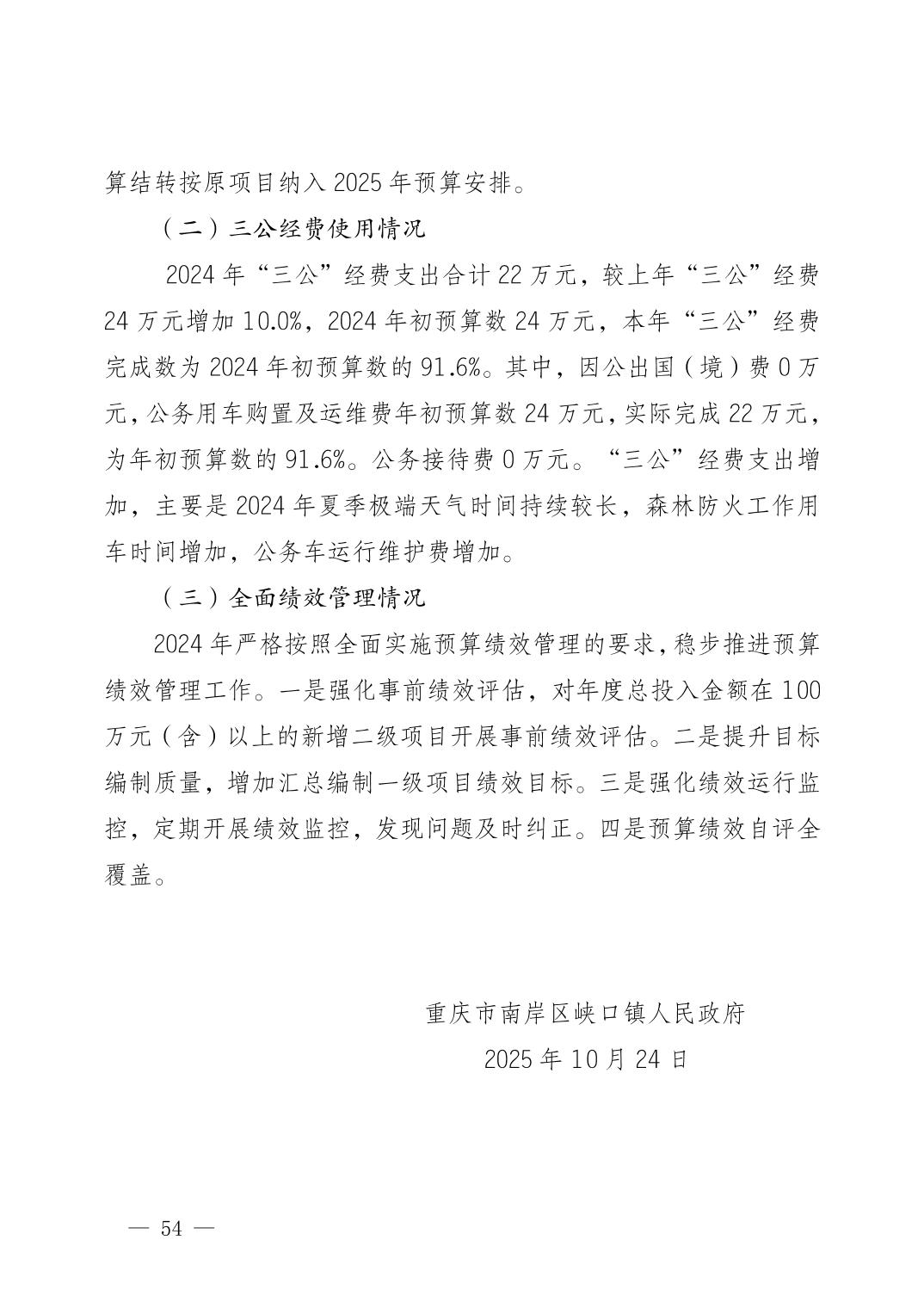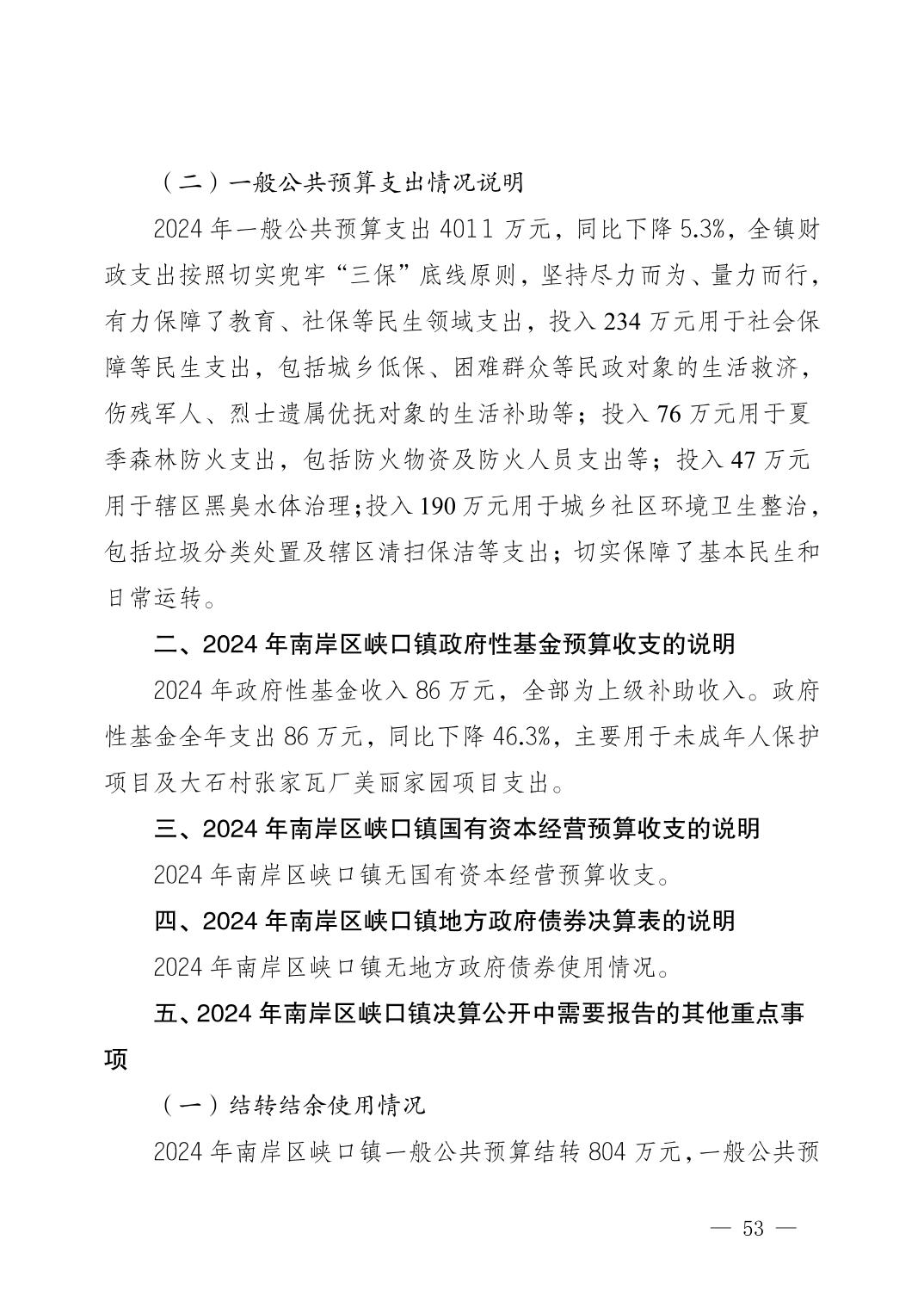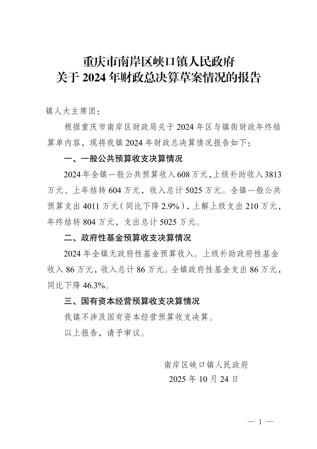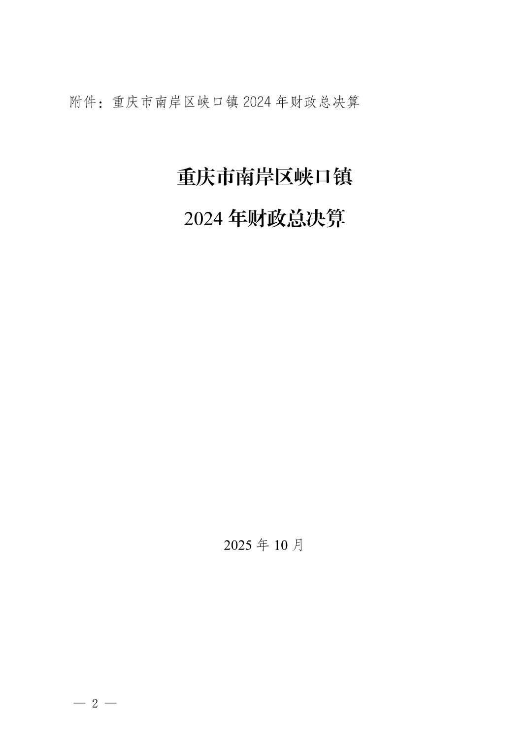 重庆市南岸区峡口镇人民政府关于2024年财政总决算草案情况的报告