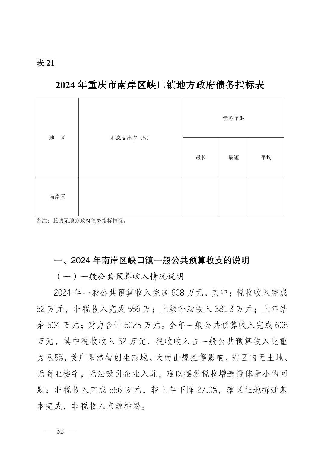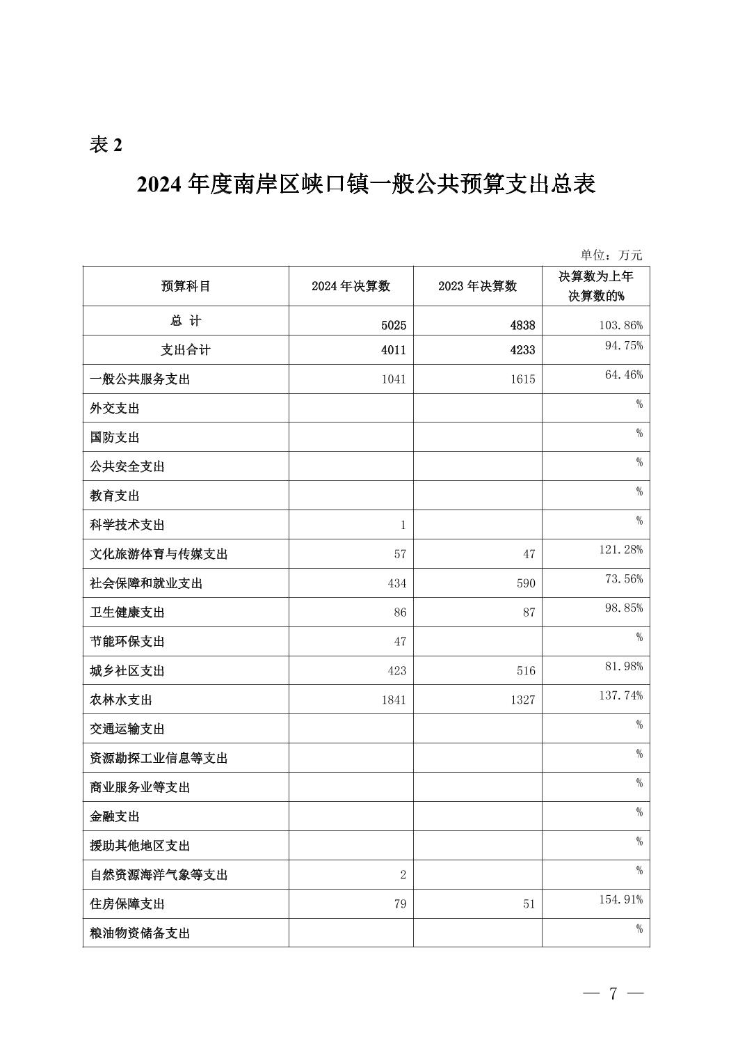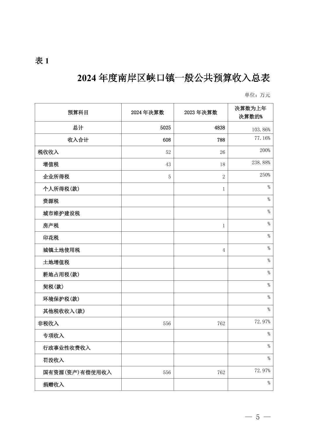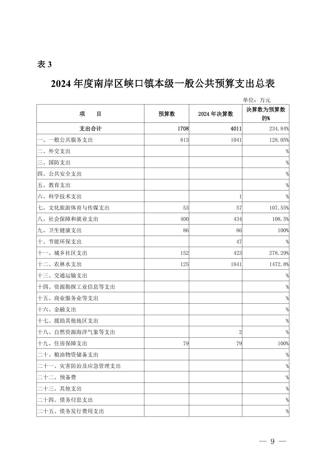 重庆市南岸区峡口镇人民政府关于2024年财政总决算草案情况的报告