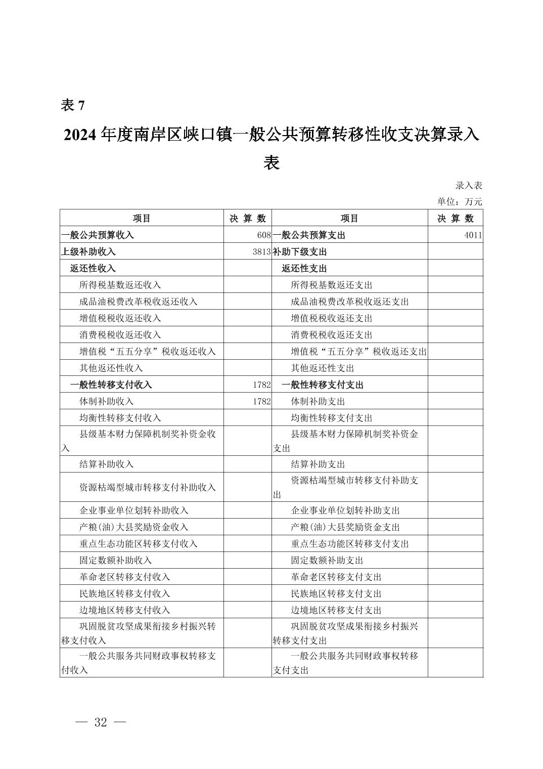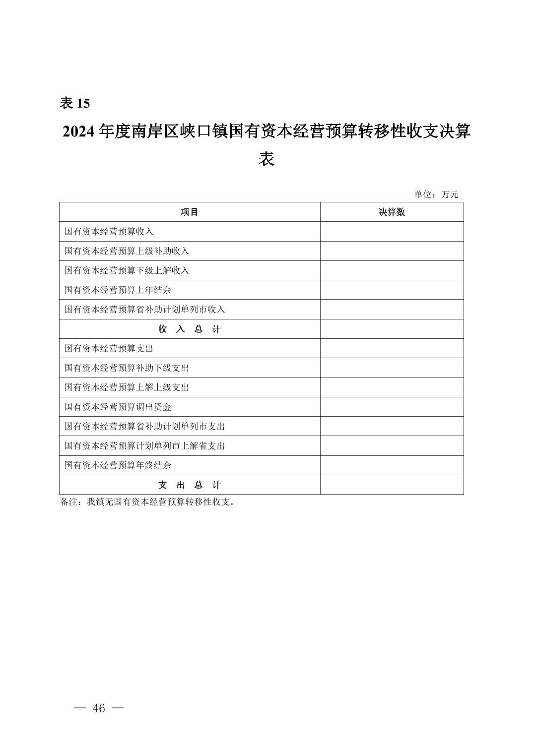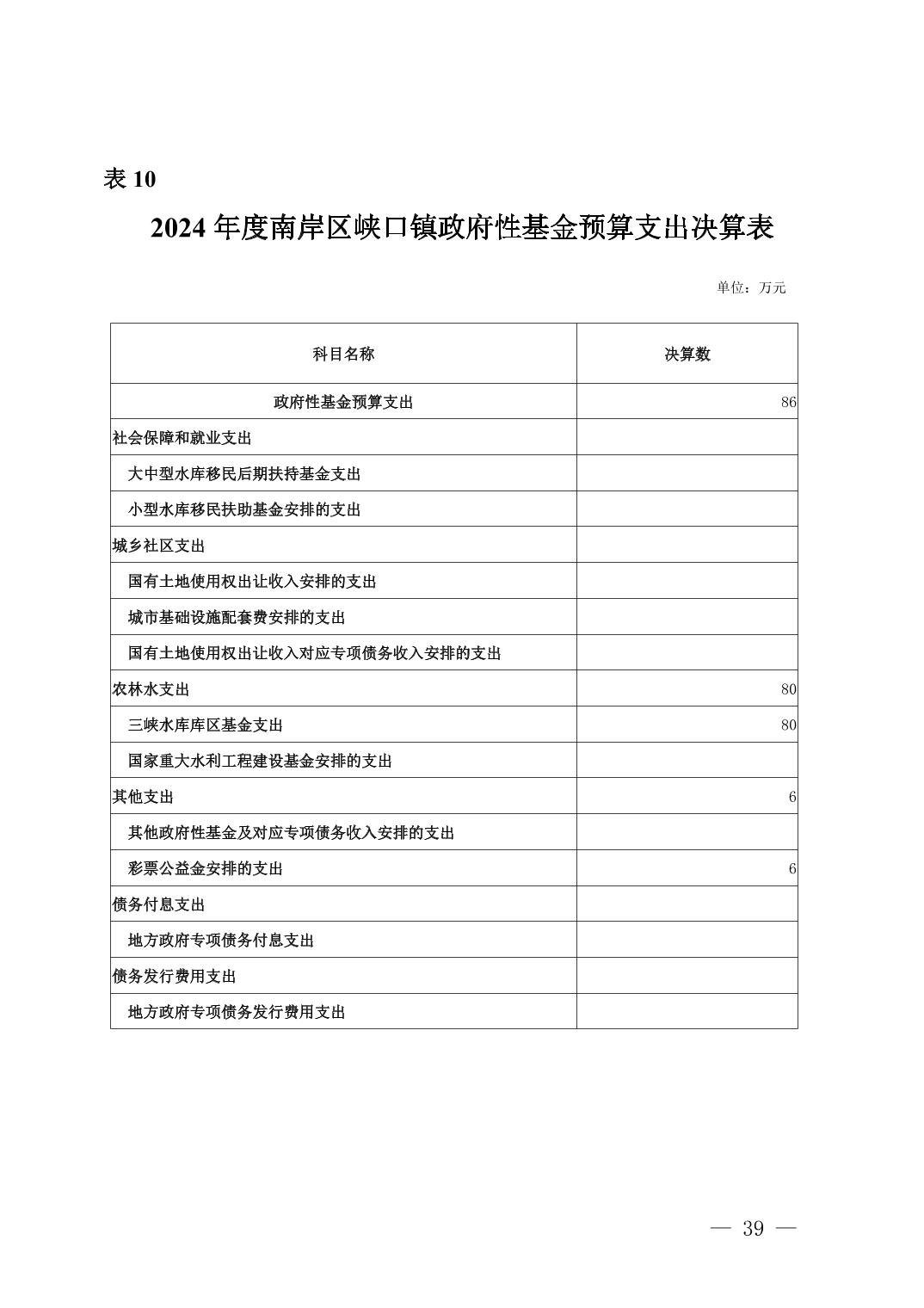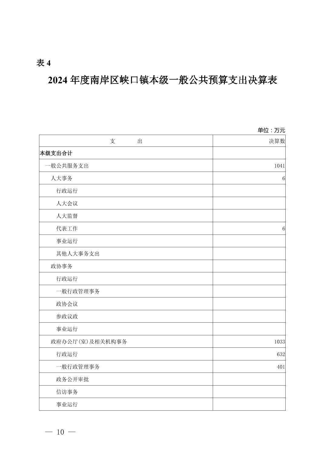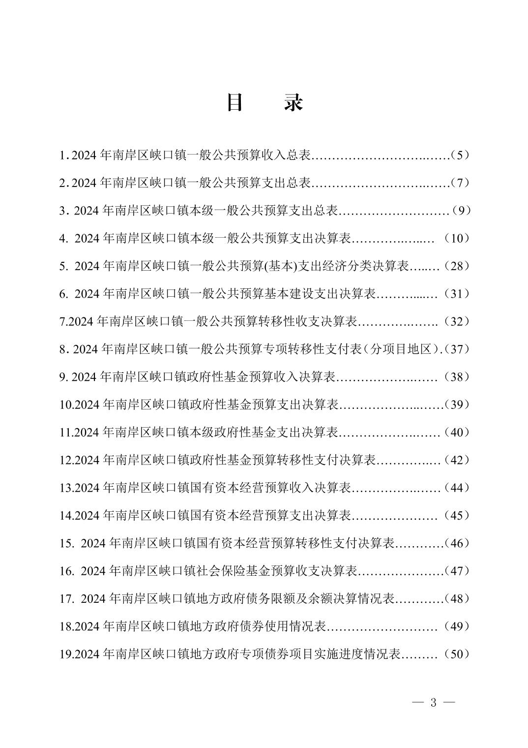 重庆市南岸区峡口镇人民政府关于2024年财政总决算草案情况的报告