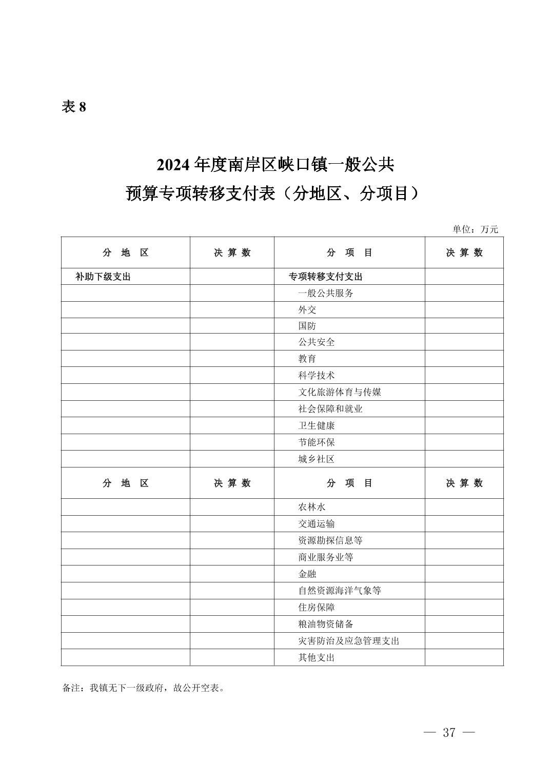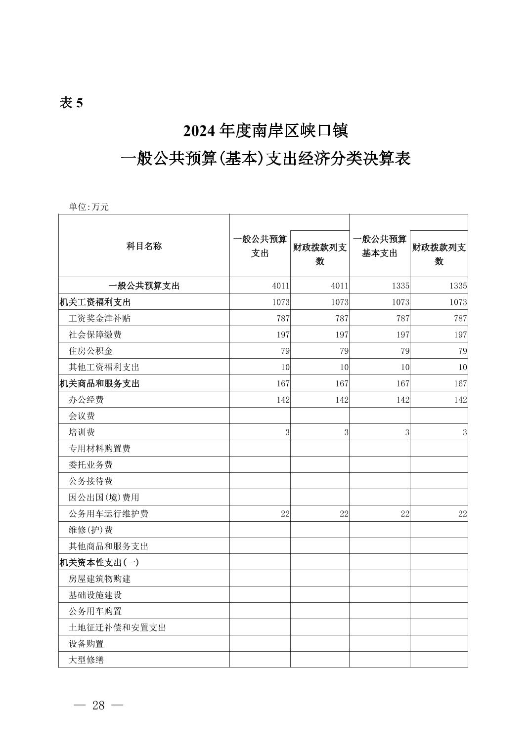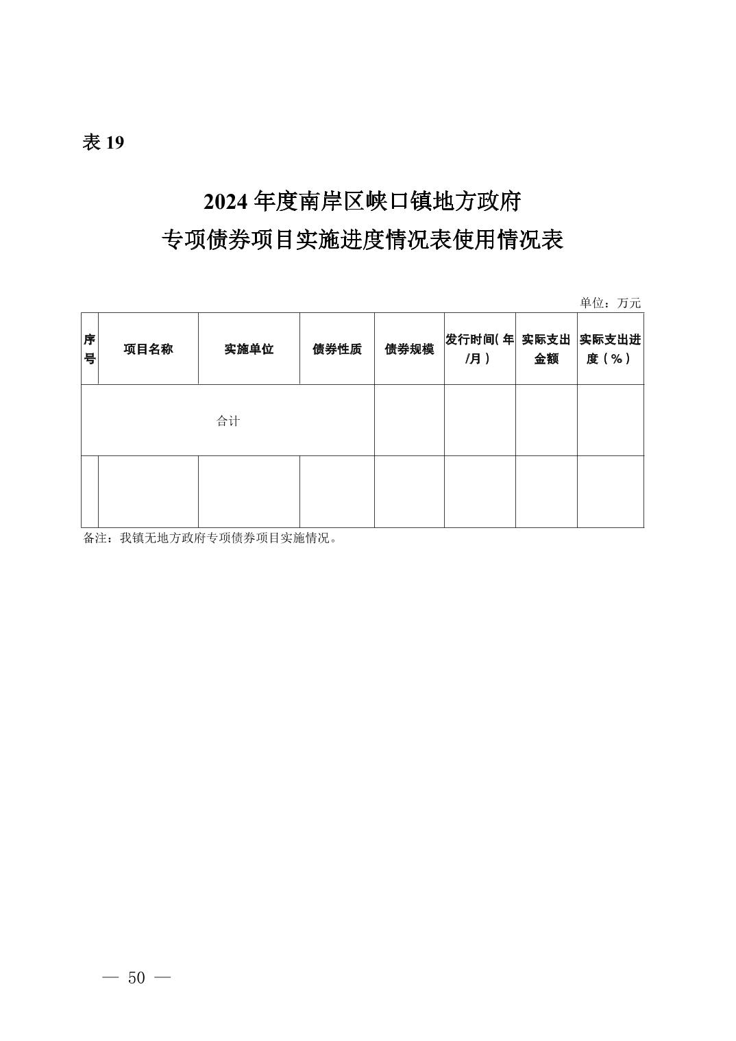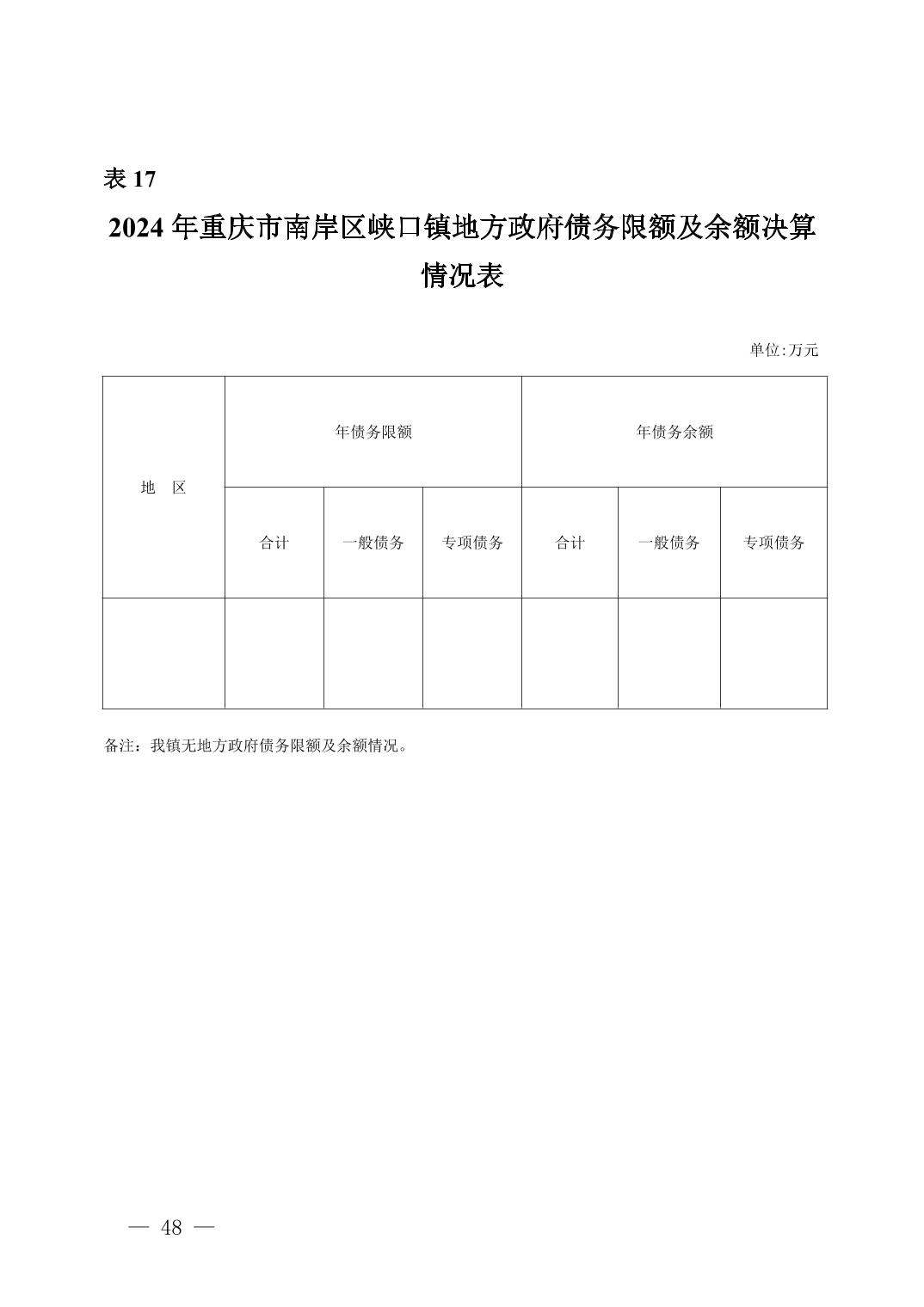 重庆市南岸区峡口镇人民政府关于2024年财政总决算草案情况的报告
