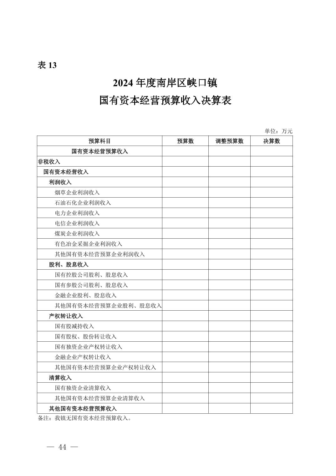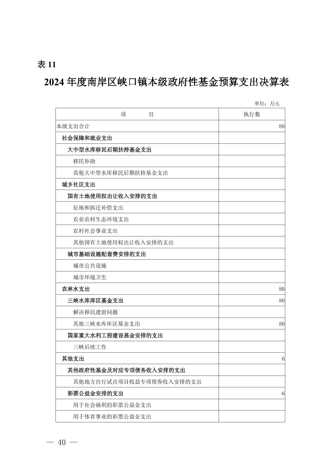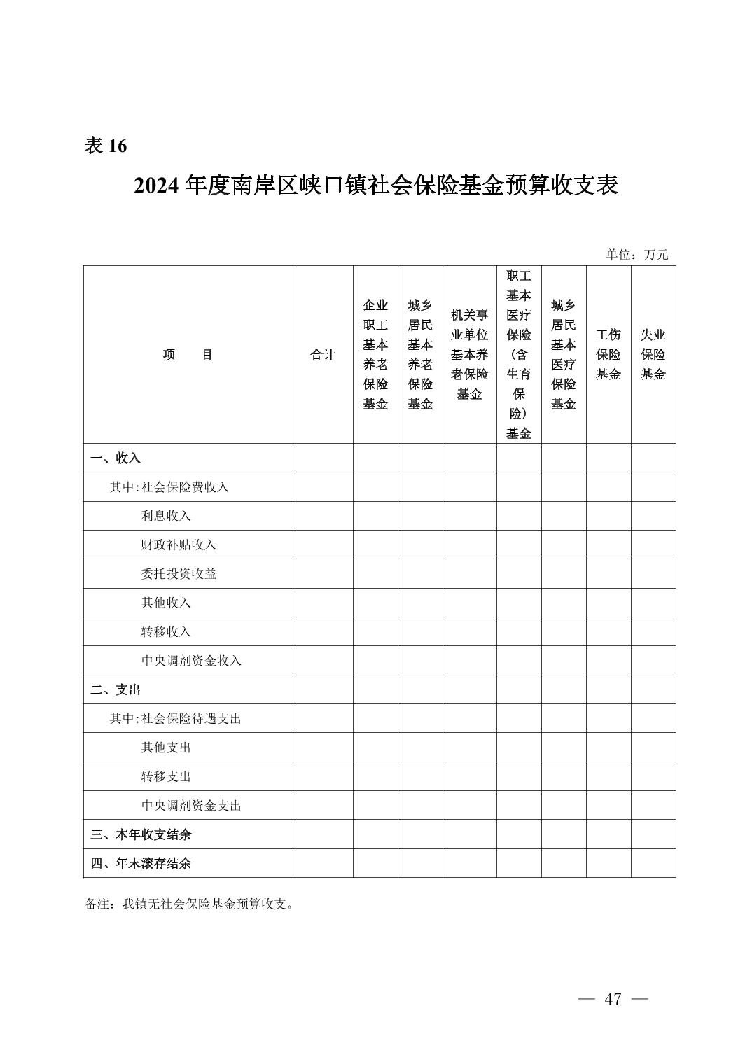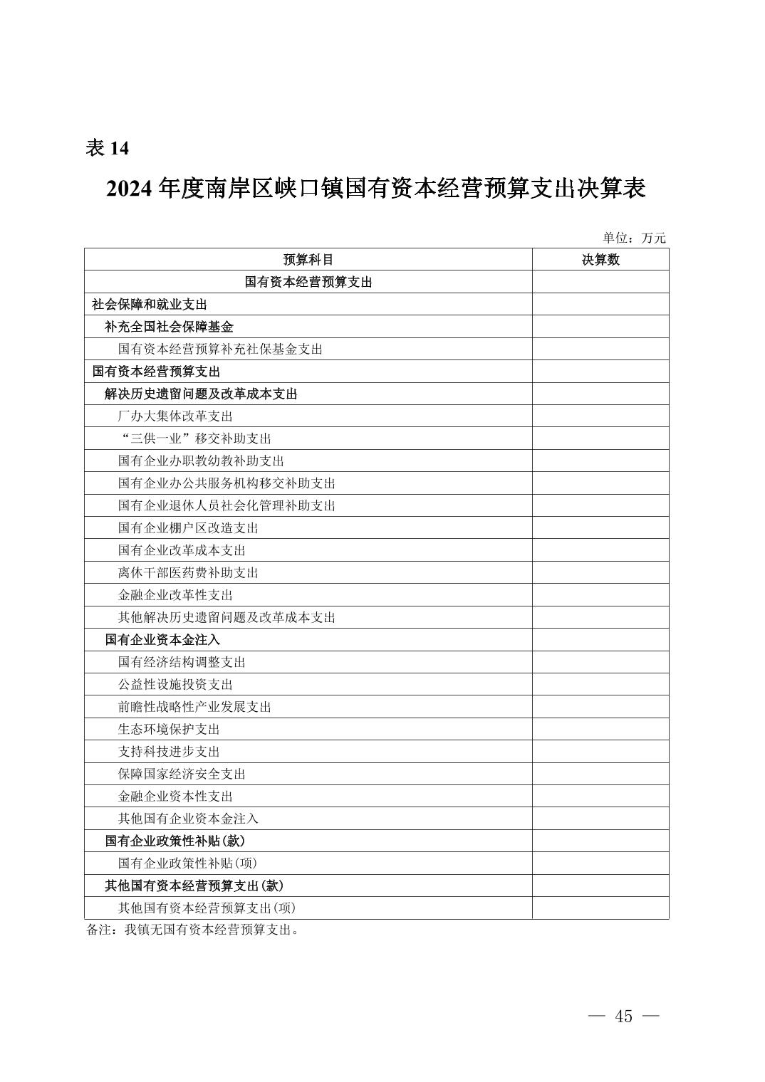 重庆市南岸区峡口镇人民政府关于2024年财政总决算草案情况的报告