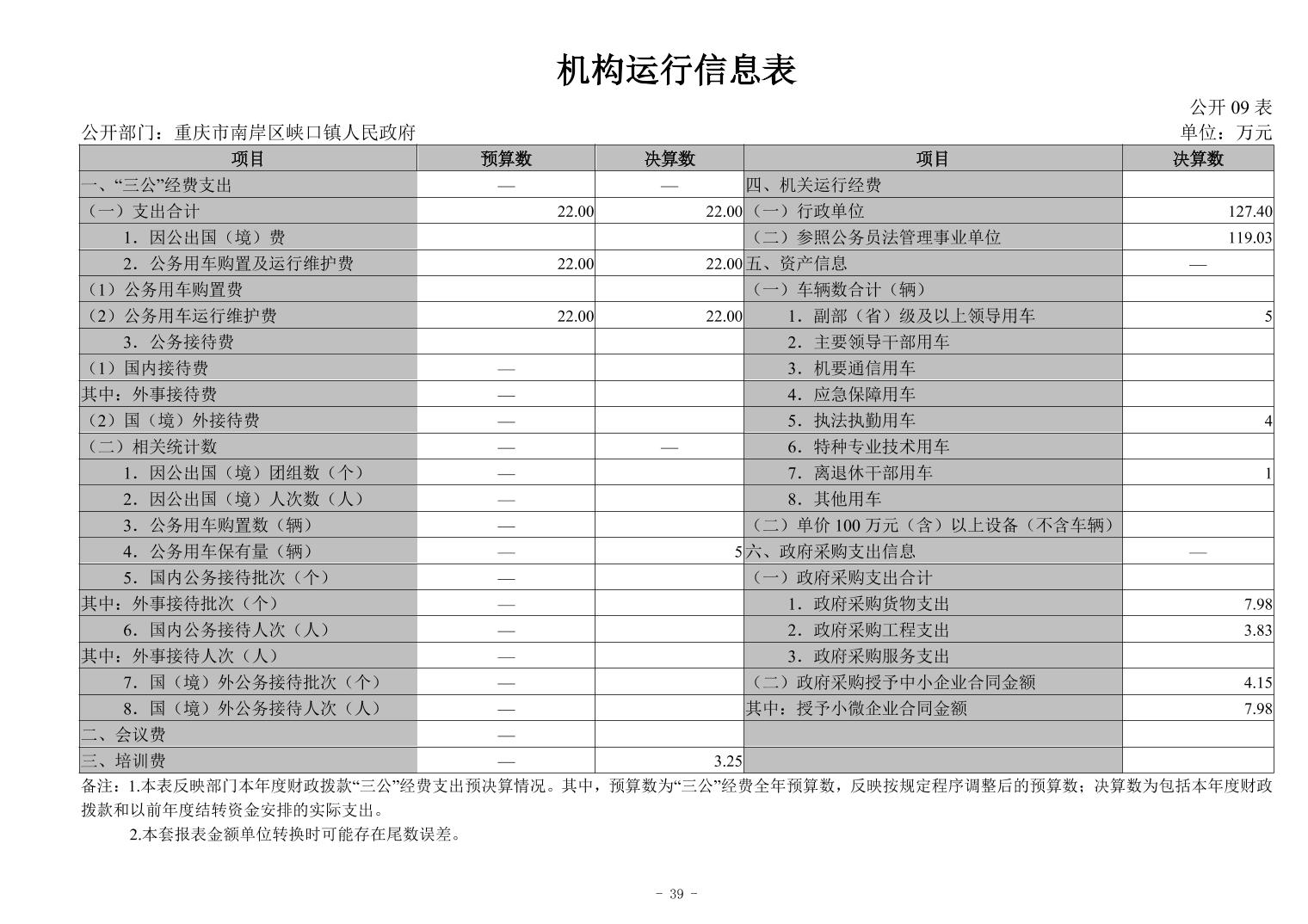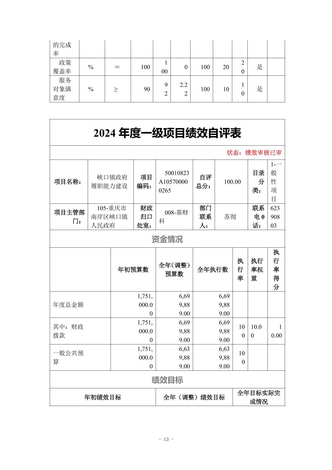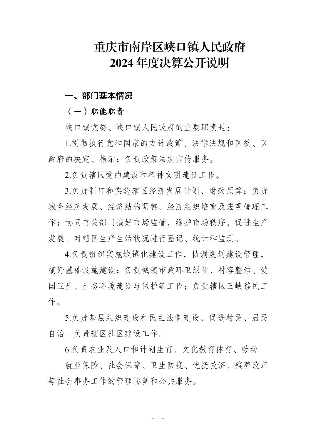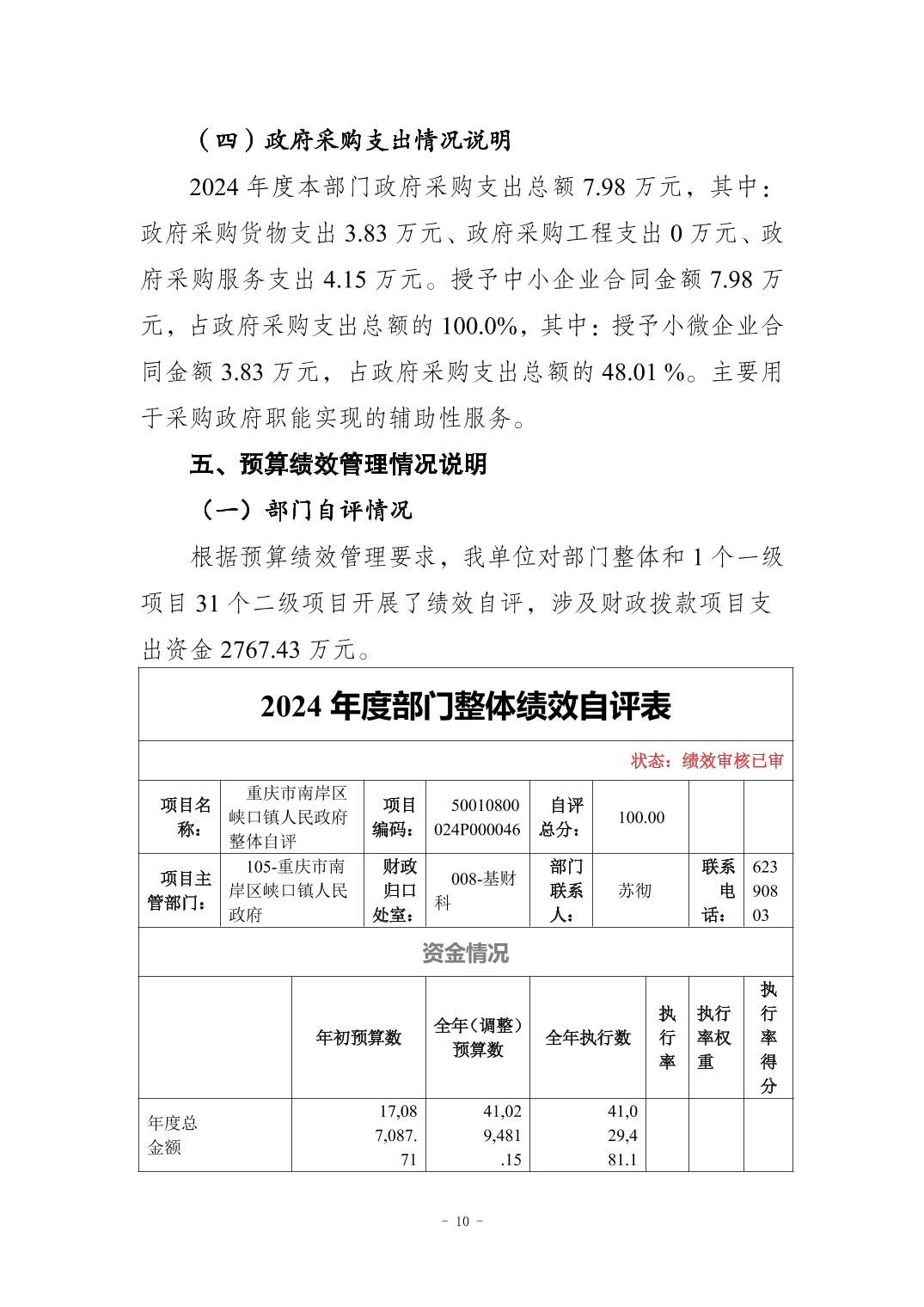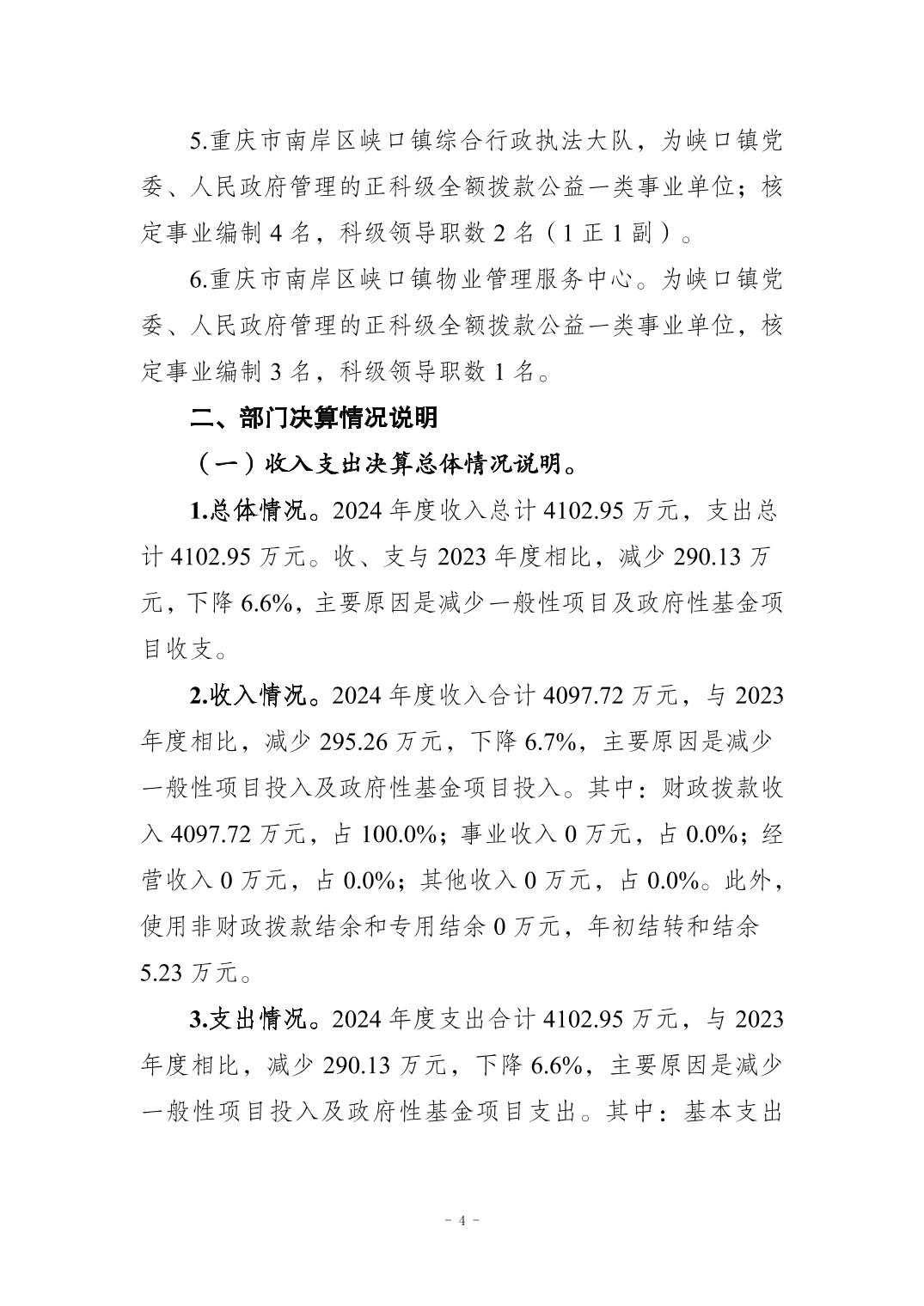 重庆市南岸区峡口镇人民政府2024年度决算公开说明