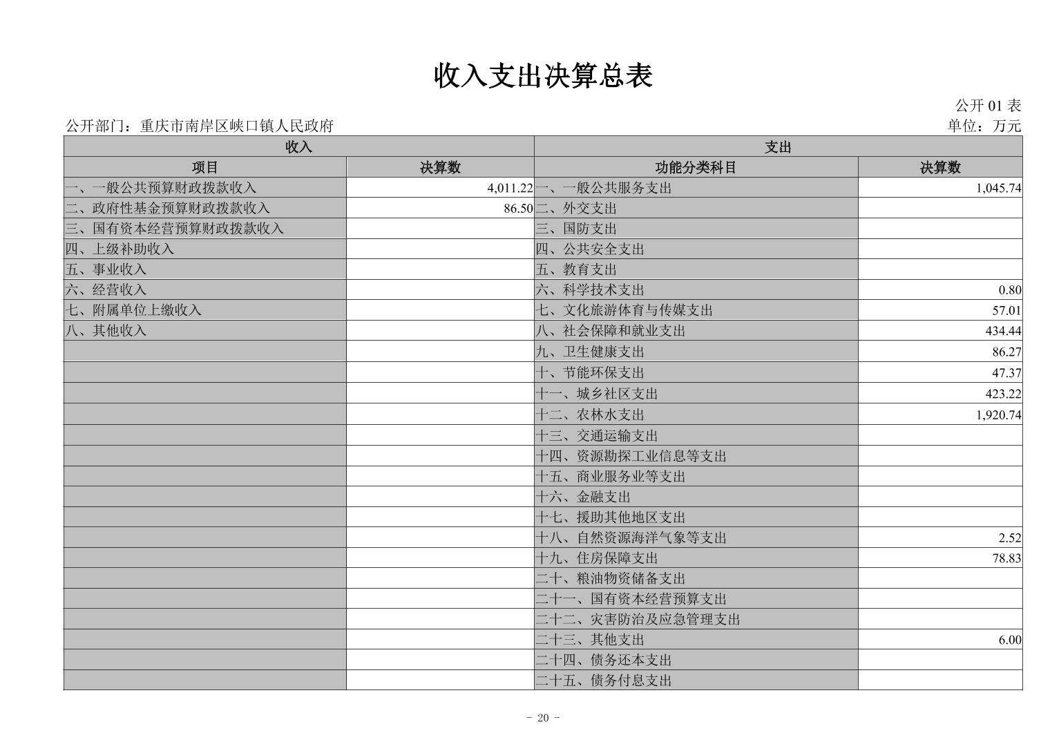 峡口镇>政务公开>法定主动公开内容>预算/决算>财政决算