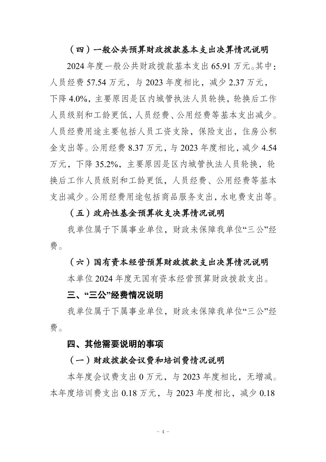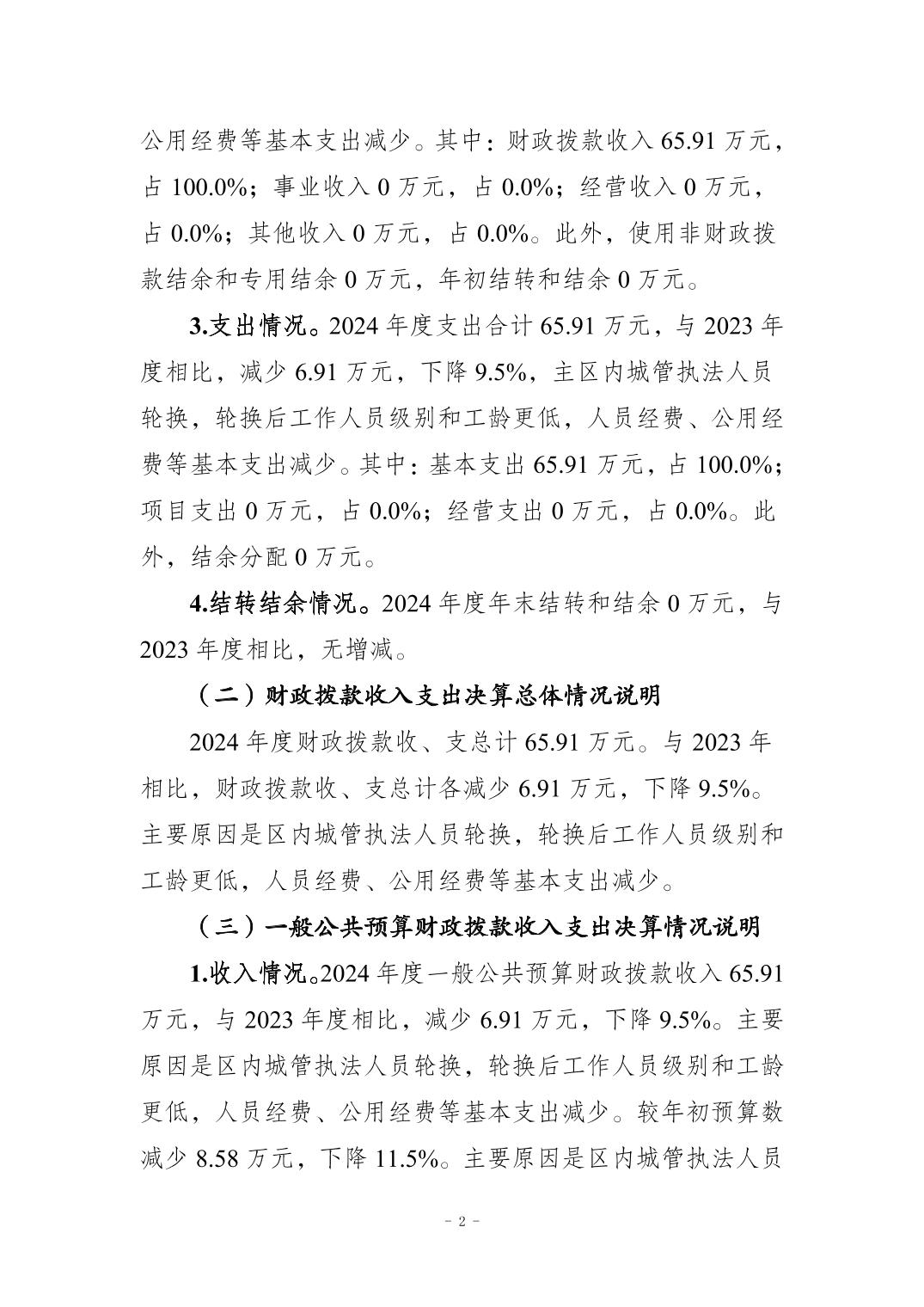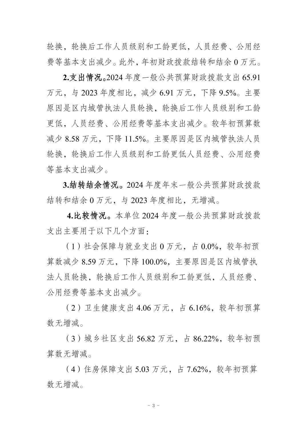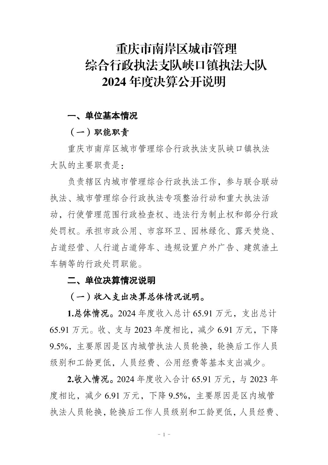 重庆市南岸区城市管理综合行政执法支队峡口镇执法大队2024年度决算公开说明