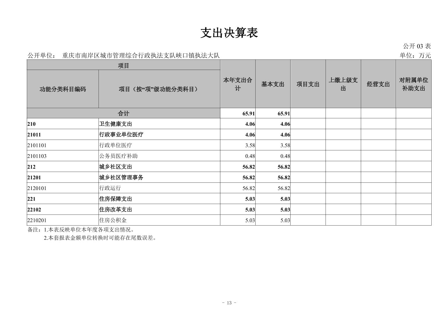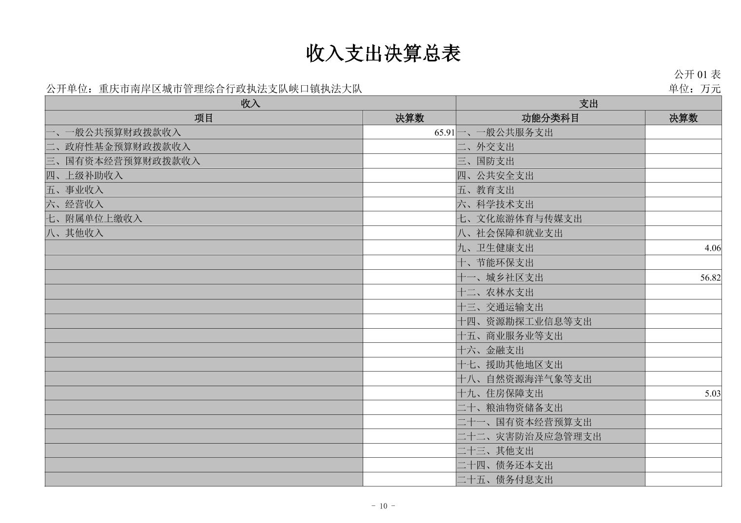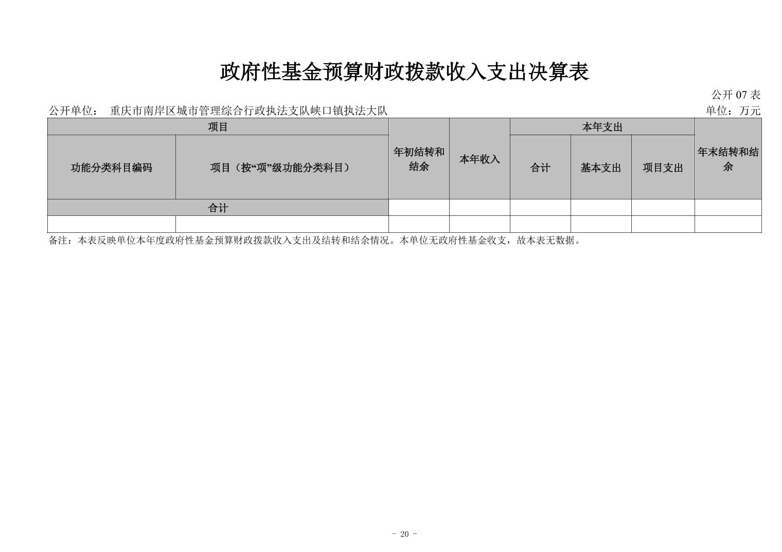 重庆市南岸区城市管理综合行政执法支队峡口镇执法大队2024年度决算公开说明