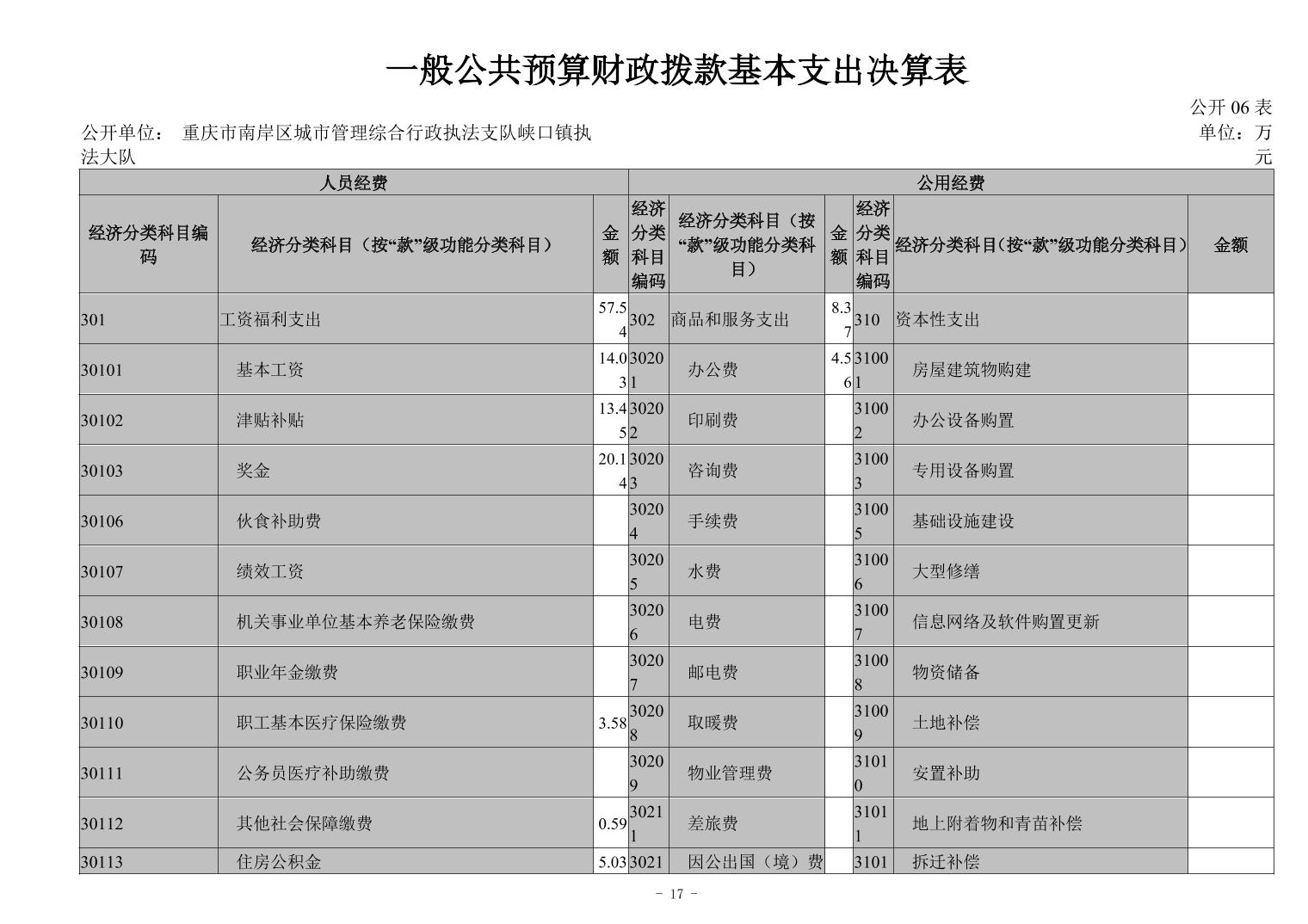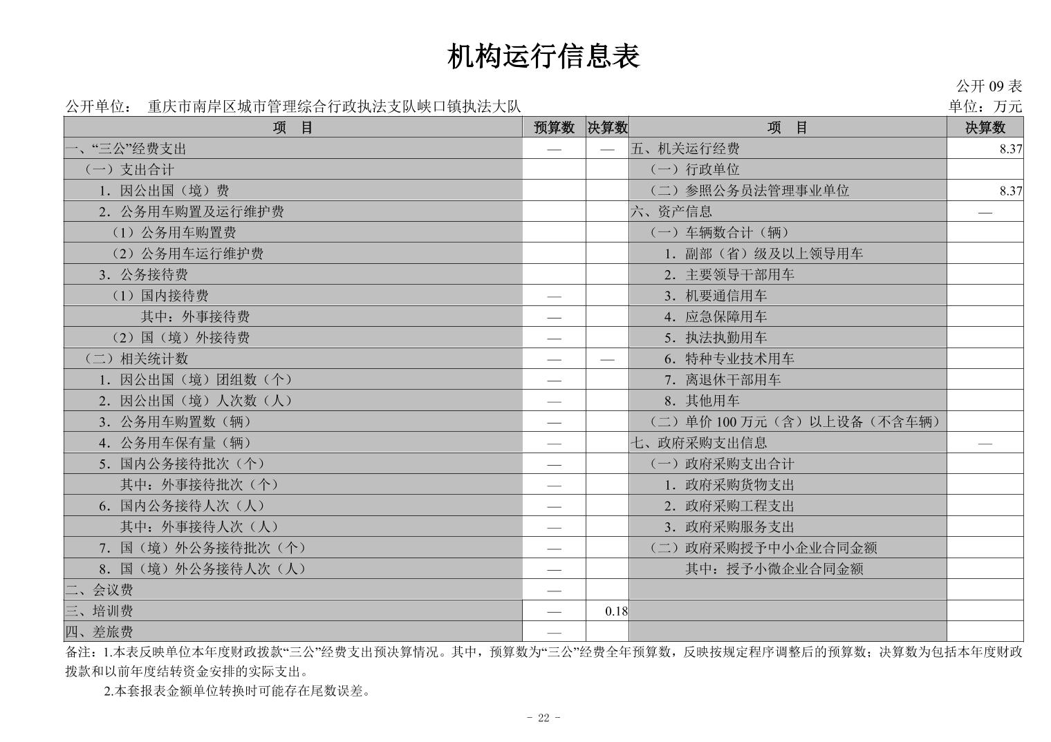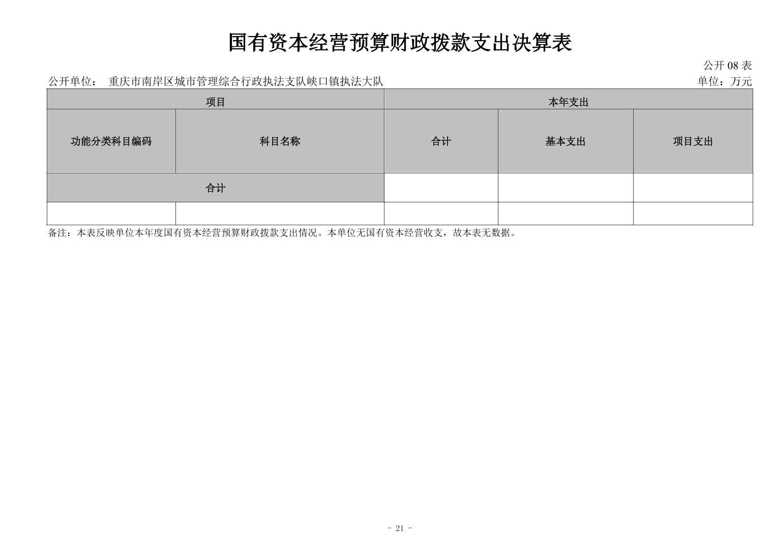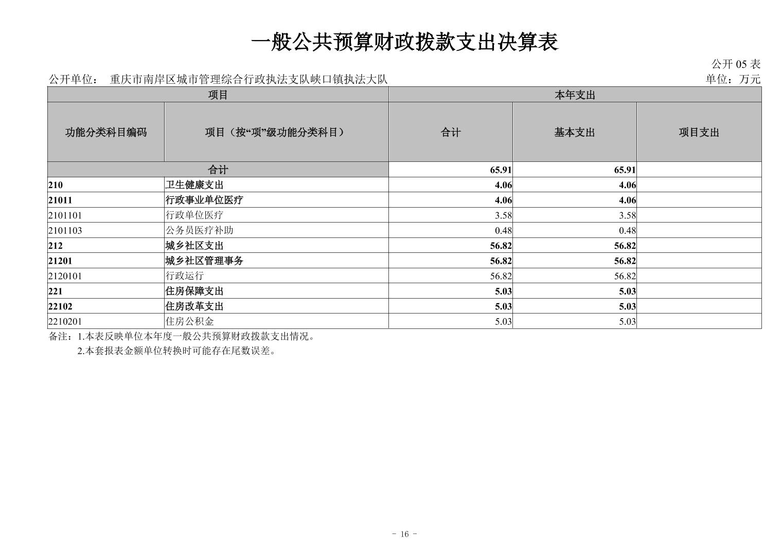 重庆市南岸区城市管理综合行政执法支队峡口镇执法大队2024年度决算公开说明
