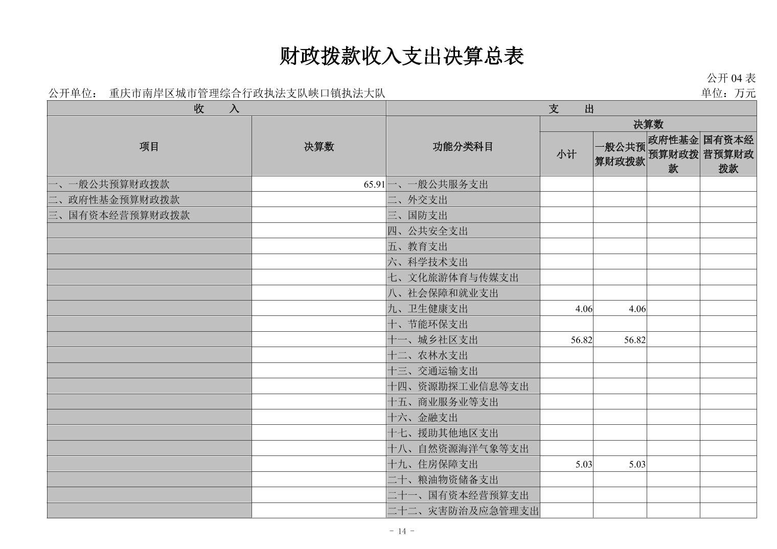 峡口镇>政务公开>法定主动公开内容>预算/决算>财政决算