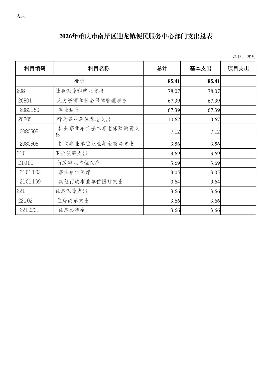 重庆市南岸区迎龙镇便民服务中心2026年单位预算情况说明