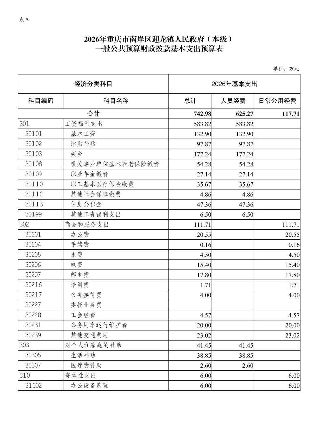 重庆市南岸区迎龙镇人民政府(本级)2026年单位预算情况说明