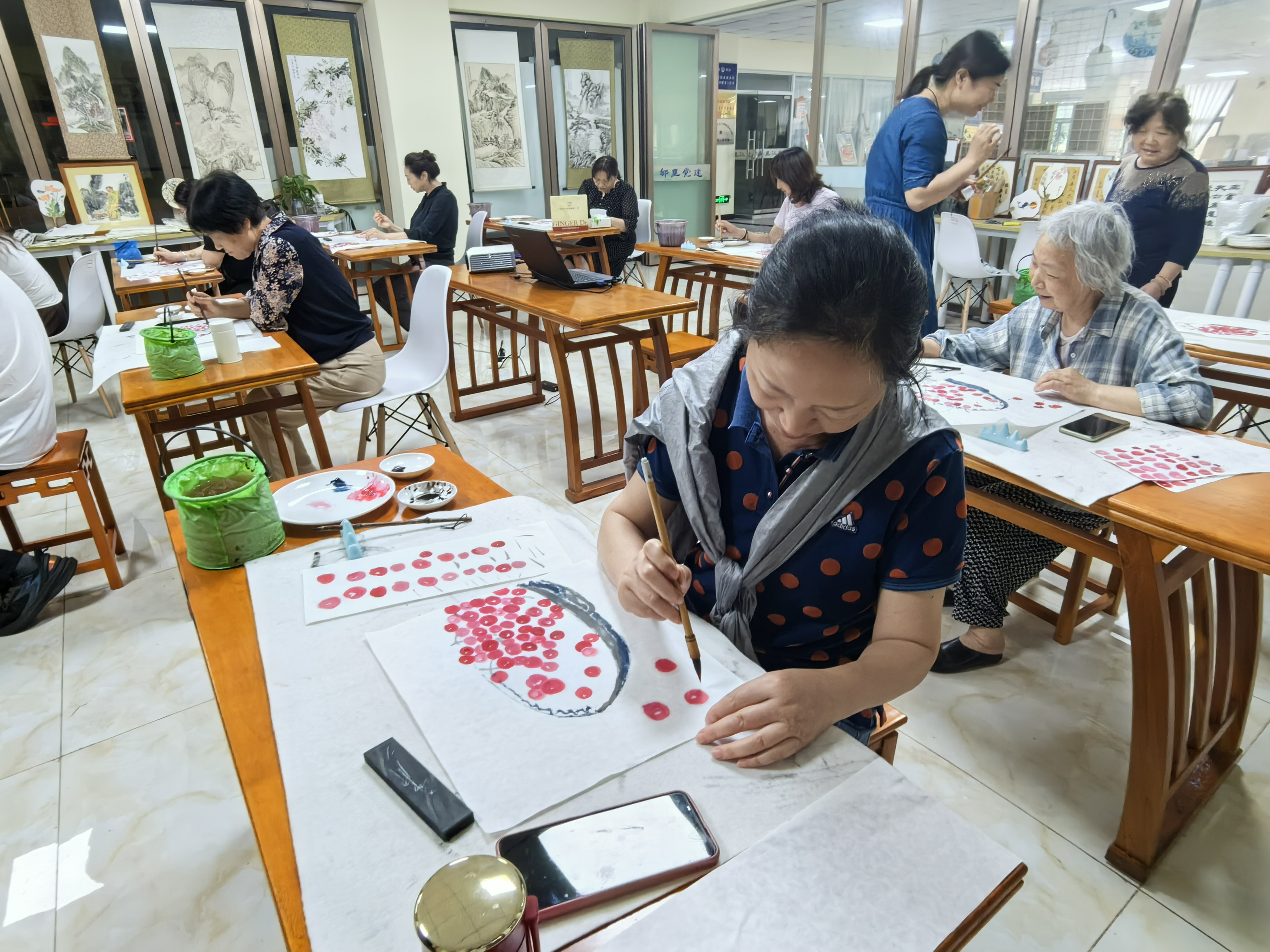 近日,长生桥镇茶花社区老年大学组织开展“国画培训”活动。