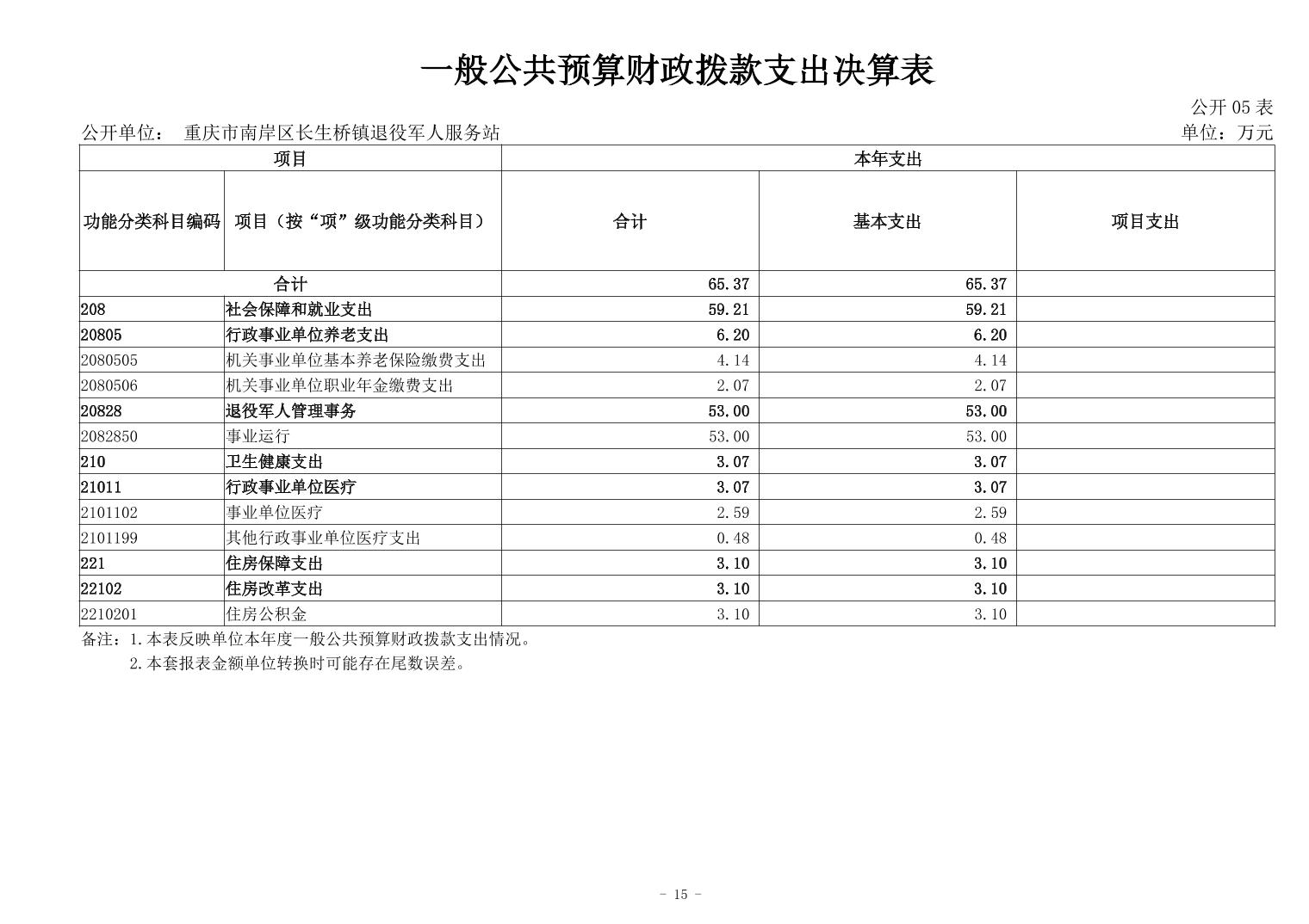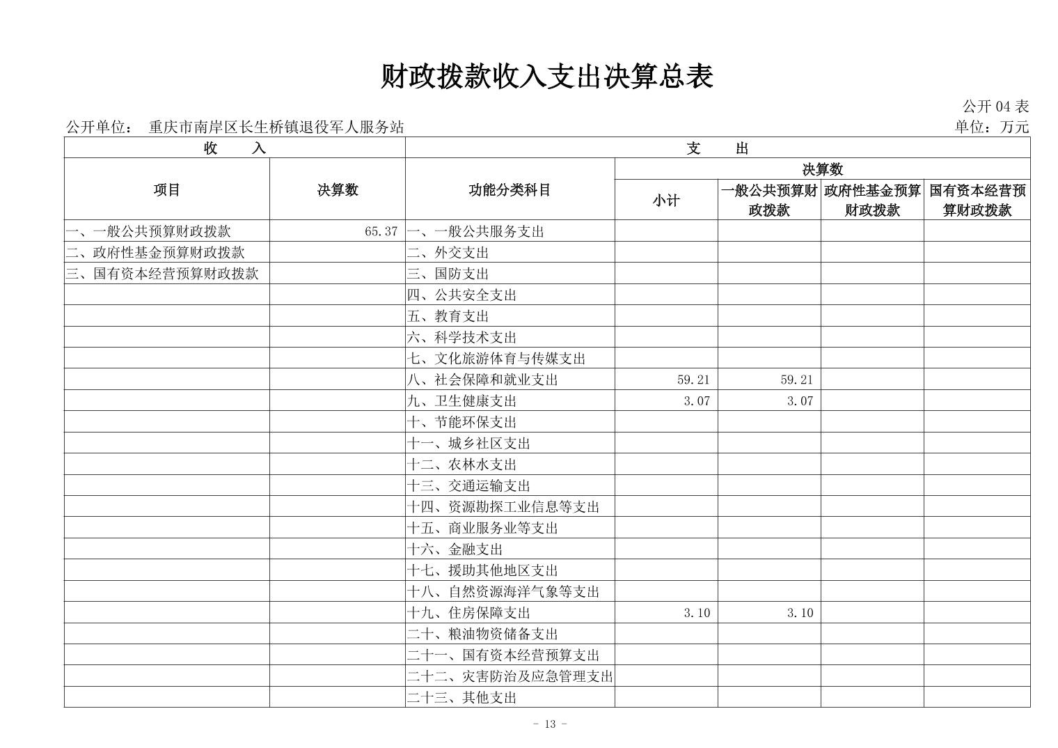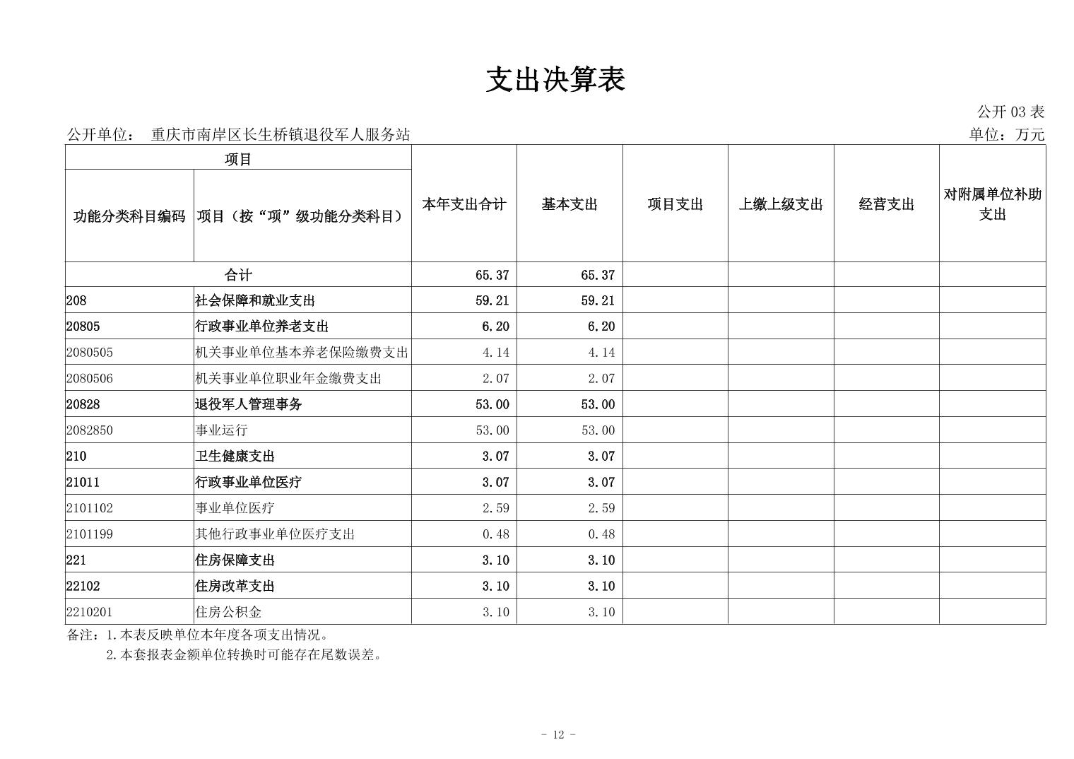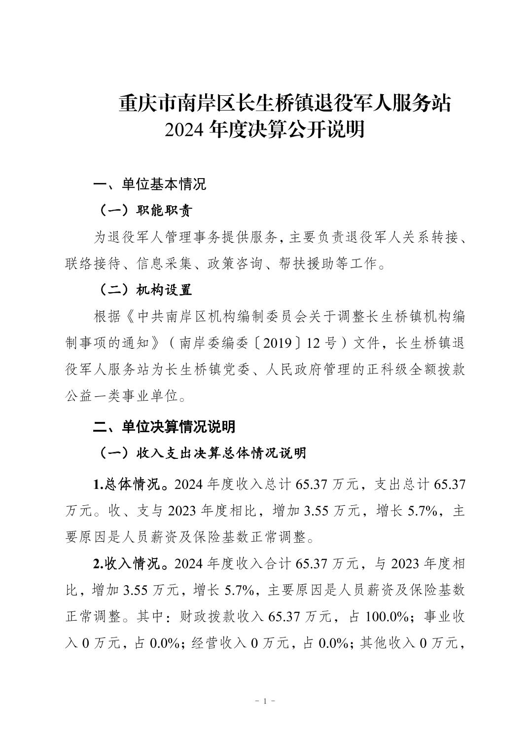 重庆市南岸区长生桥镇退役军人服务站2024年度决算公开说明