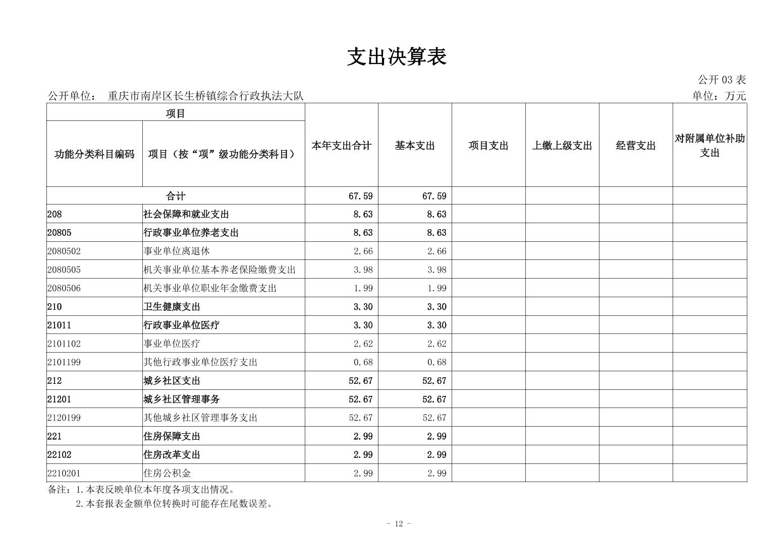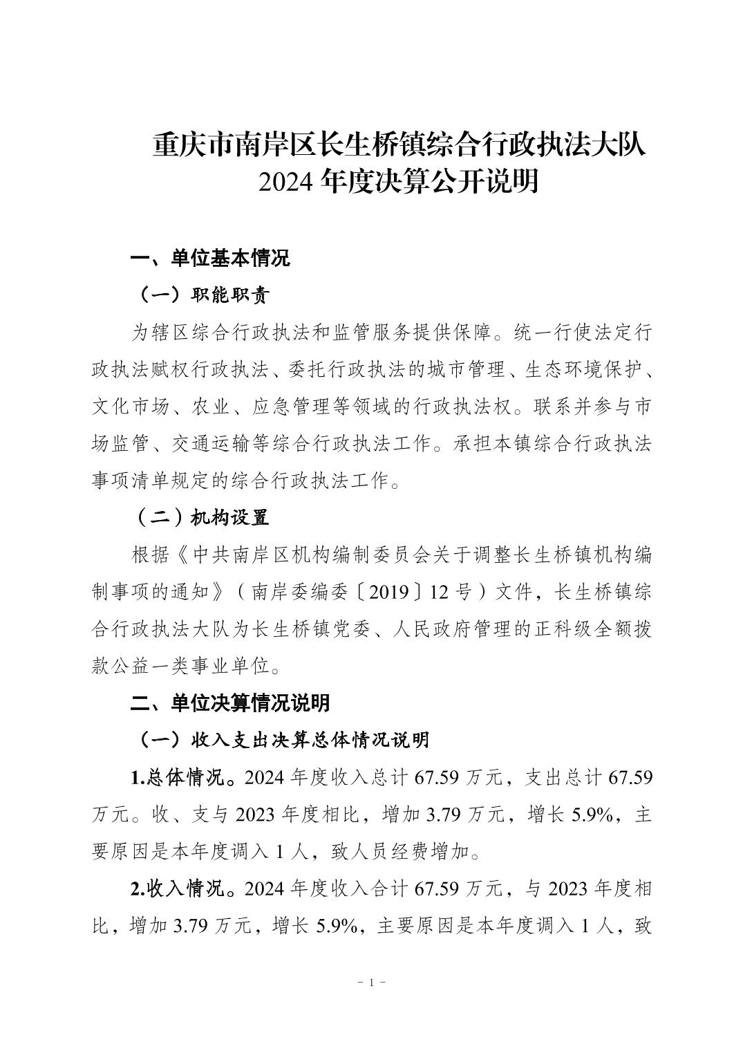 重庆市南岸区长生桥镇综合行政执法大队2024年度决算公开说明