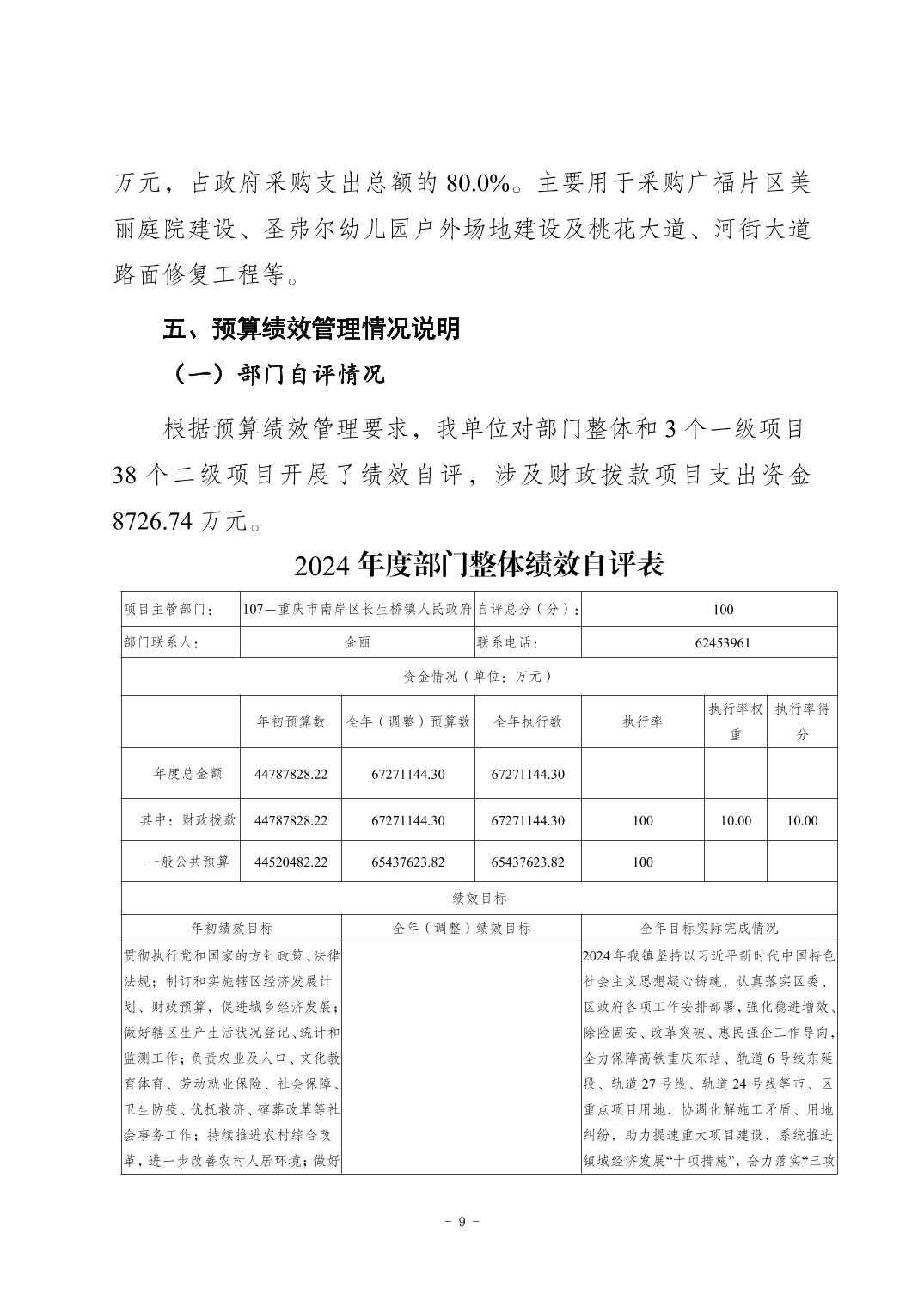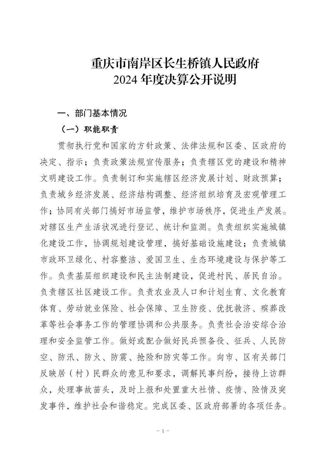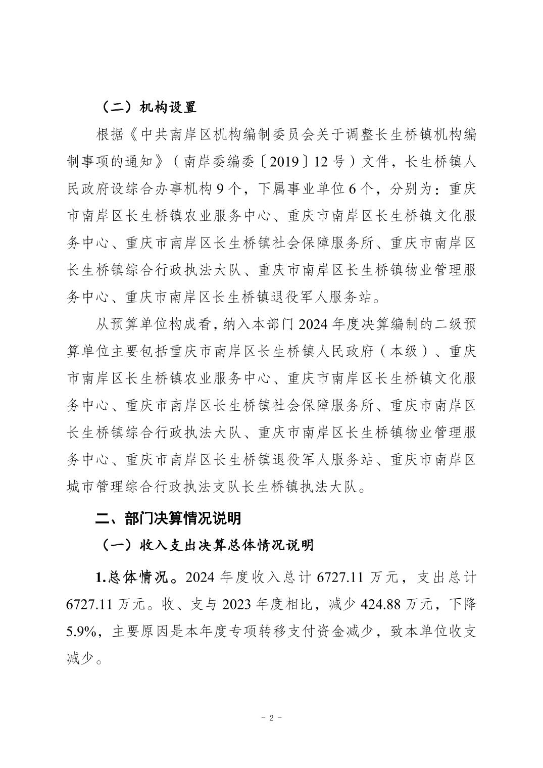 重庆市南岸区长生桥镇人民政府2024年度决算公开说明
