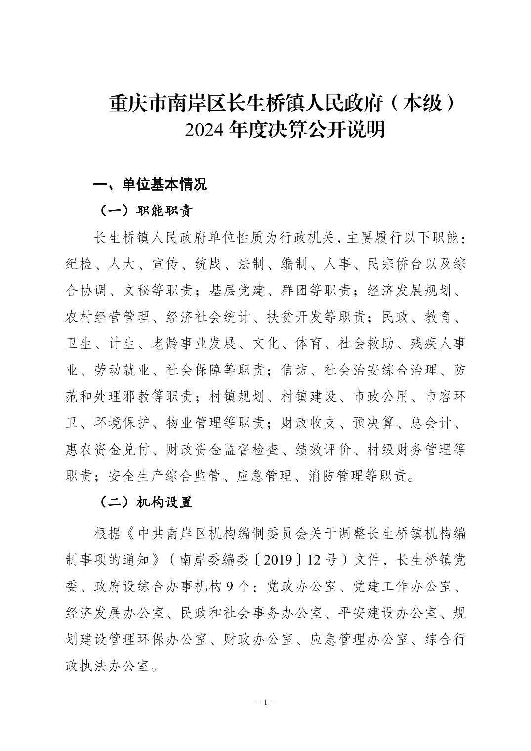 重庆市南岸区长生桥镇人民政府(本级)2024年度决算公开说明
