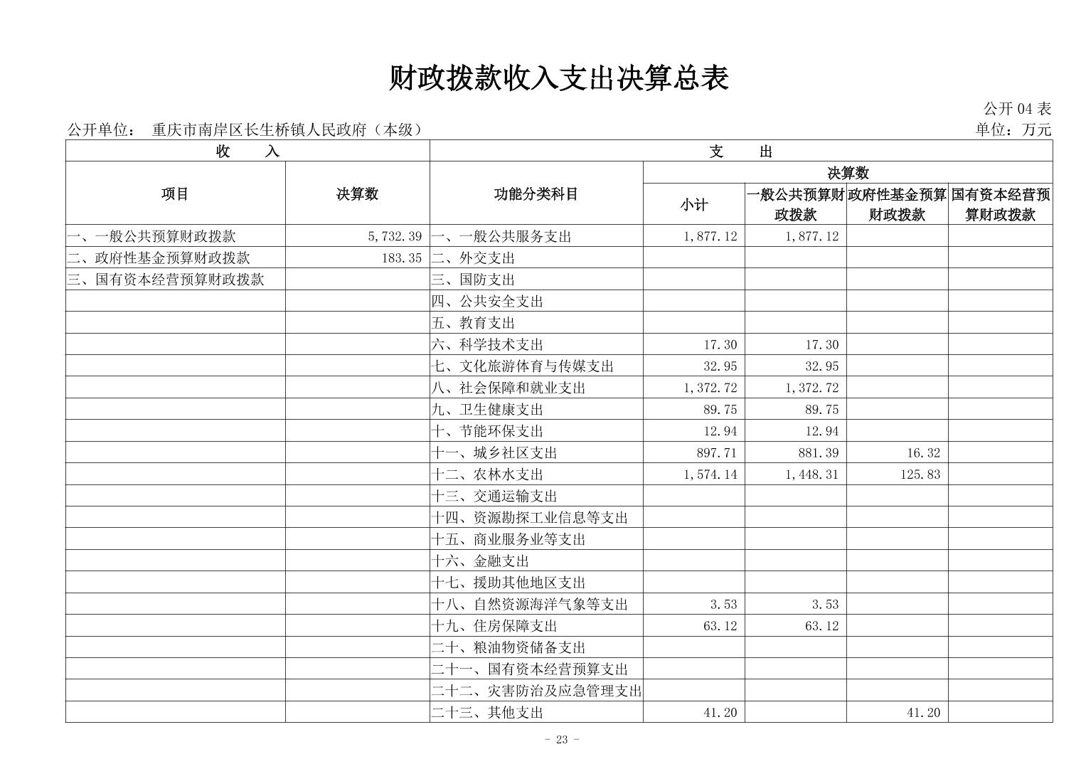 长生桥镇>政务公开>法定主动公开内容>预算/决算>财政决算