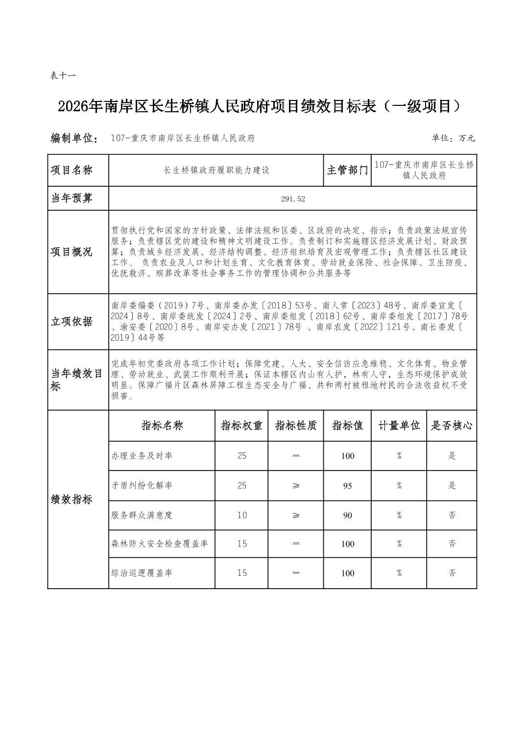 重庆市南岸区长生桥镇人民政府2026年部门预算情况说明