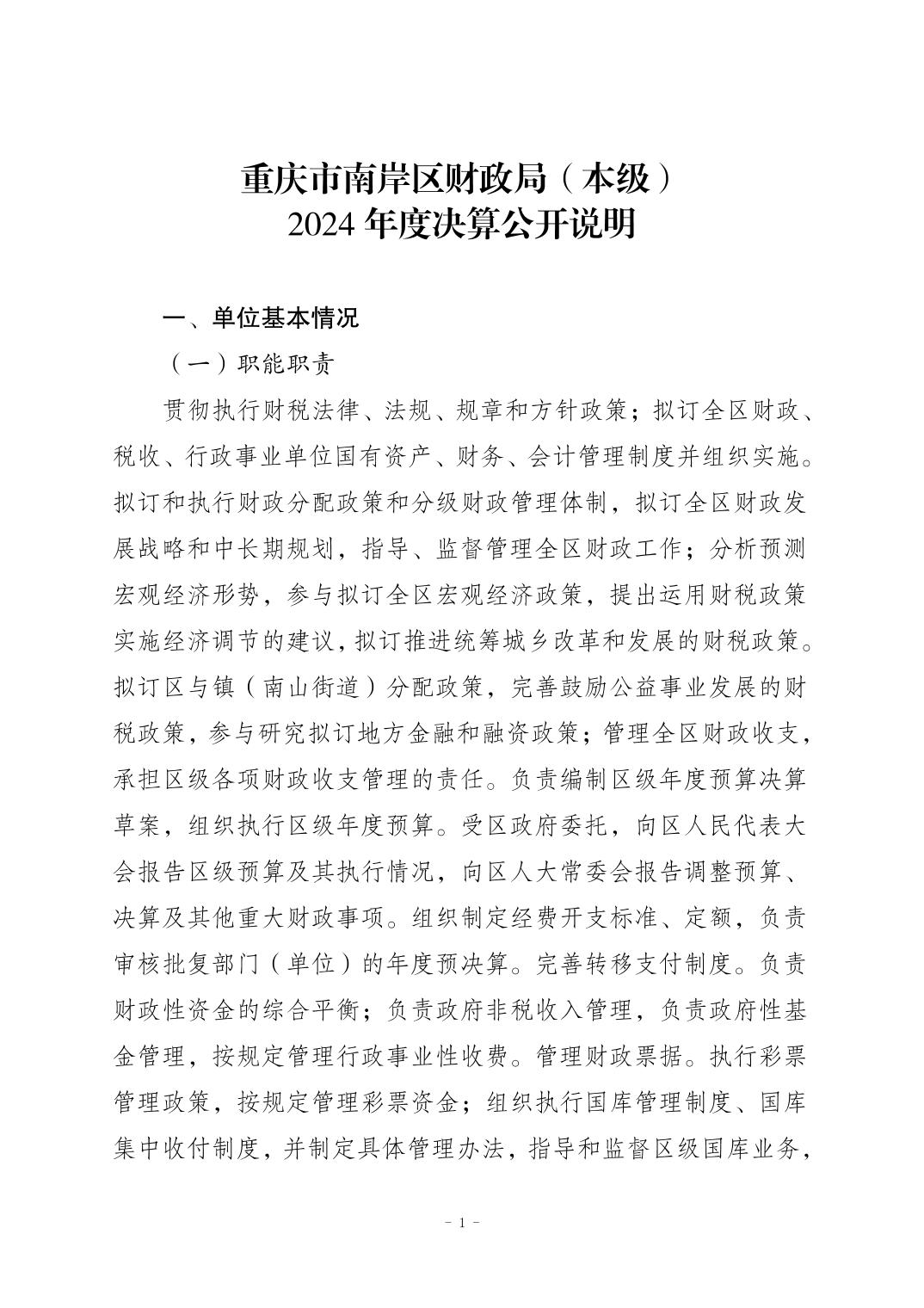 重庆市南岸区财政局(本级)2024年度决算公开说明