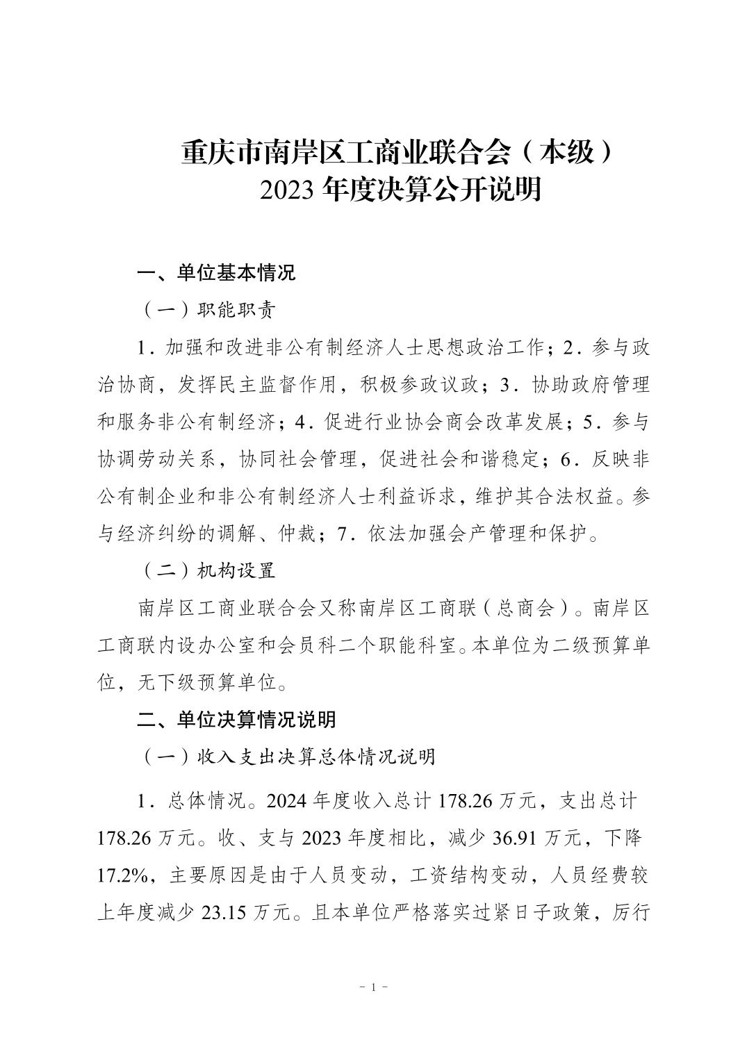 重庆市南岸区工商业联合会(本级)2024年决算公开说明