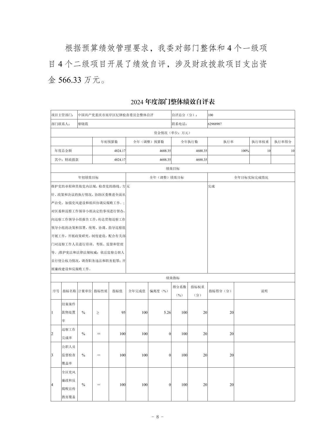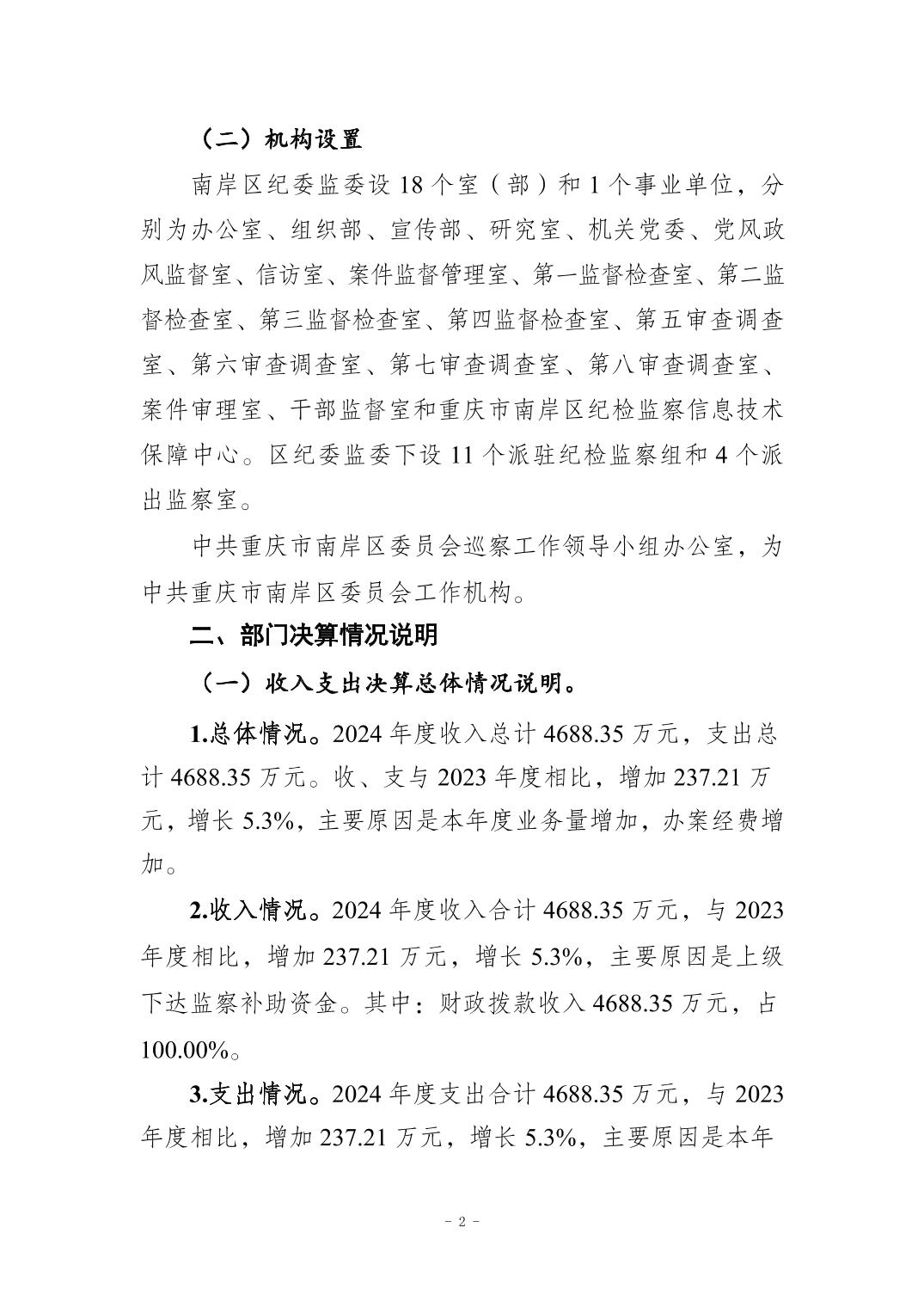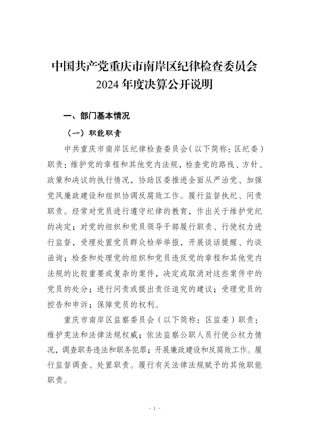 中国共产党重庆市南岸区纪律检查委员会2024年度决算公开说明
