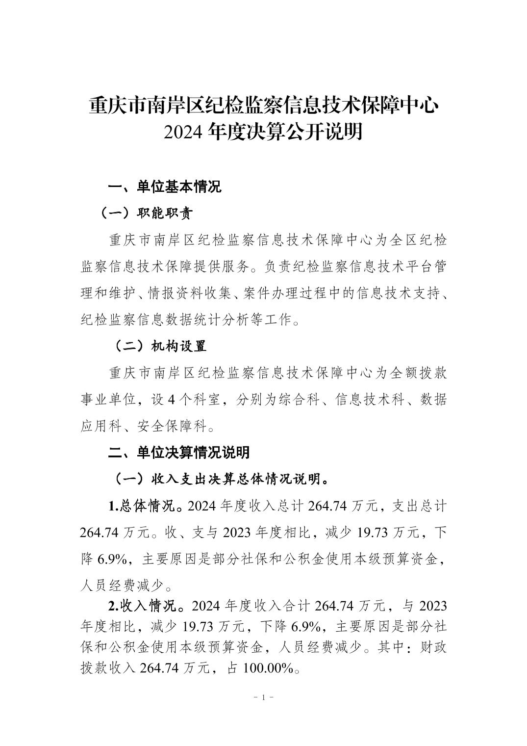 重庆市南岸区纪检监察信息技术保障中心2024年度决算公开说明