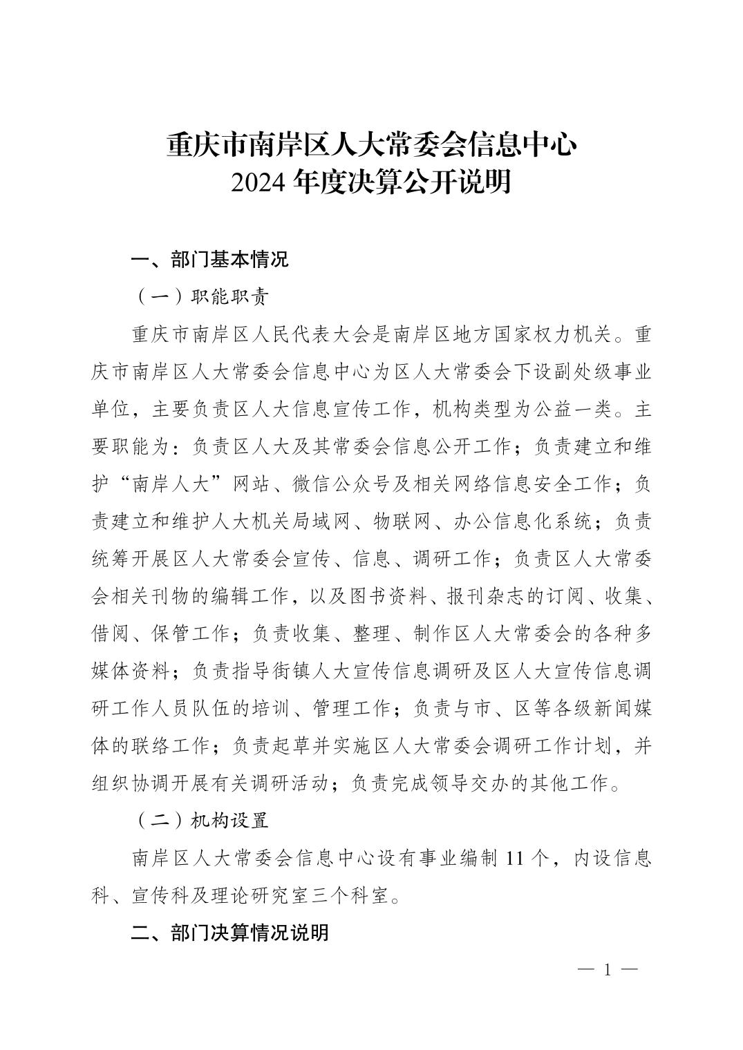 重庆市南岸区人大常委会信息中心2024年度决算公开说明