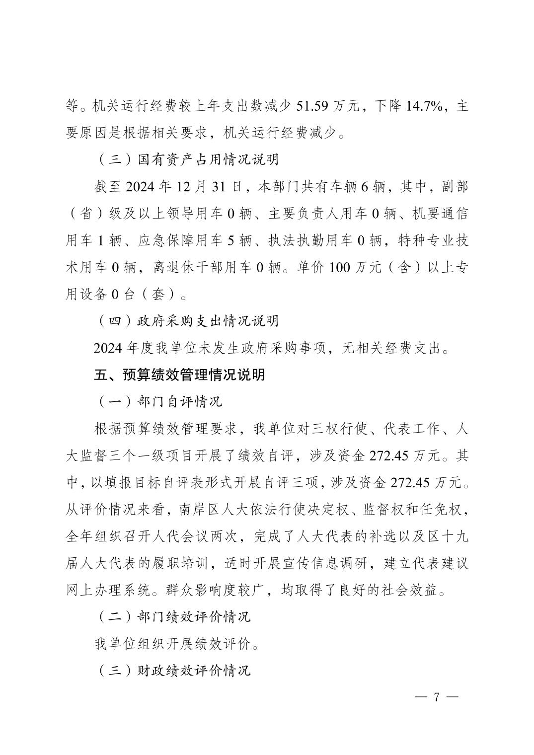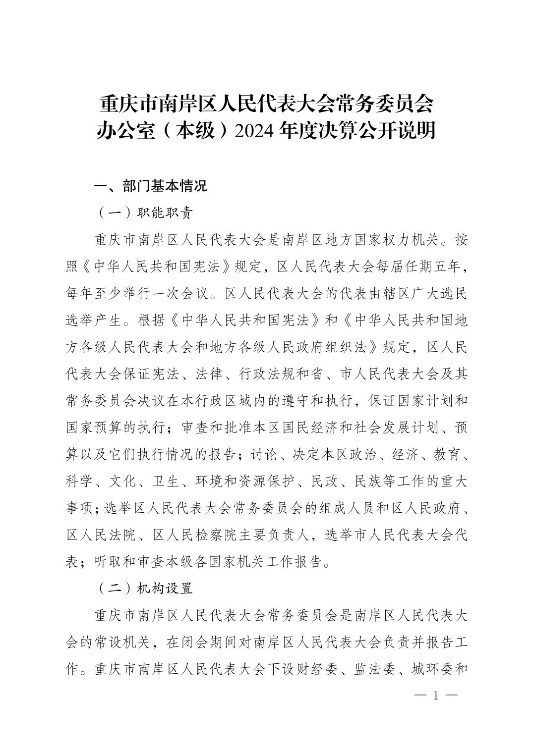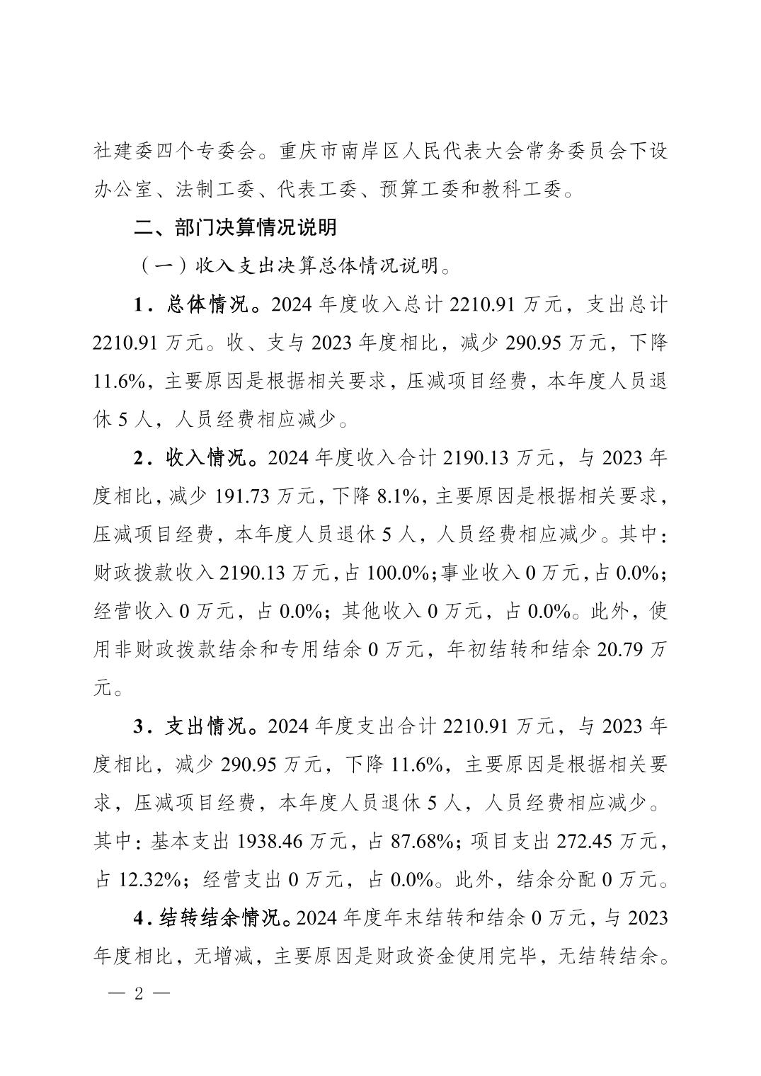 重庆市南岸区人民代表大会常务委员会办公室(本级) 2024年度决算公开说明