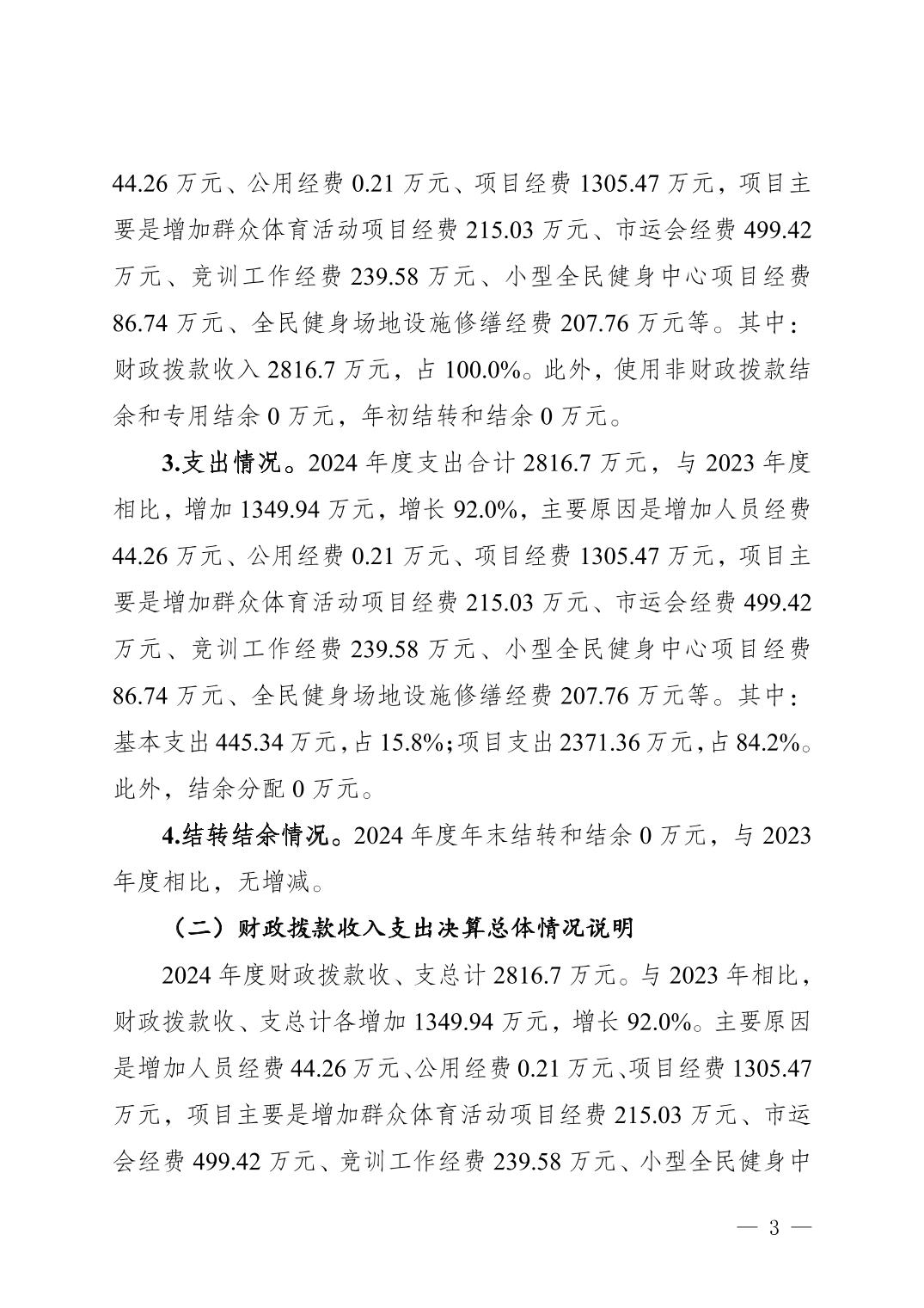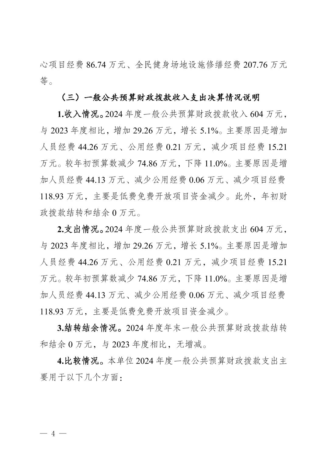 重庆市南岸区体育发展中心(本级)2024年度决算公开说明