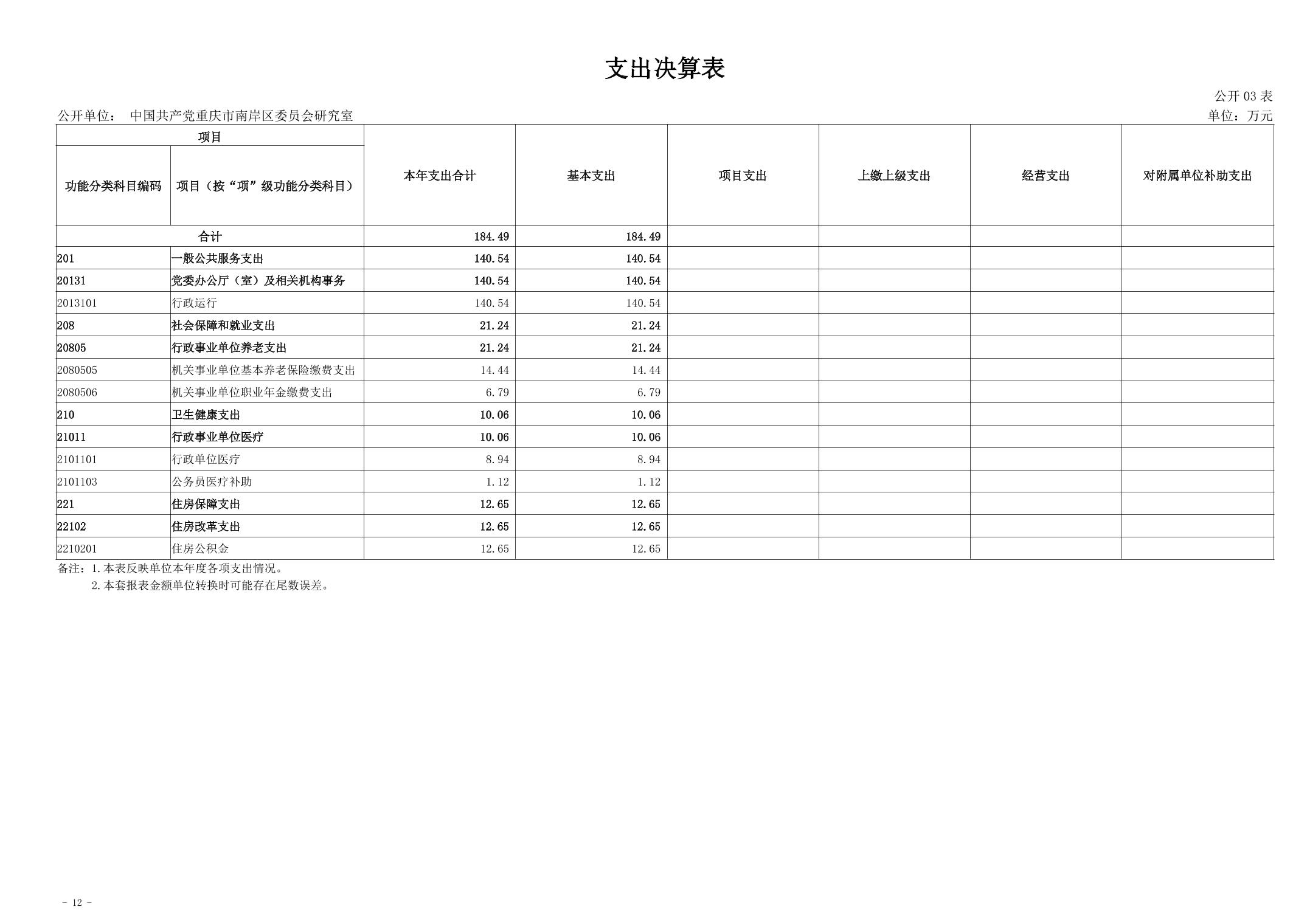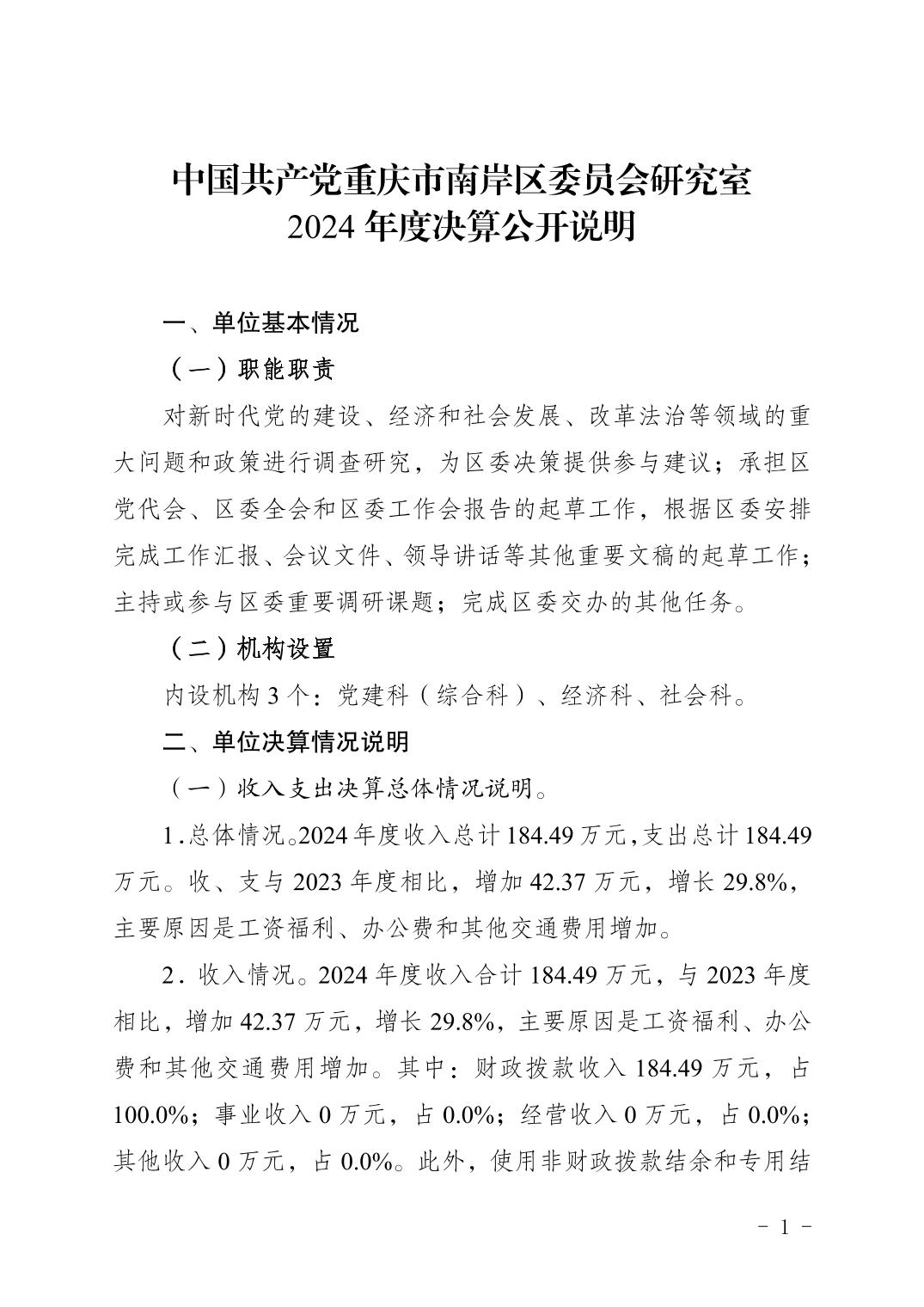 中国共产党重庆市南岸区委员会研究室2024年度决算公开说明