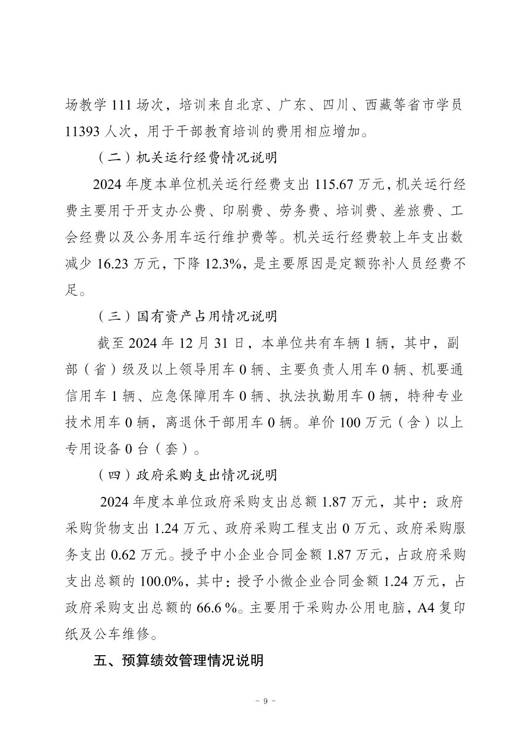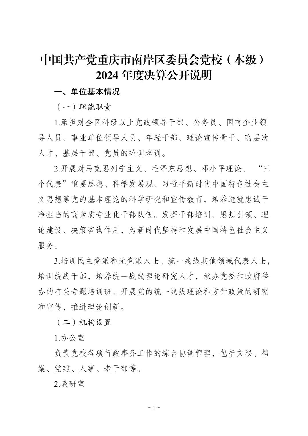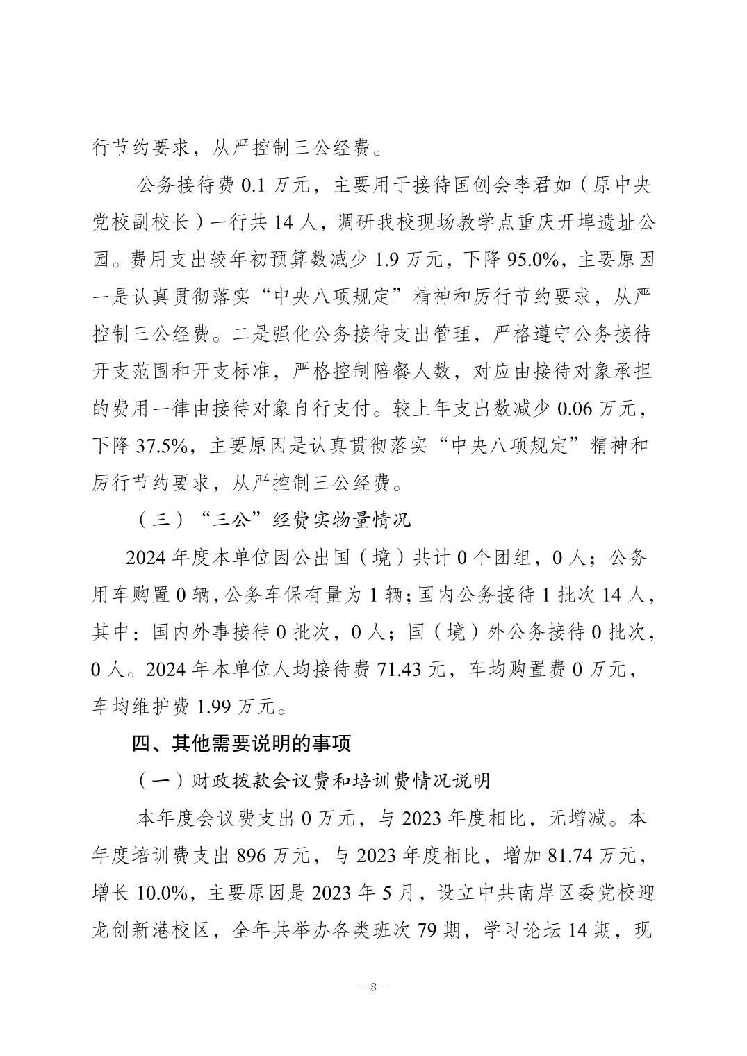 中国共产党重庆市南岸区委员会党校(本级)2024年度决算公开说明