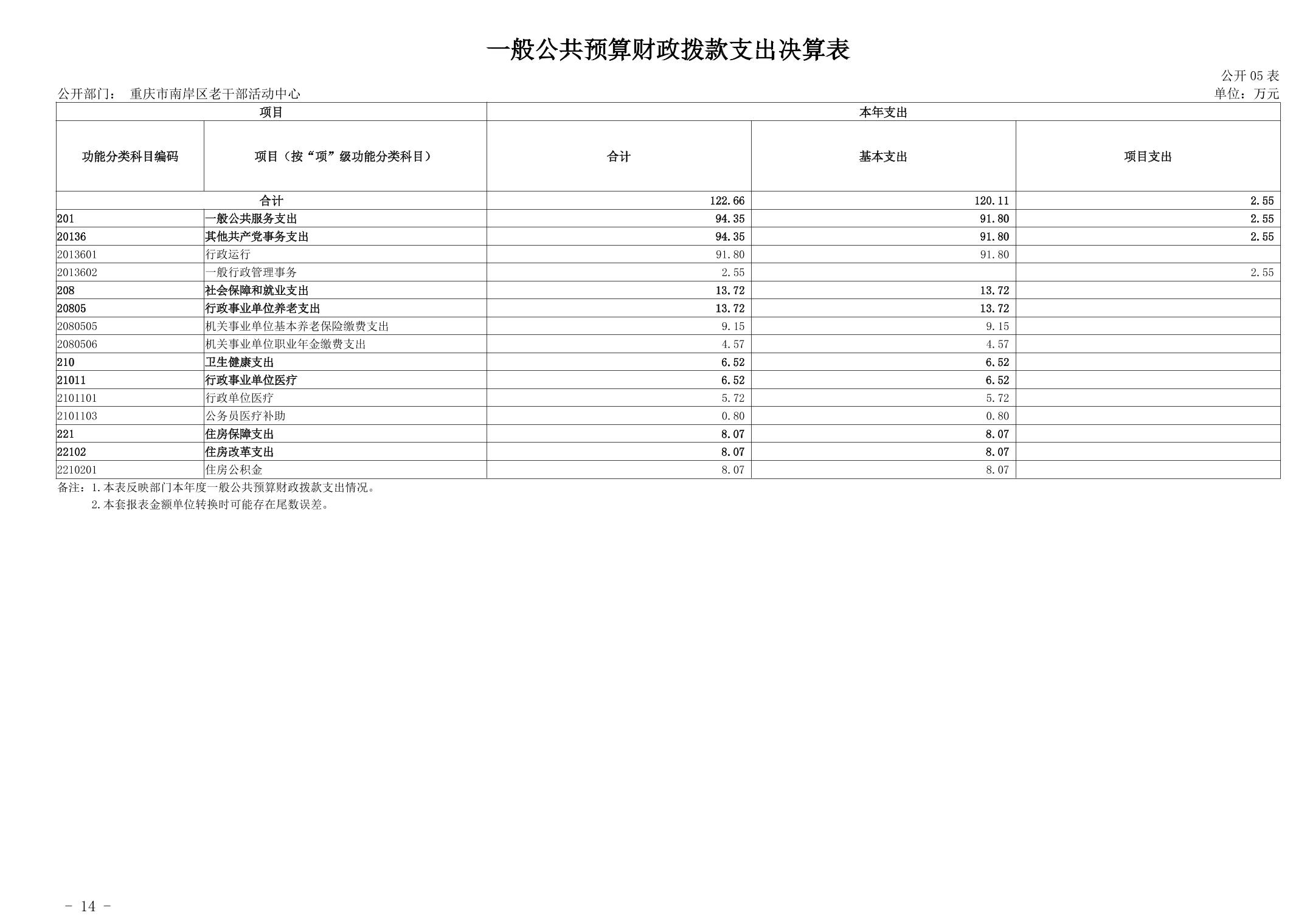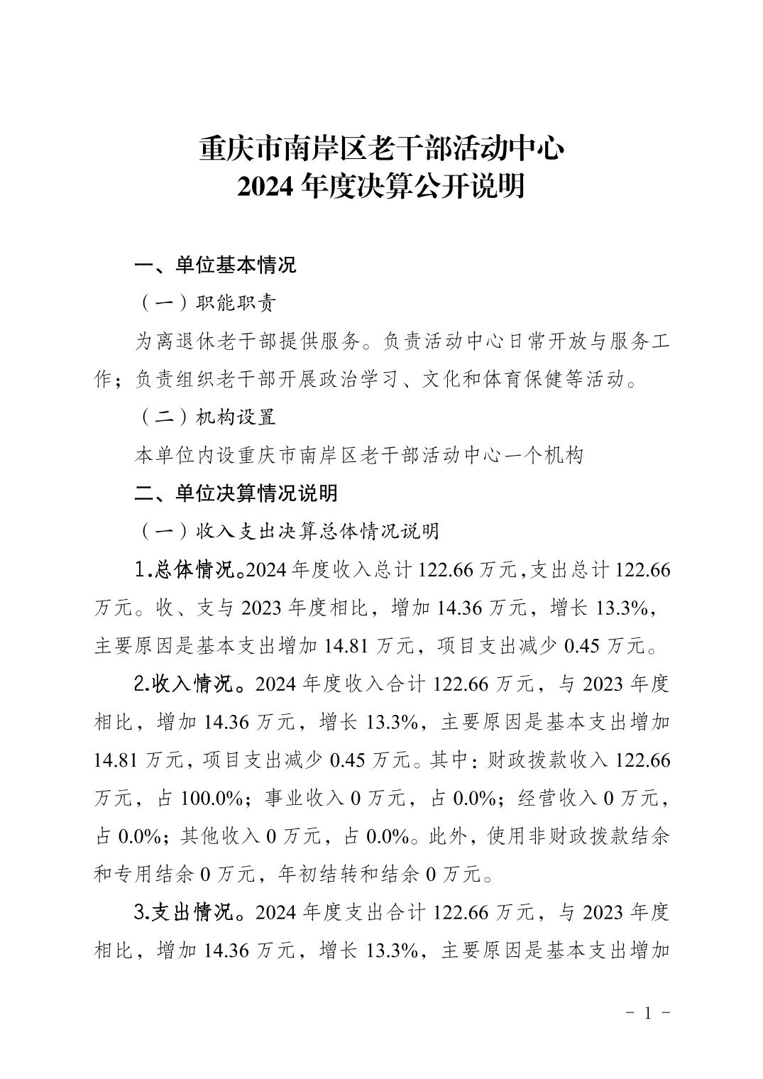 重庆市南岸区老干部活动中心2024 年度决算公开说明
