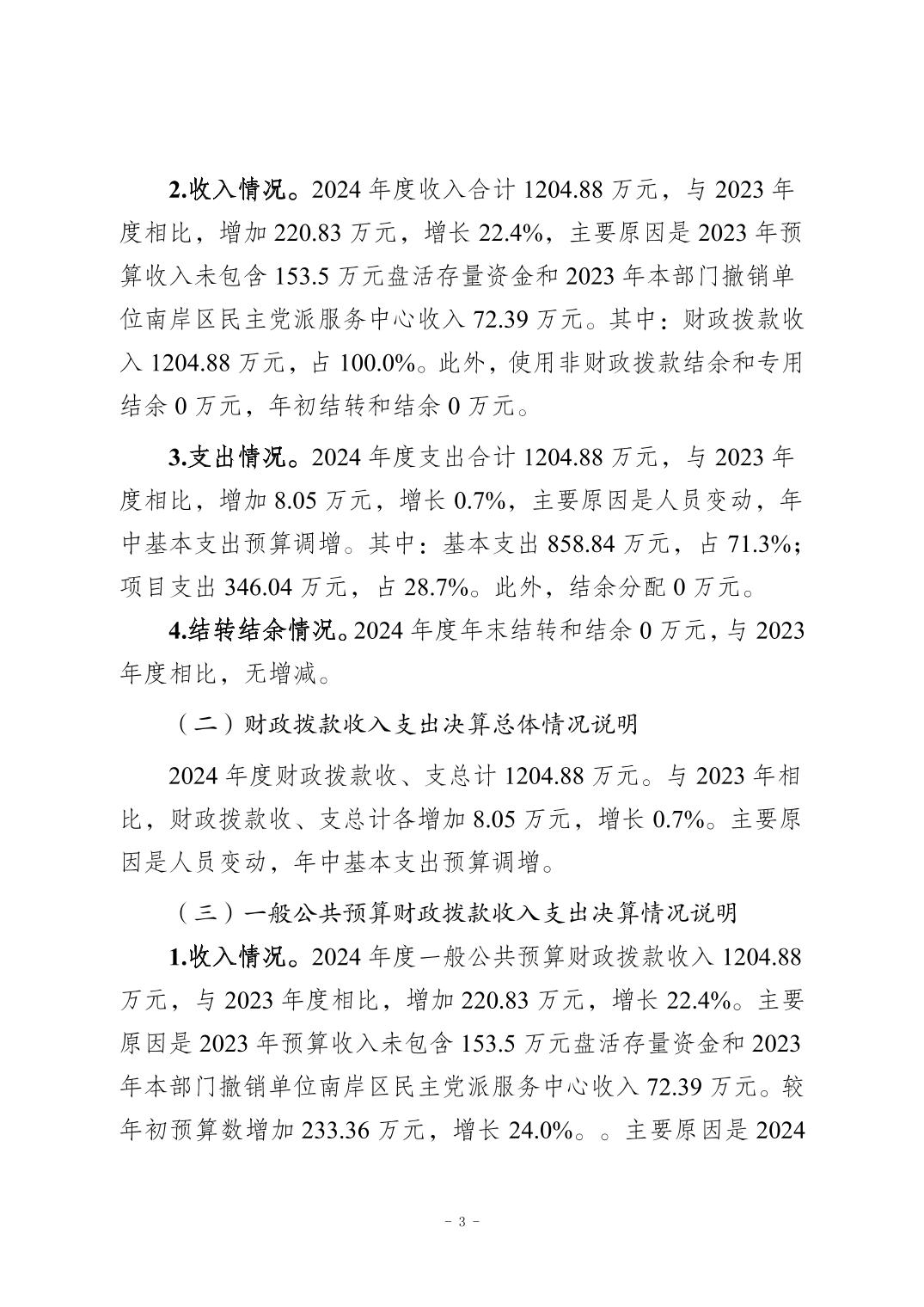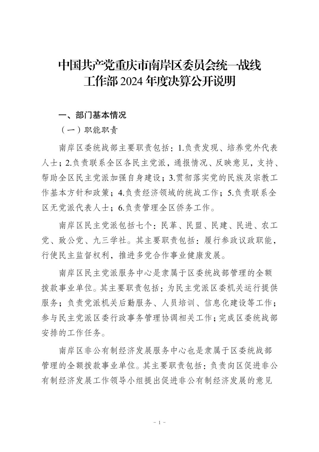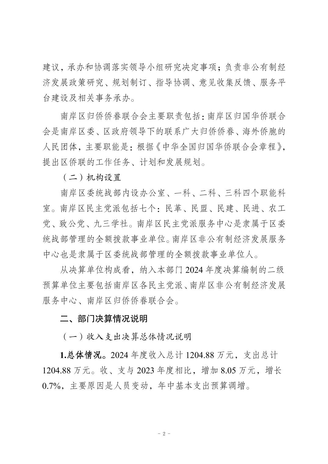 中国共产党重庆市南岸区委员会统一战线工作部2024年决算公开说明