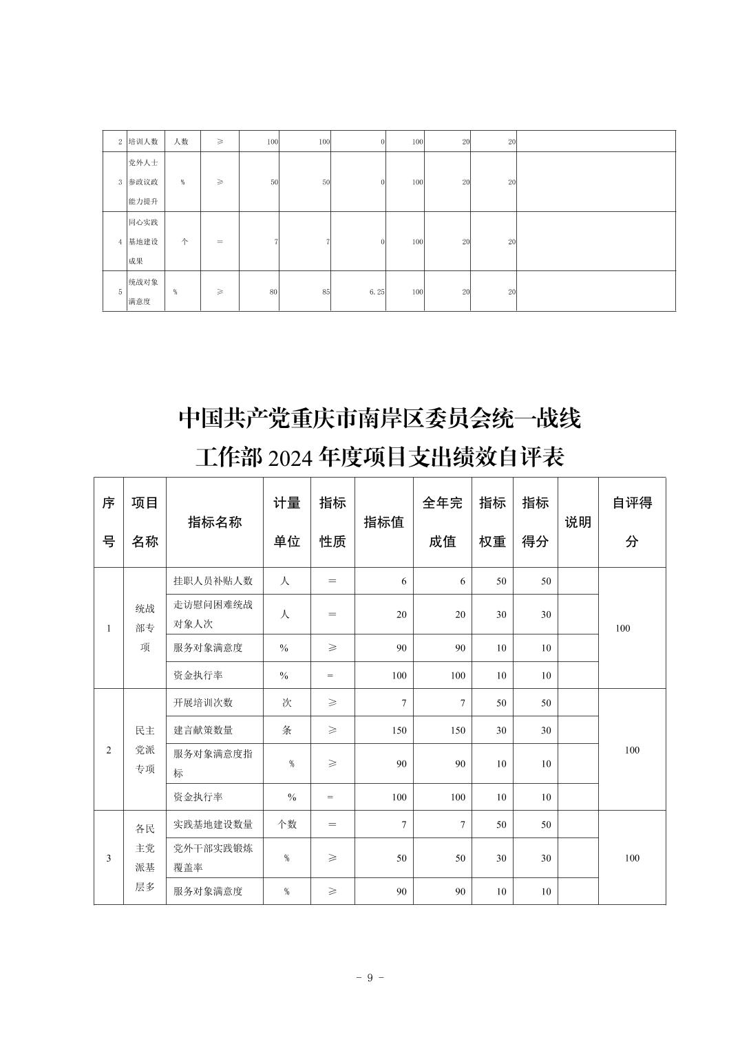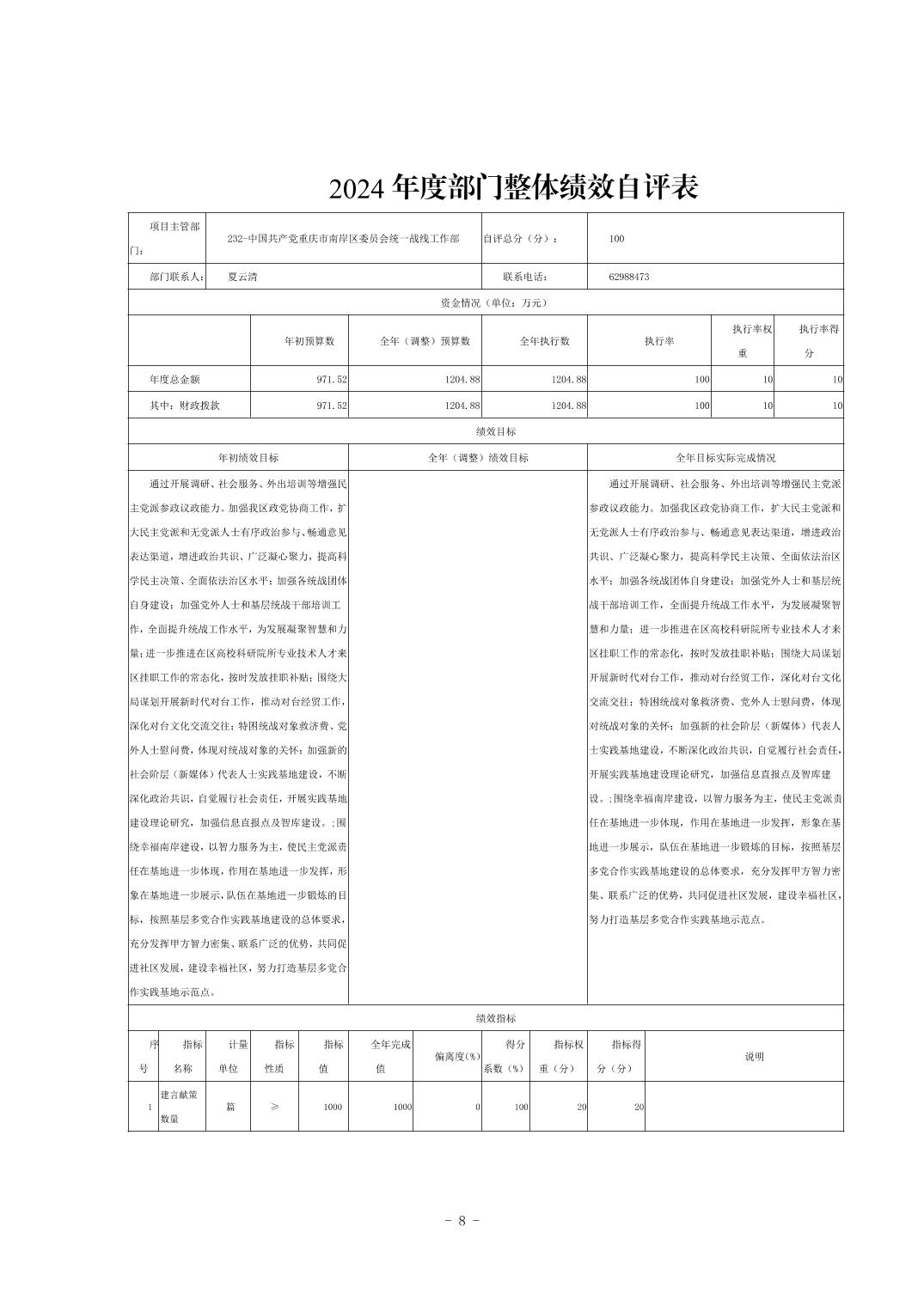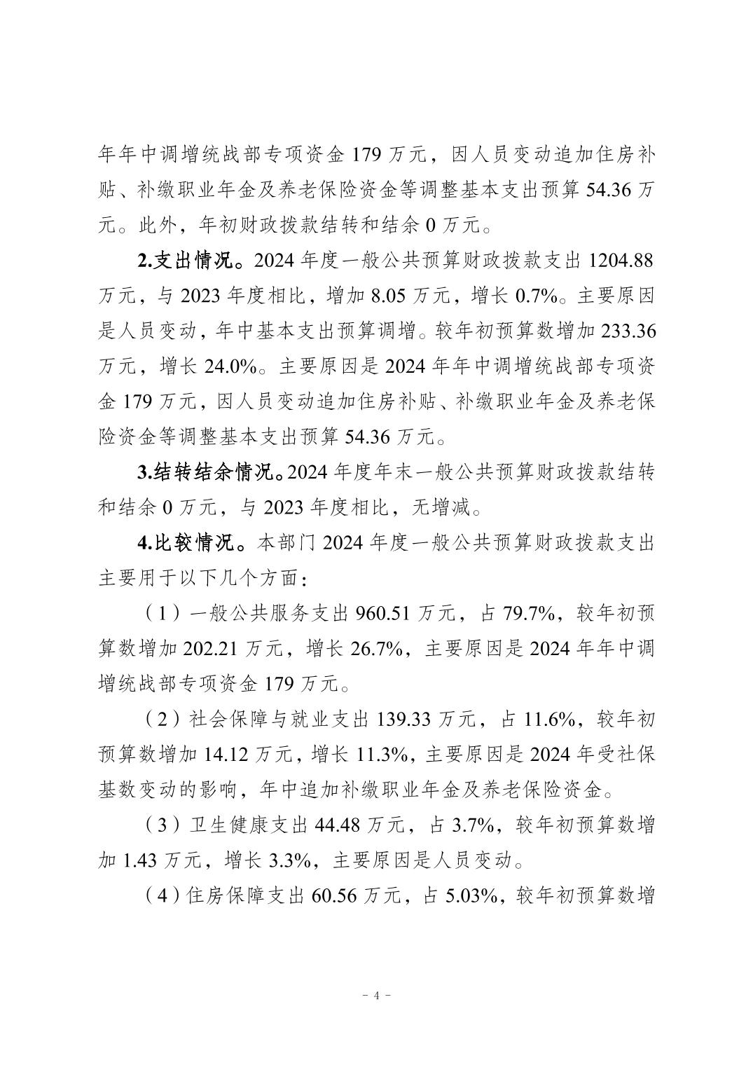 中国共产党重庆市南岸区委员会统一战线工作部2024年决算公开说明