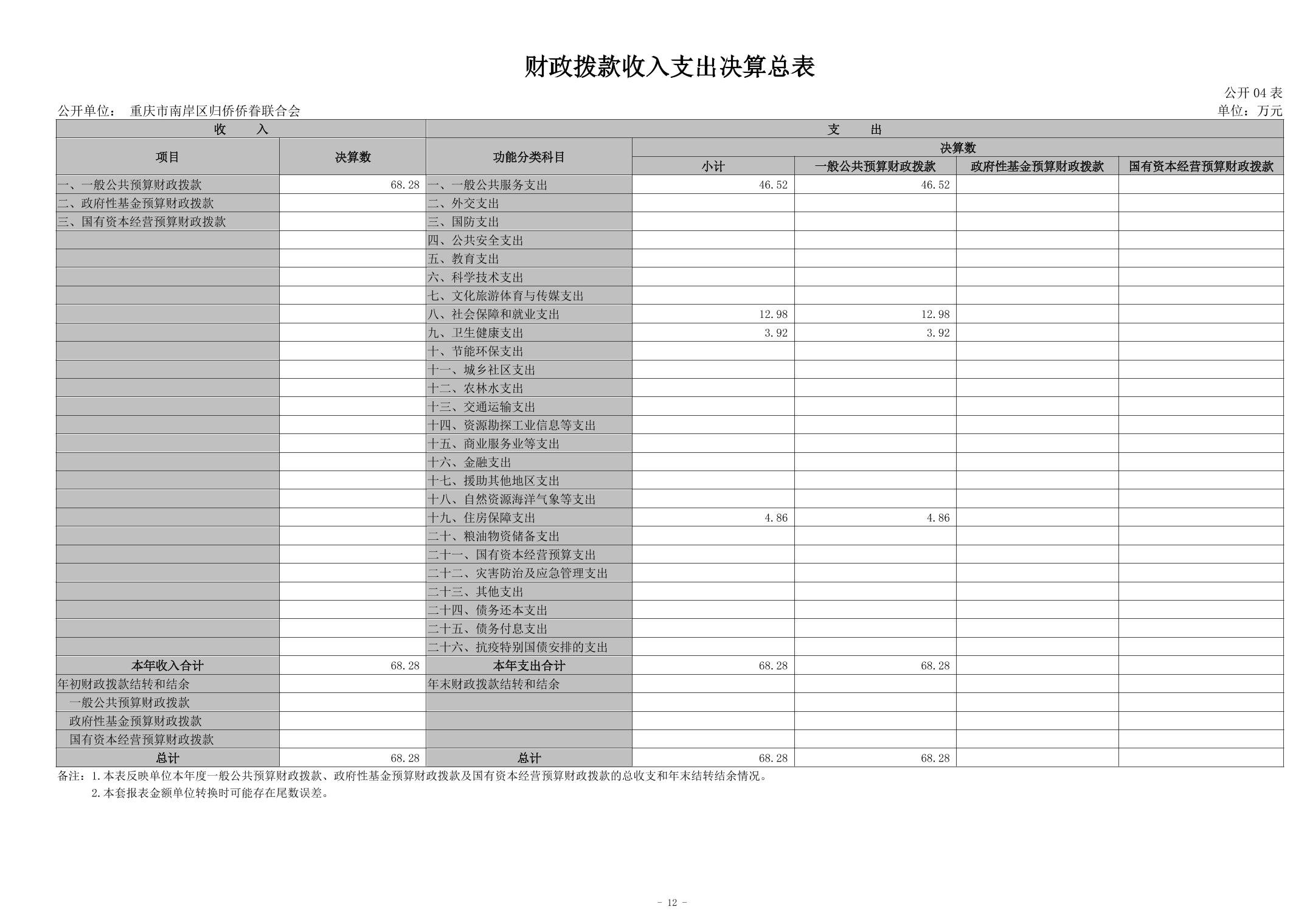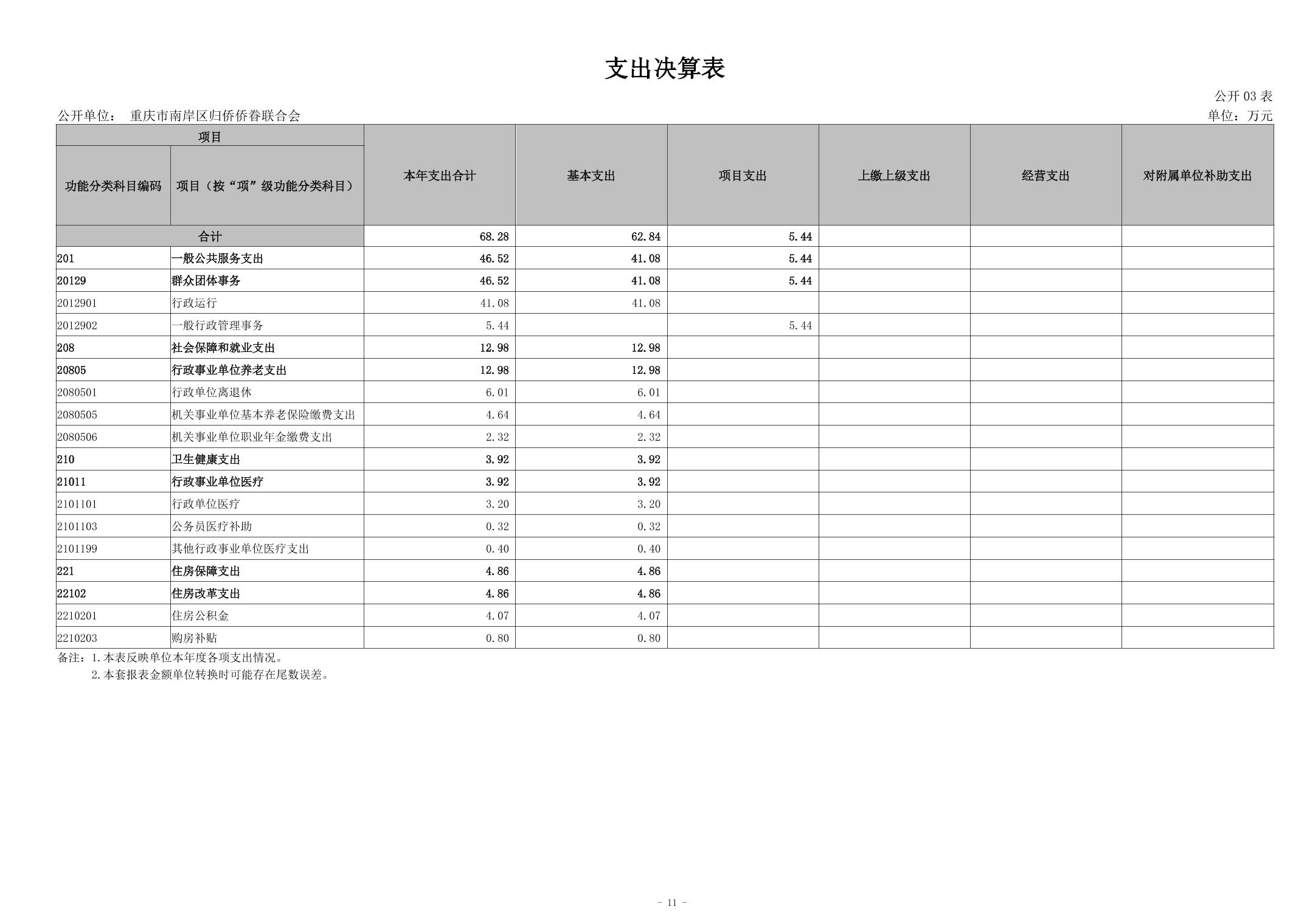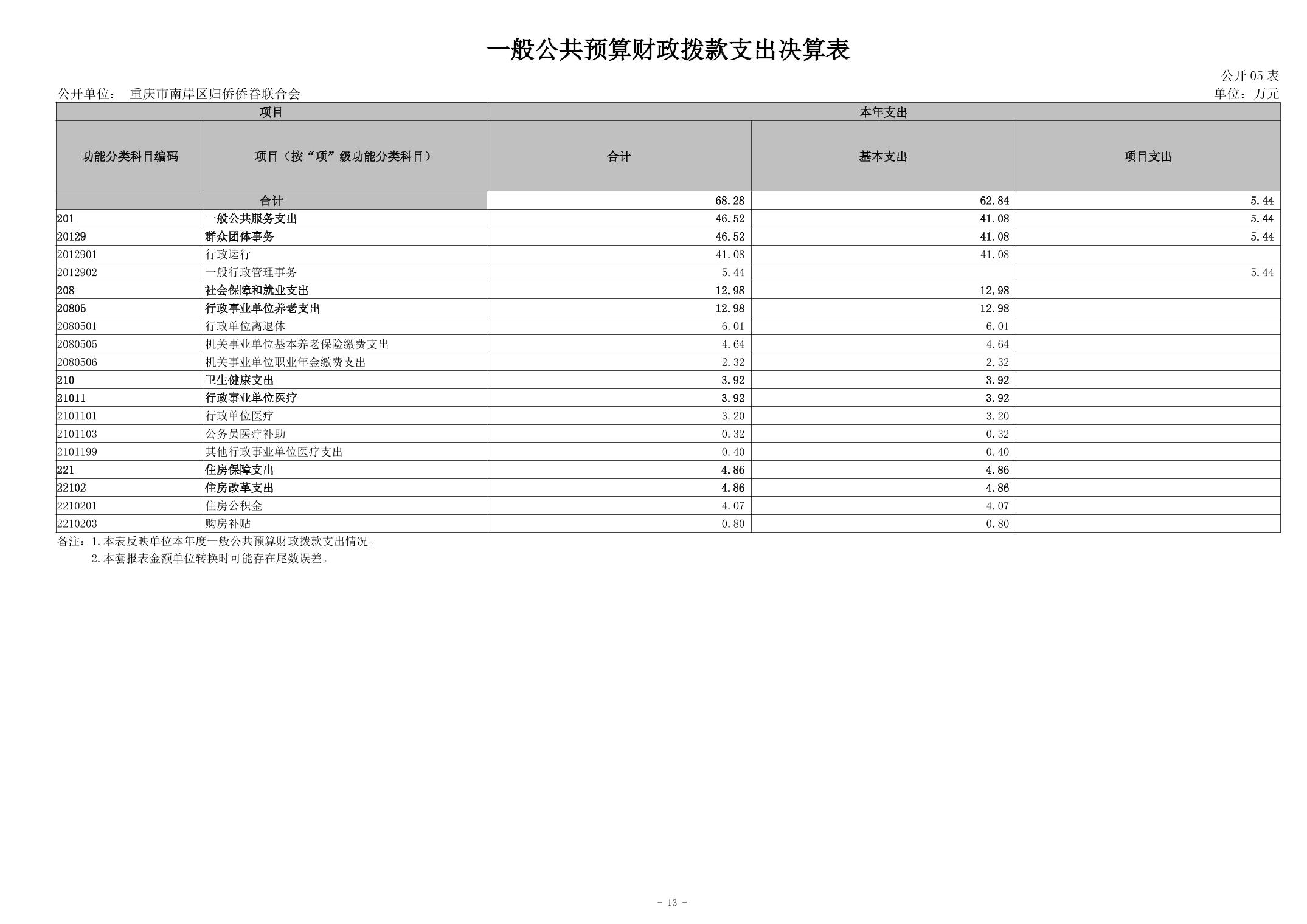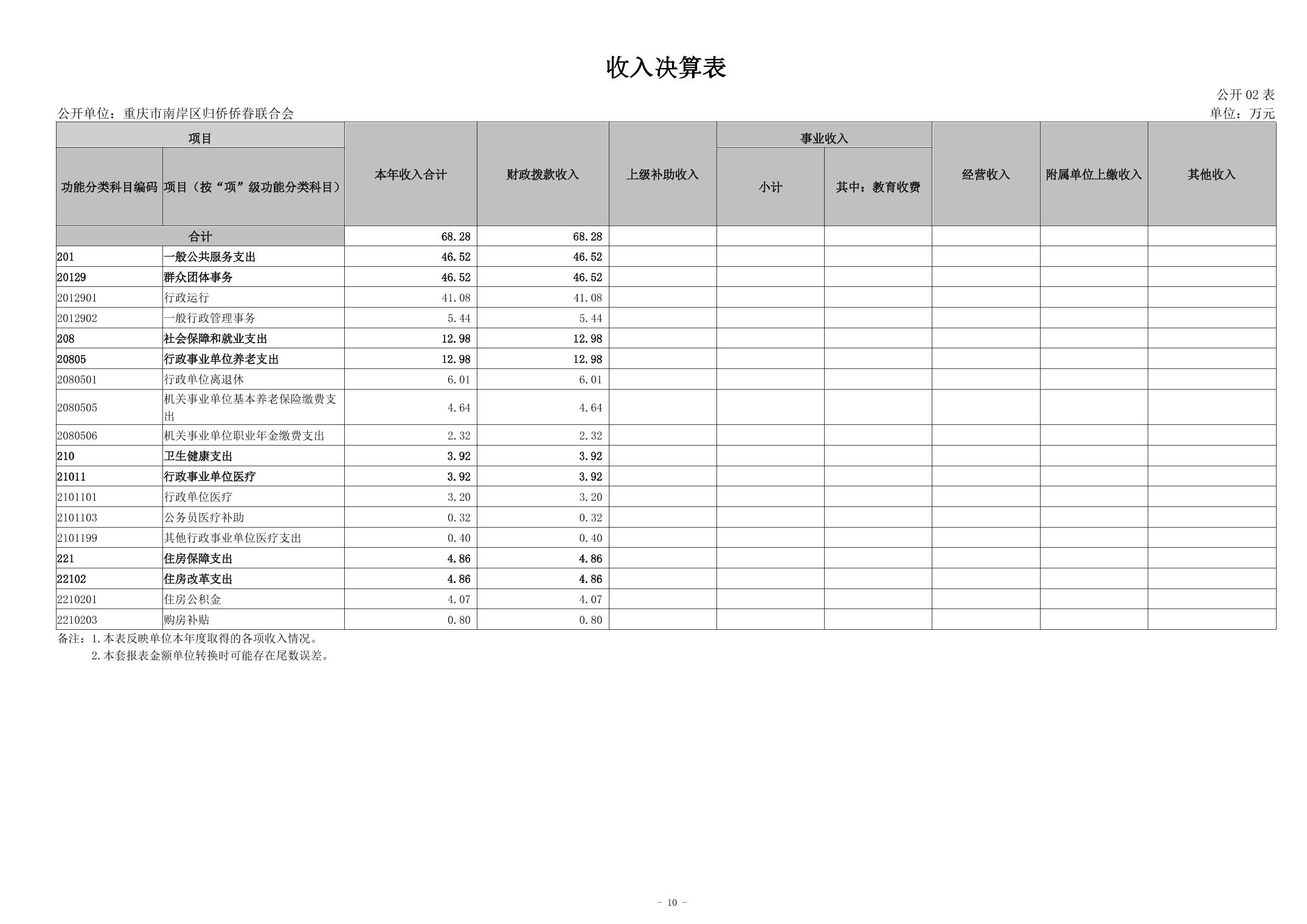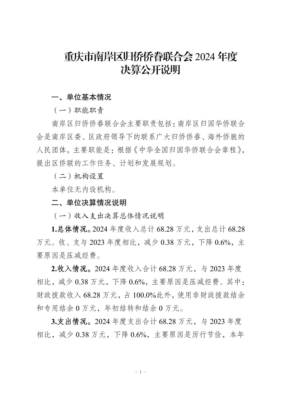 重庆市南岸区归侨侨眷联合会2024年度决算公开说明
