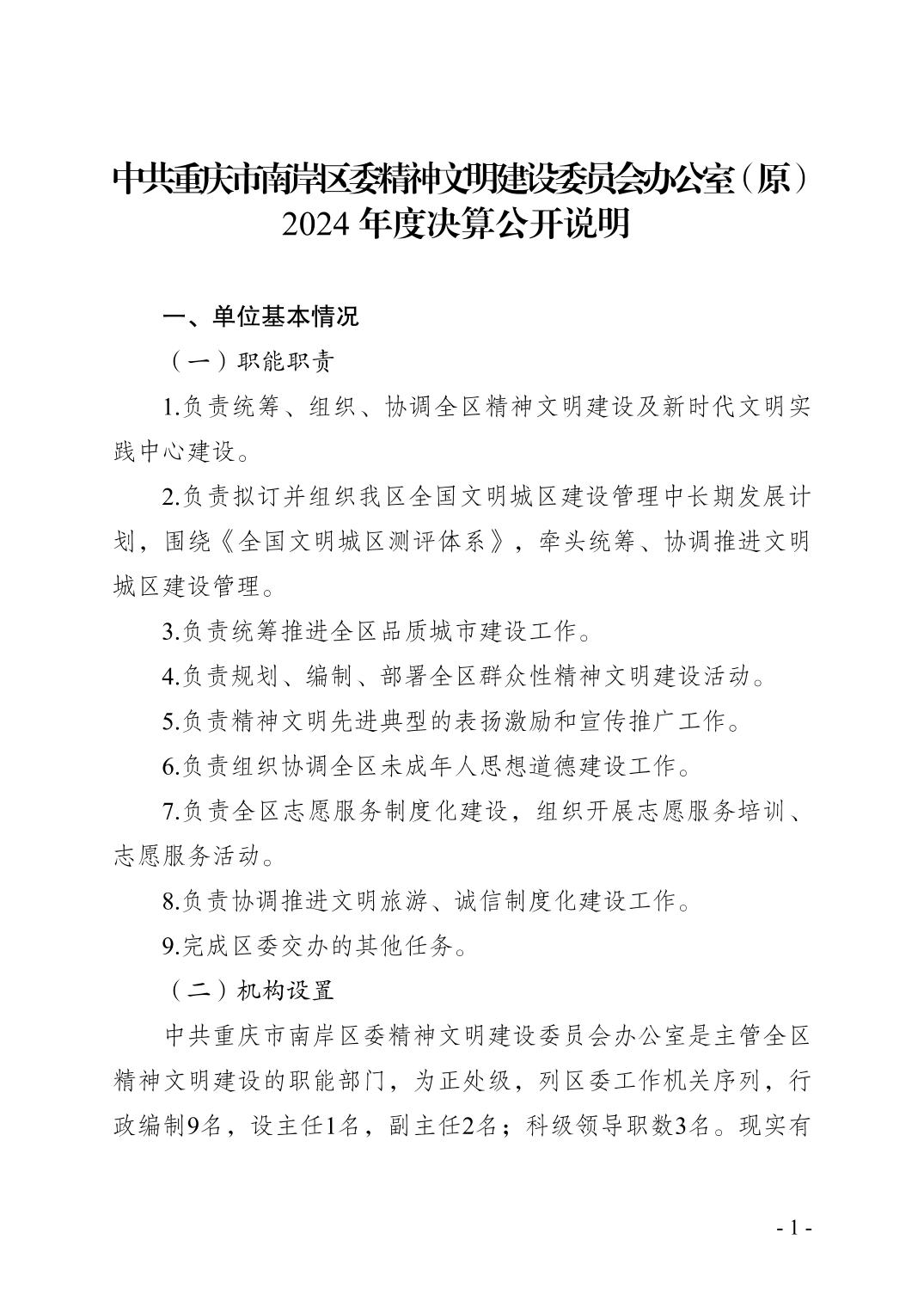 中共重庆市南岸区委精神文明建设委员会办公室(原)2024年决算公开说明