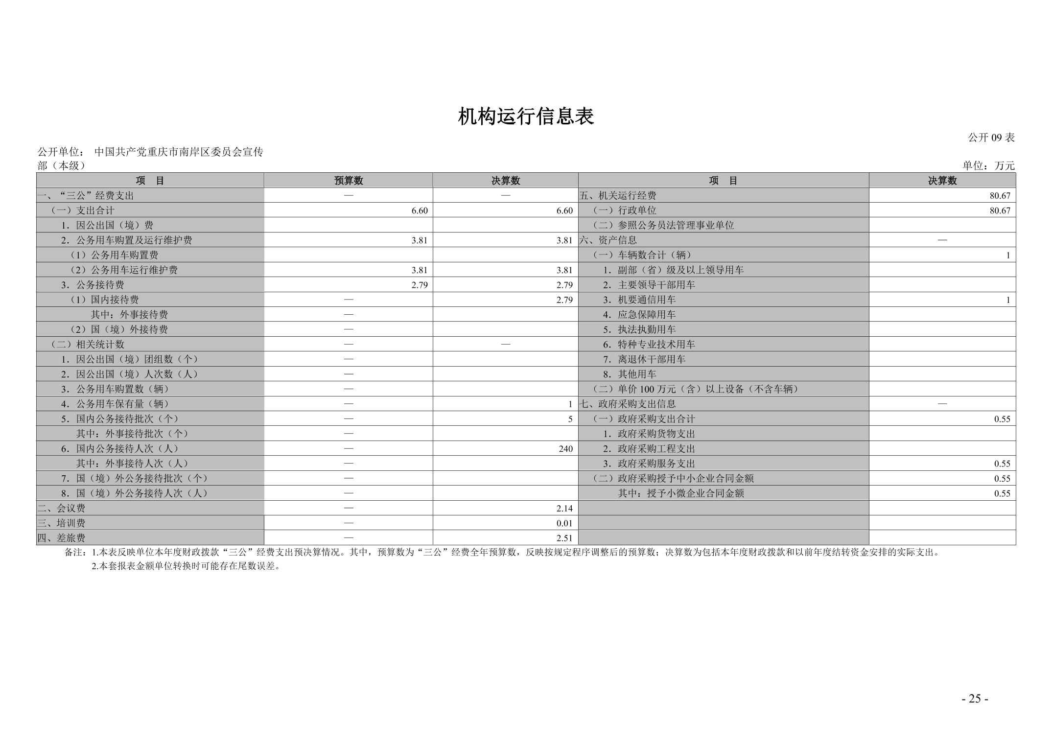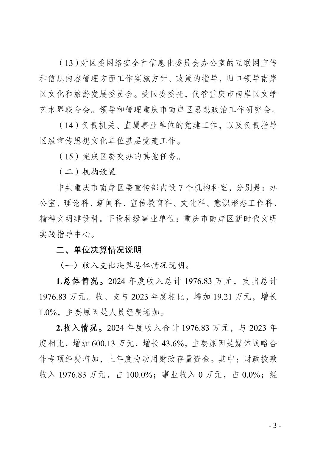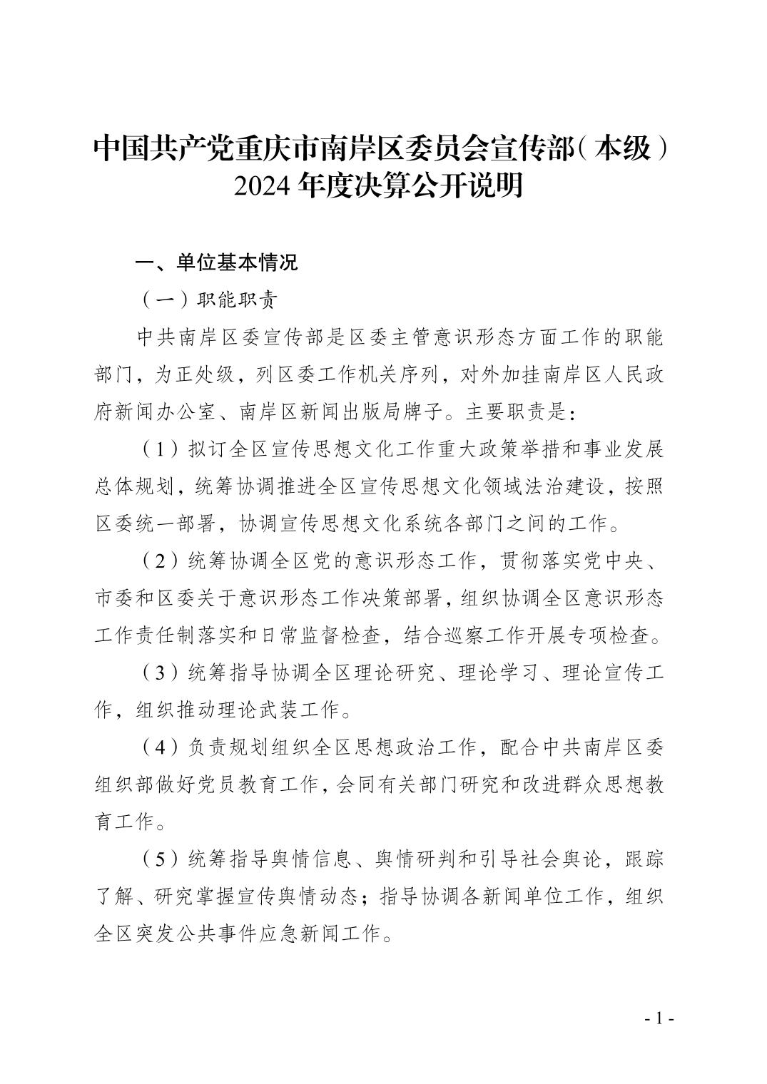 中国共产党重庆市南岸区委员会宣传部(本级)2024年决算公开说明