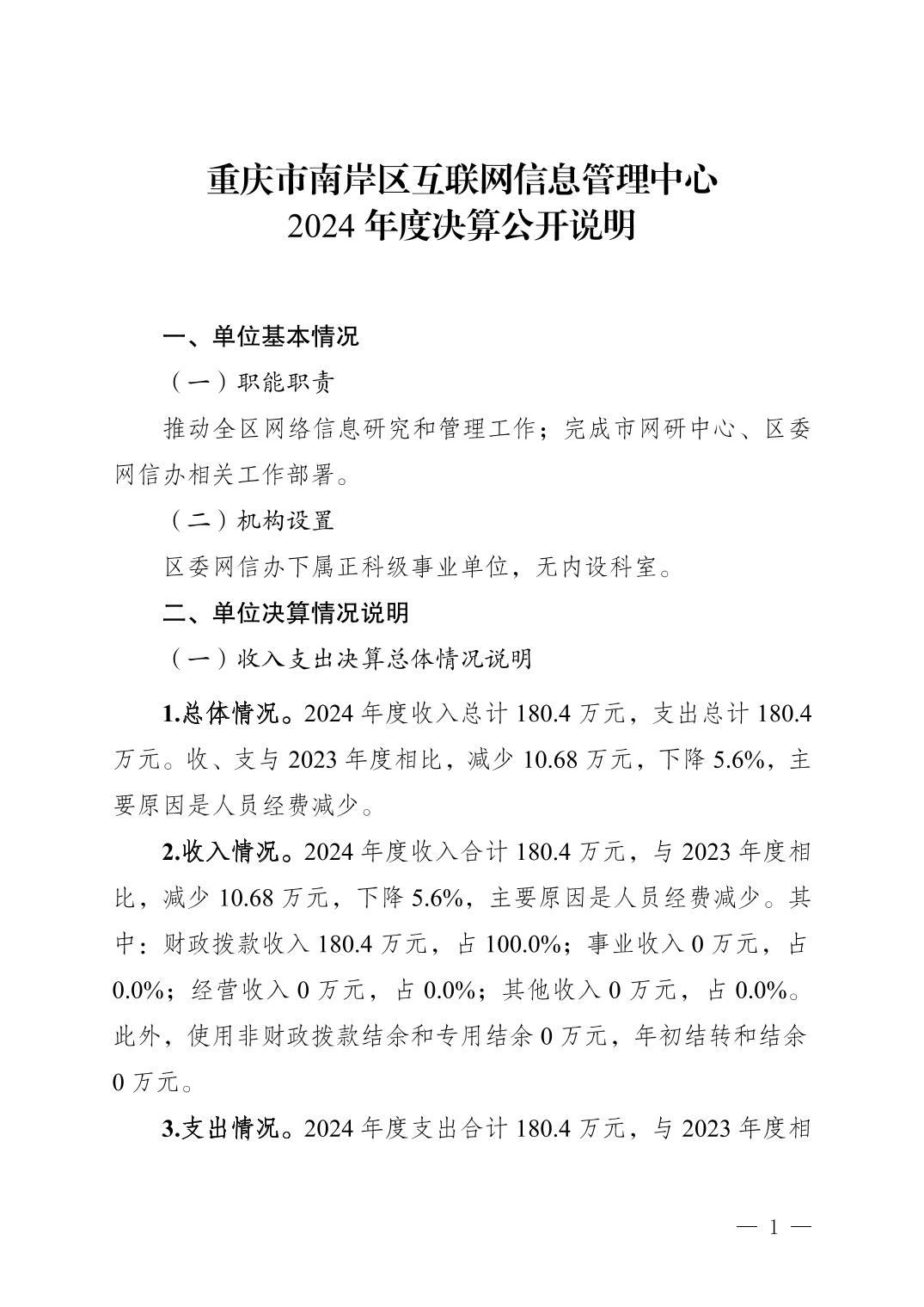 重庆市南岸区互联网信息管理中心2024决算公开说明