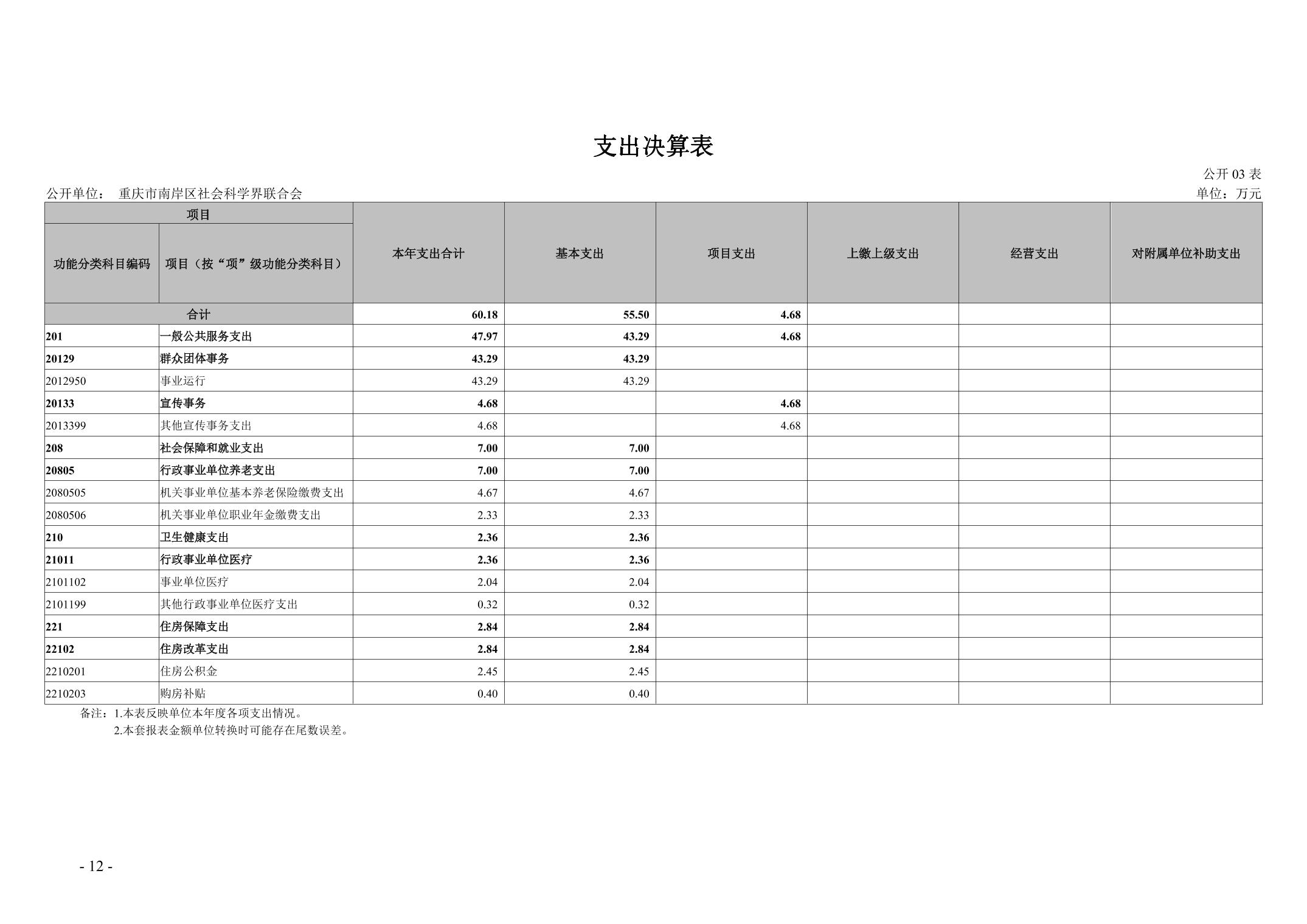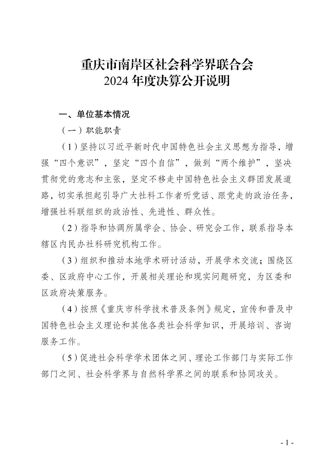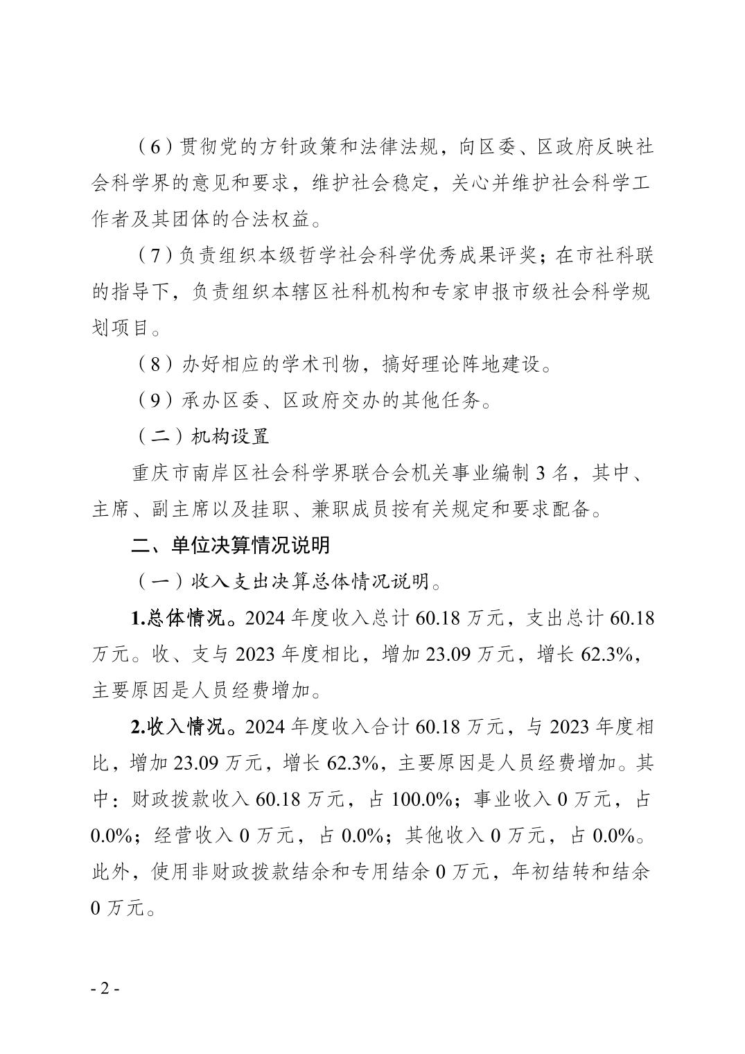 重庆市南岸区社会科学界联合会2024年决算公开说明