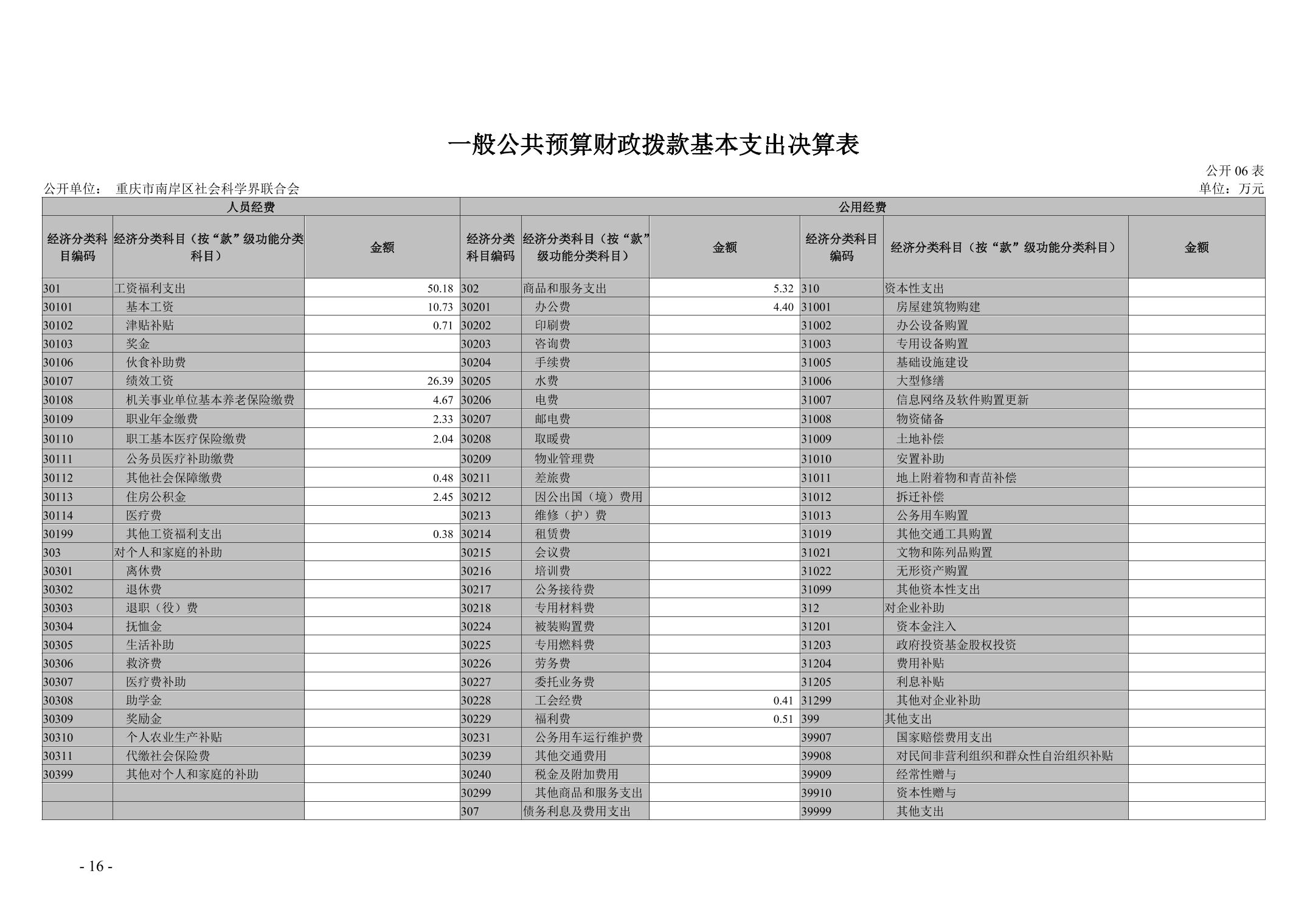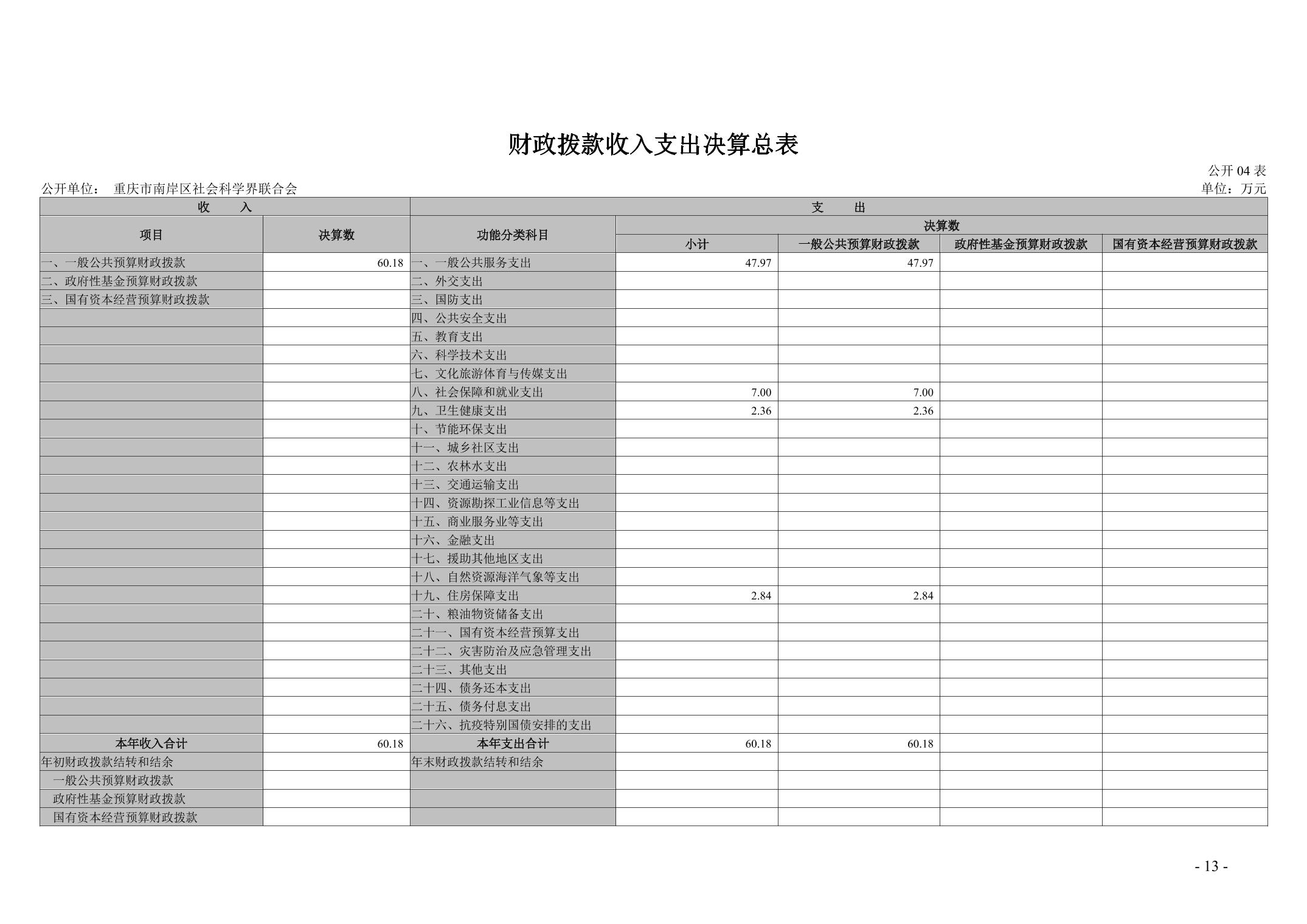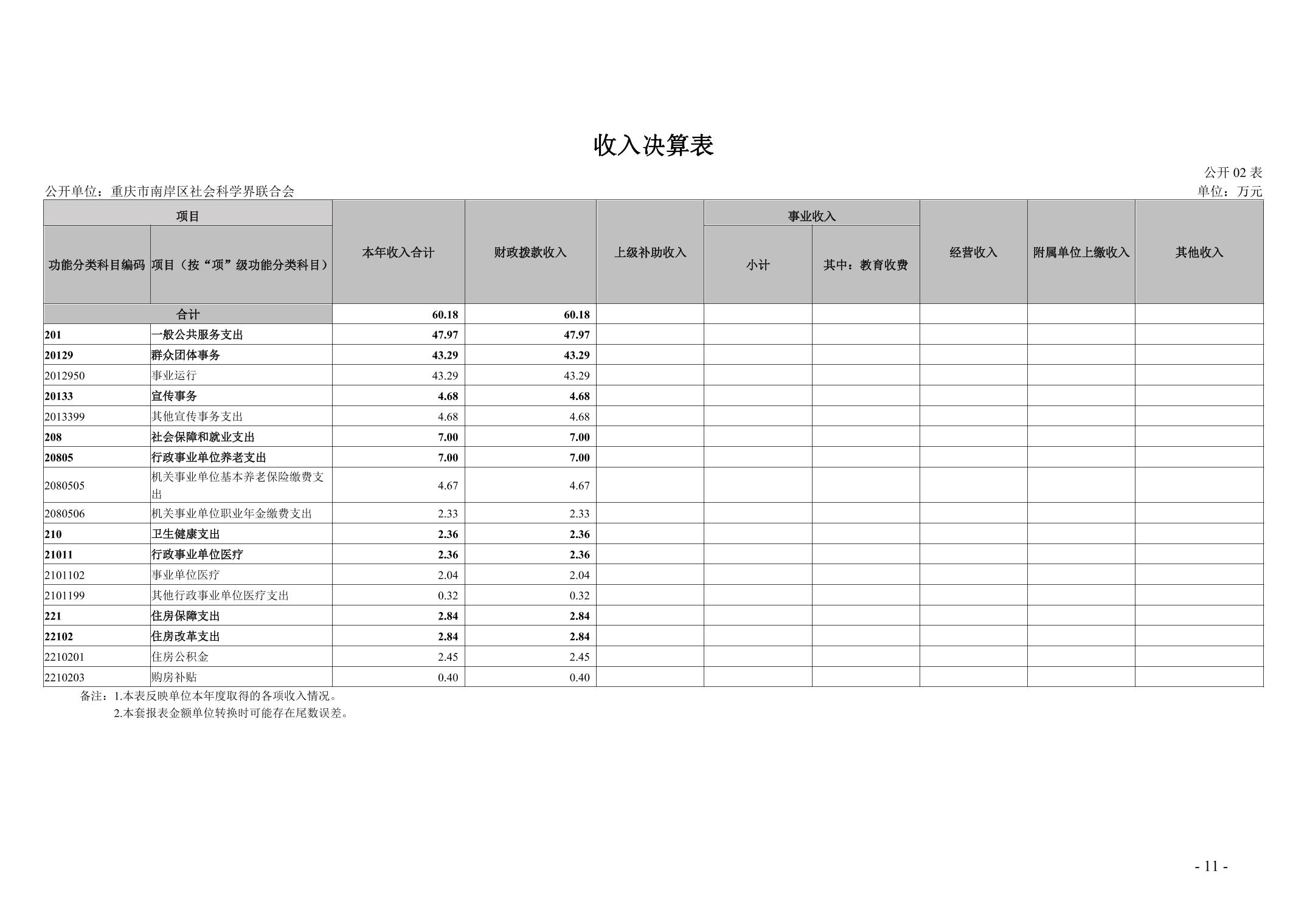 重庆市南岸区社会科学界联合会2024年决算公开说明