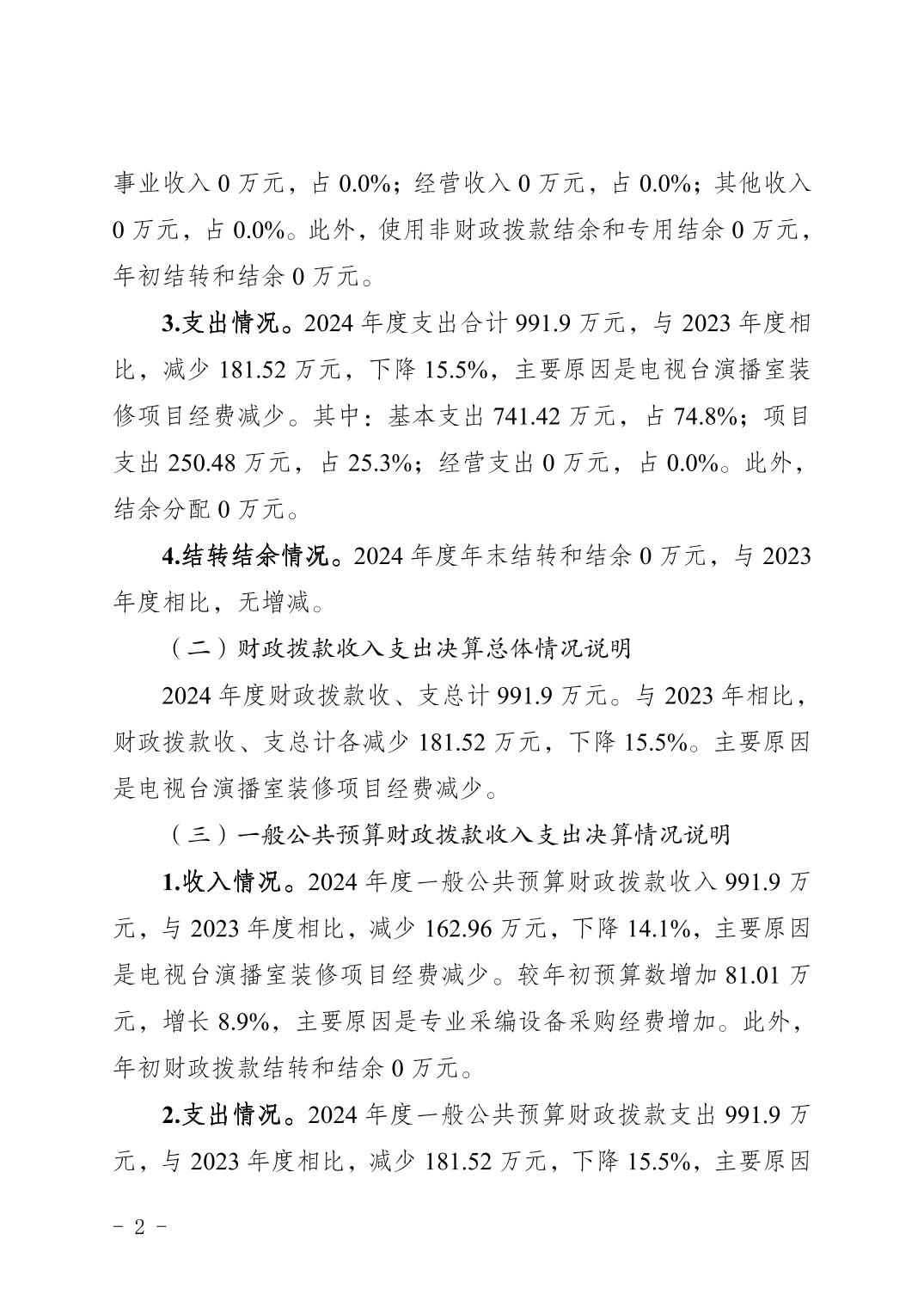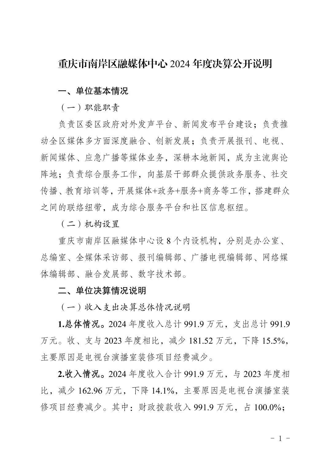 重庆市南岸区融媒体中心2024年决算公开说明