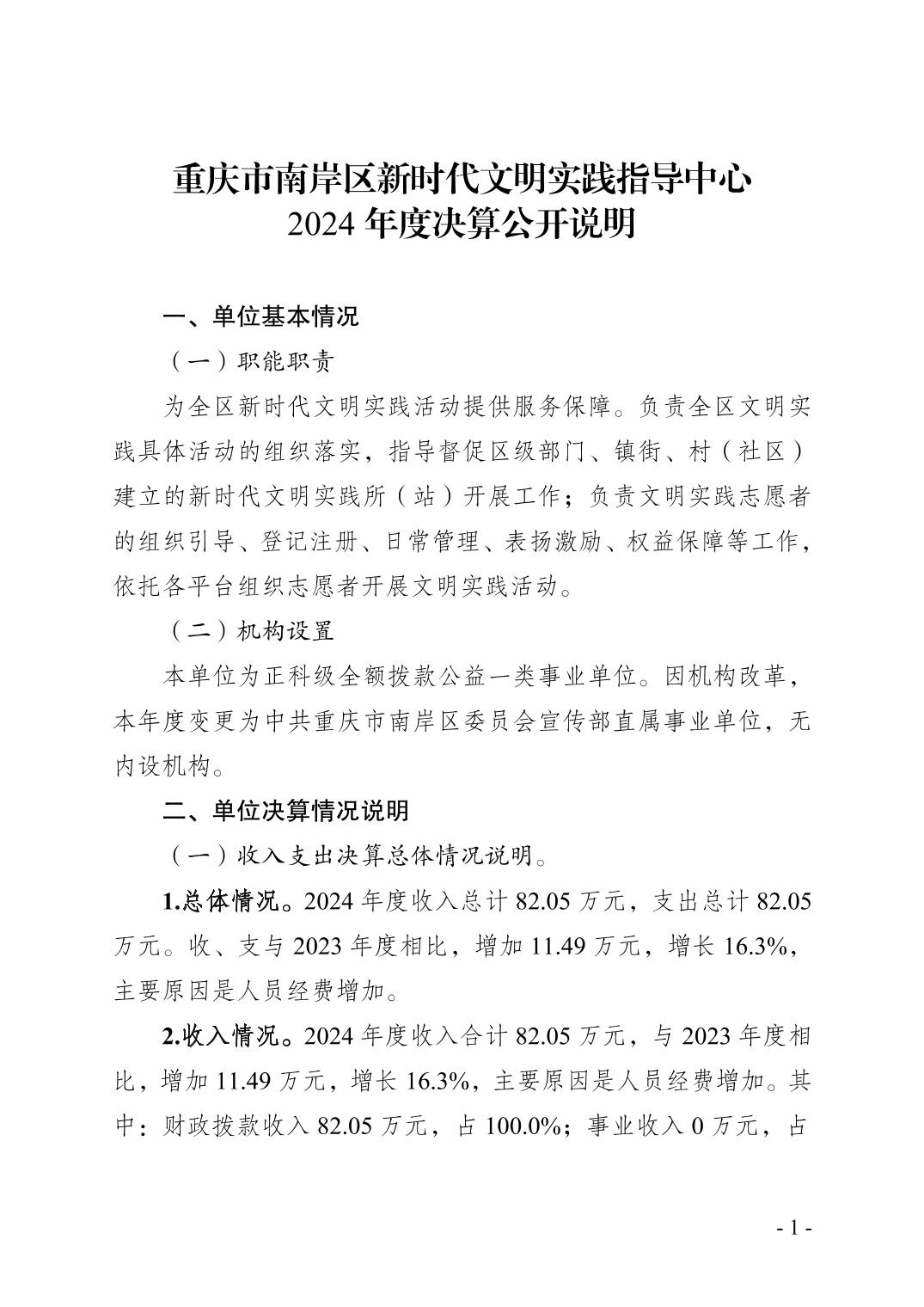 重庆市南岸区新时代文明实践指导中心2024年决算公开说明