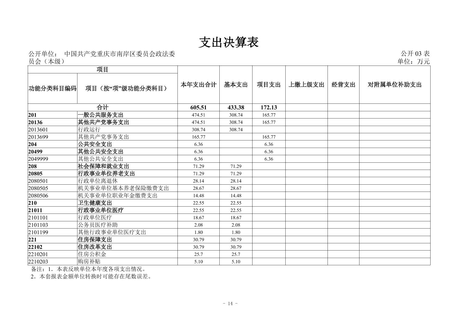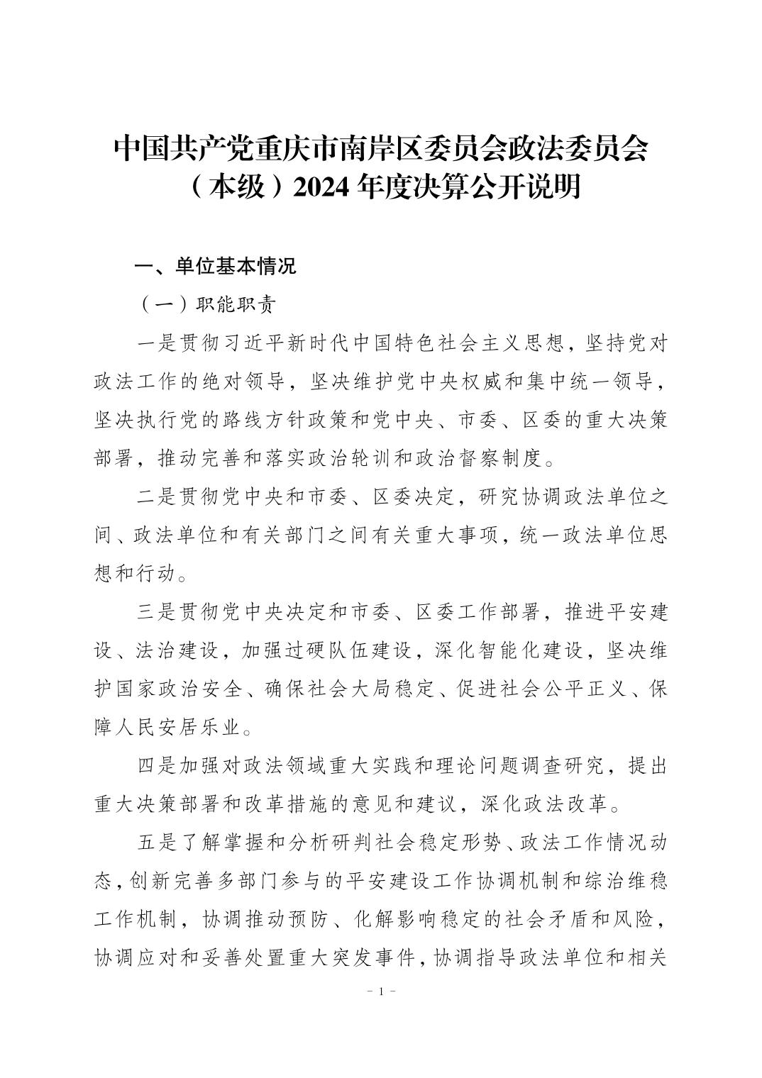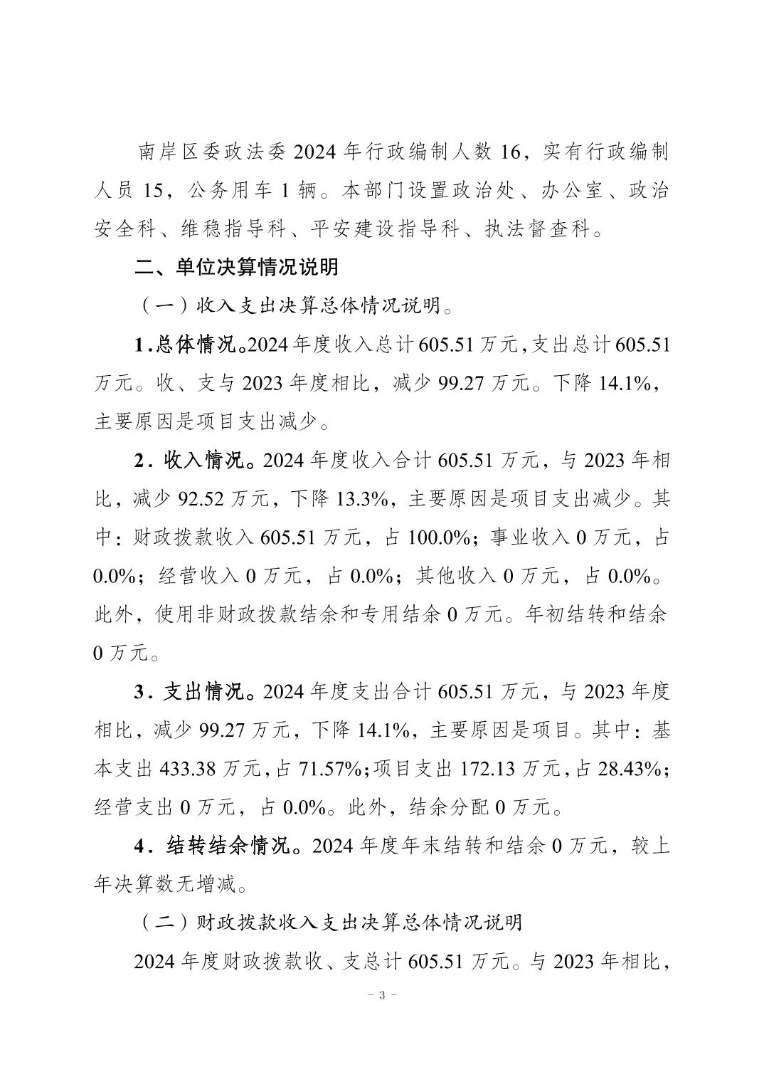 中国共产党重庆市南岸区委员会政法委员会(本级)2024年度决算公开说明