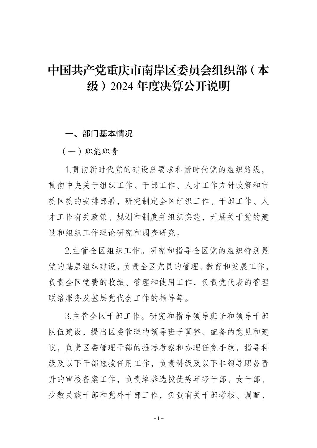 中国共产党重庆市南岸区委员会组织部(本级)2024年度决算公开说明