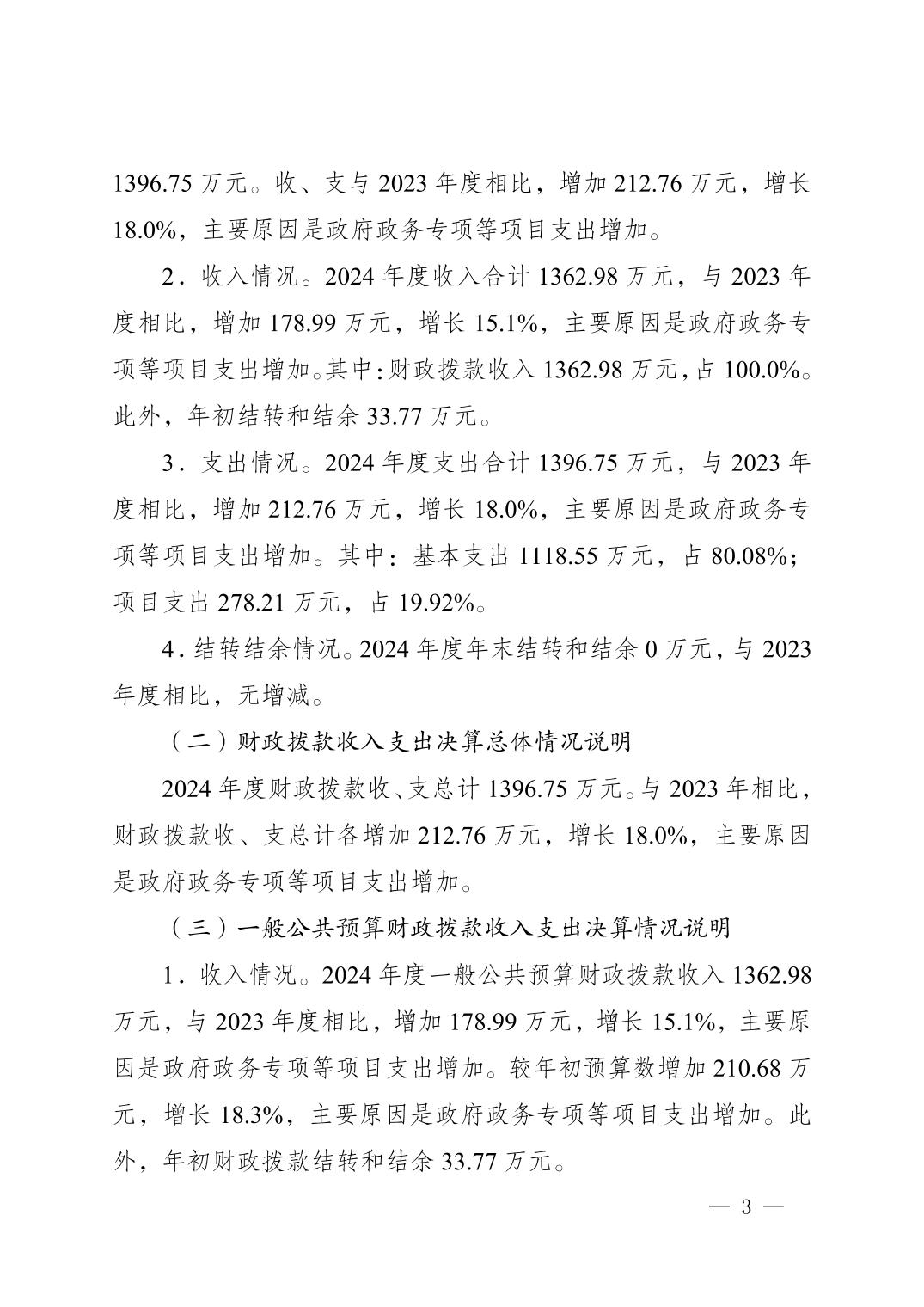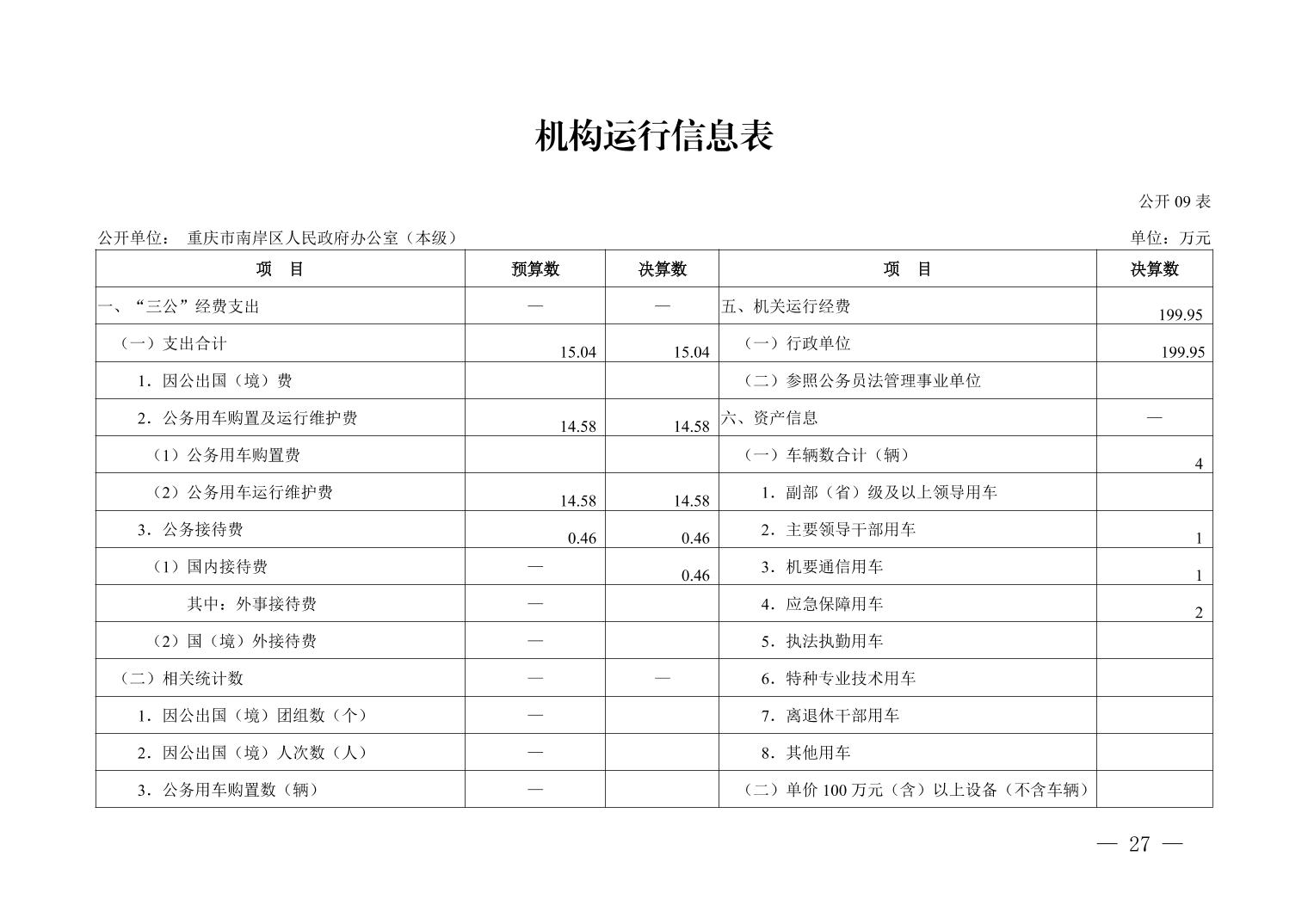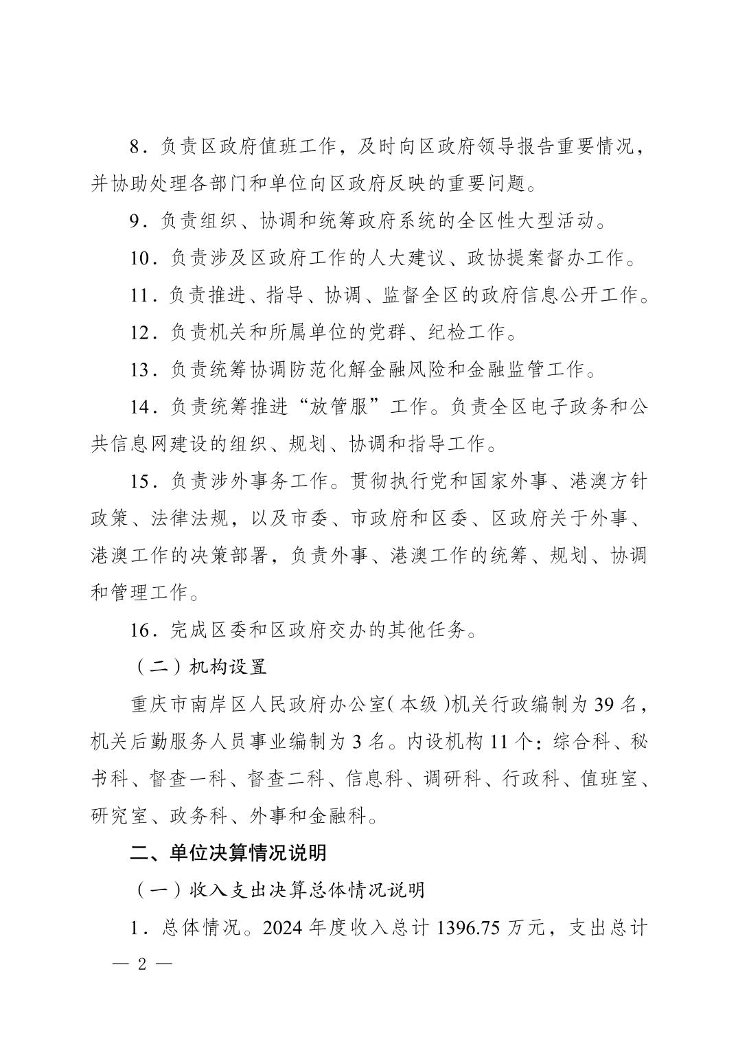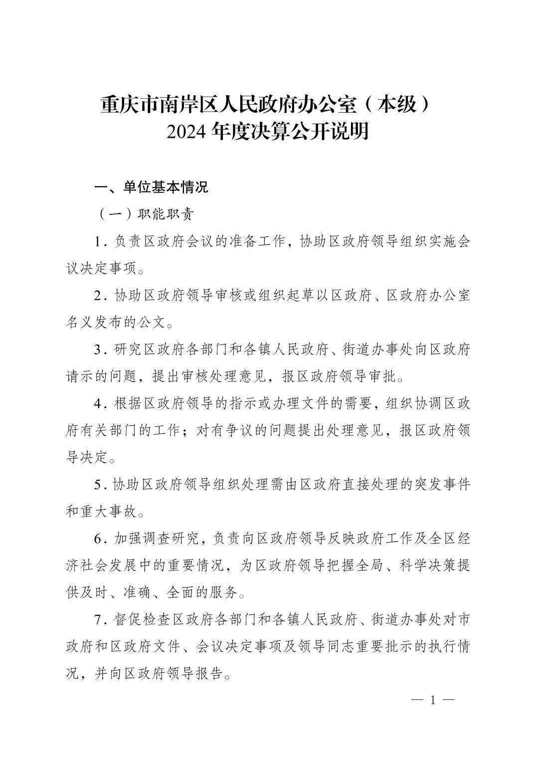 重庆市南岸区人民政府办公室(本级)2024年度决算公开说明