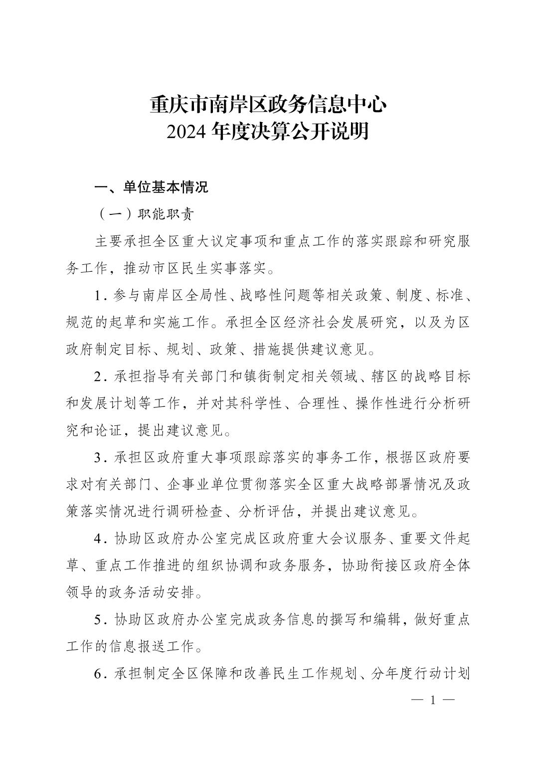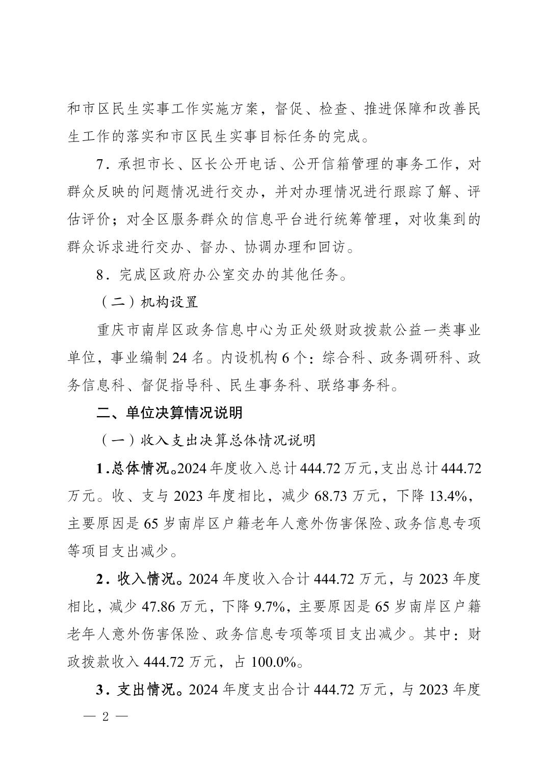 重庆市南岸区政务信息中心2024年度决算公开说明