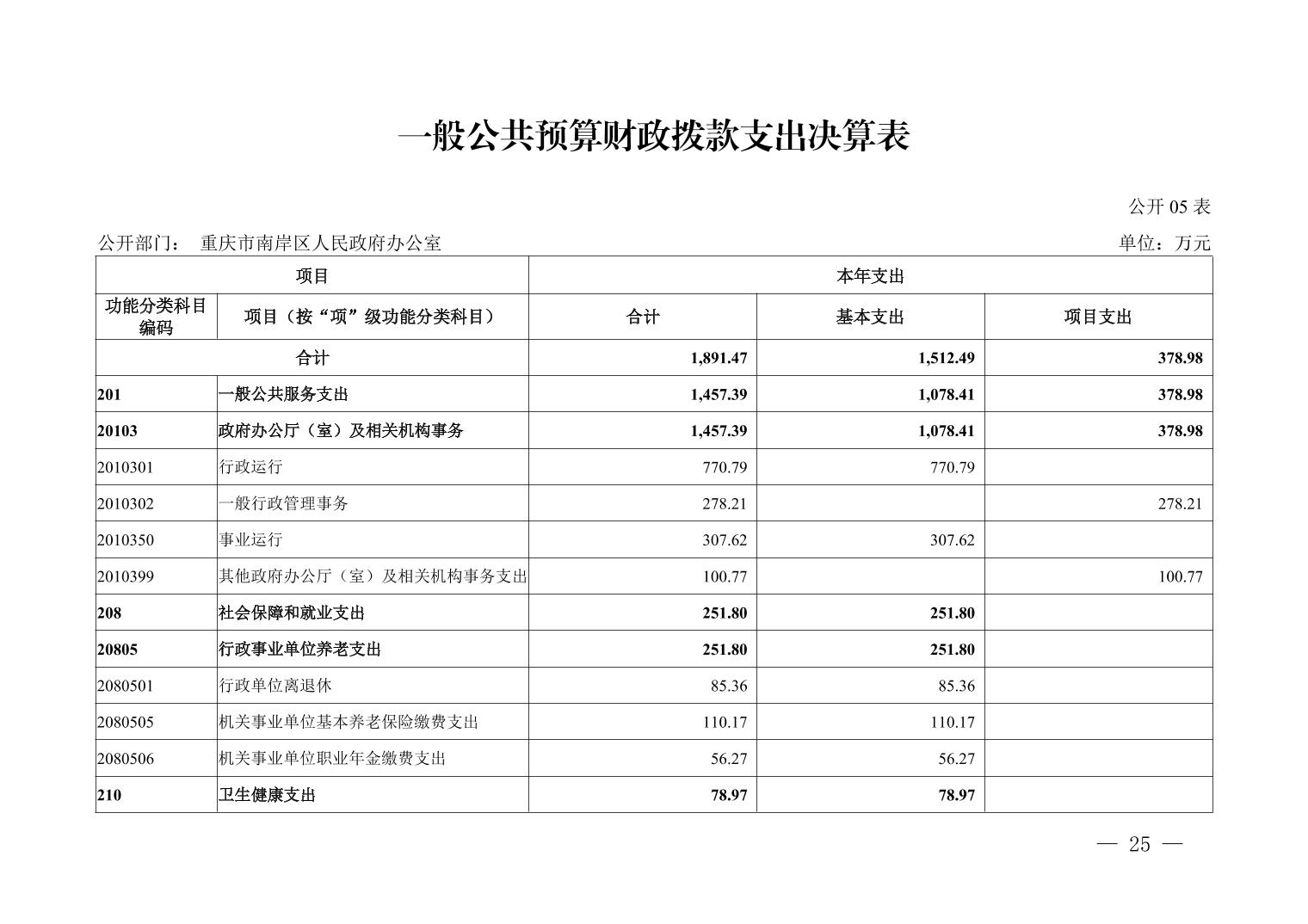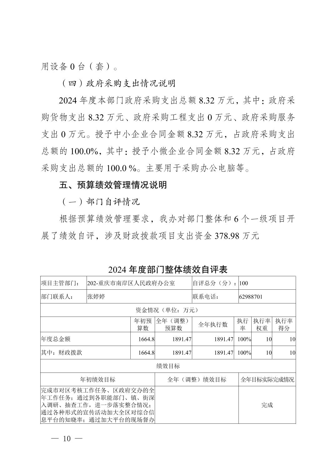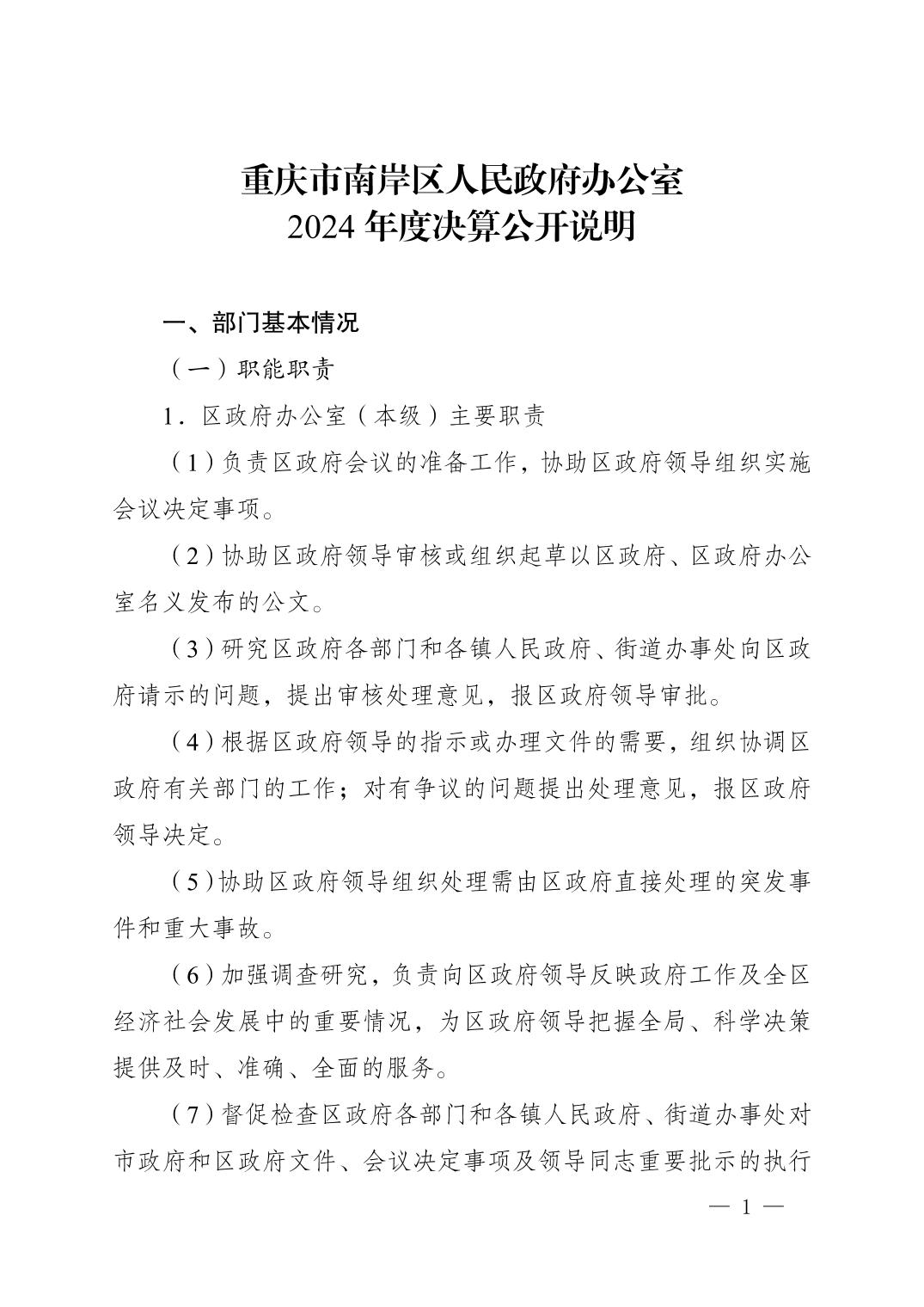 重庆市南岸区人民政府办公室2024年度决算公开说明