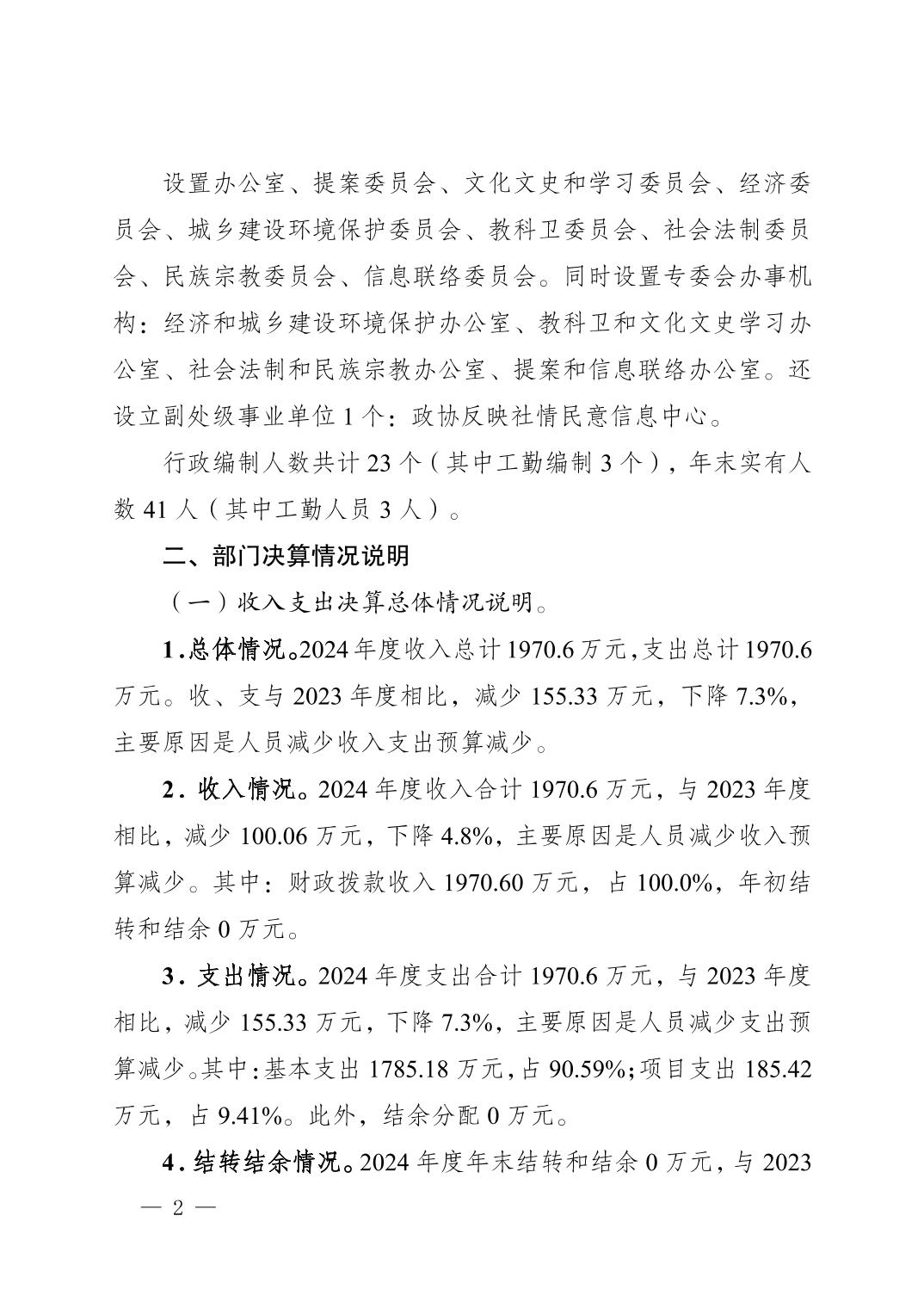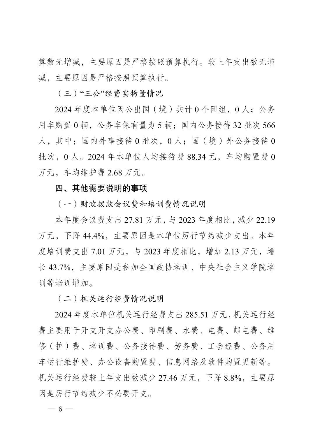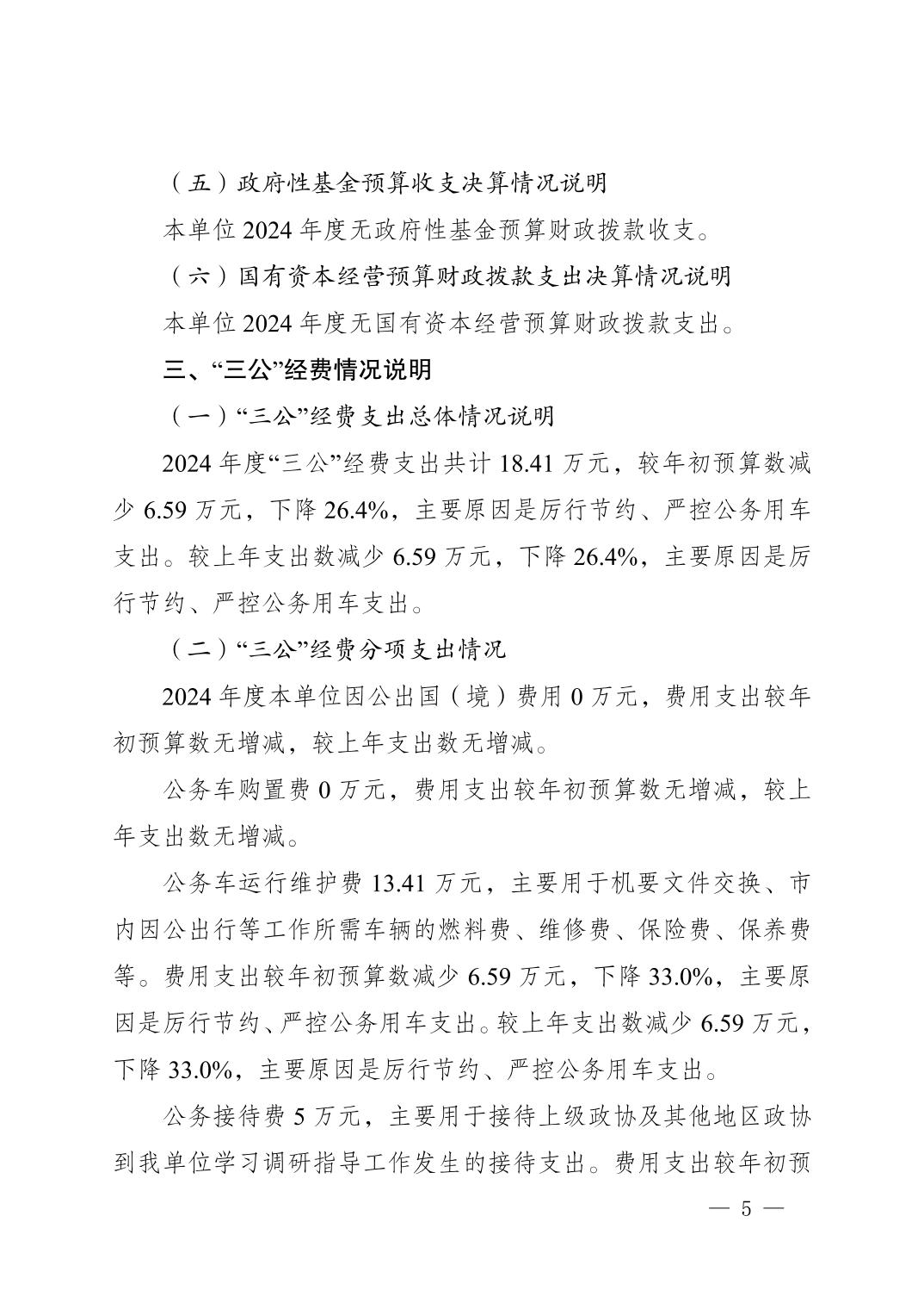 中国人民政治协商会议重庆市南岸区委员会办公室(本级)2024年度决算公开说明