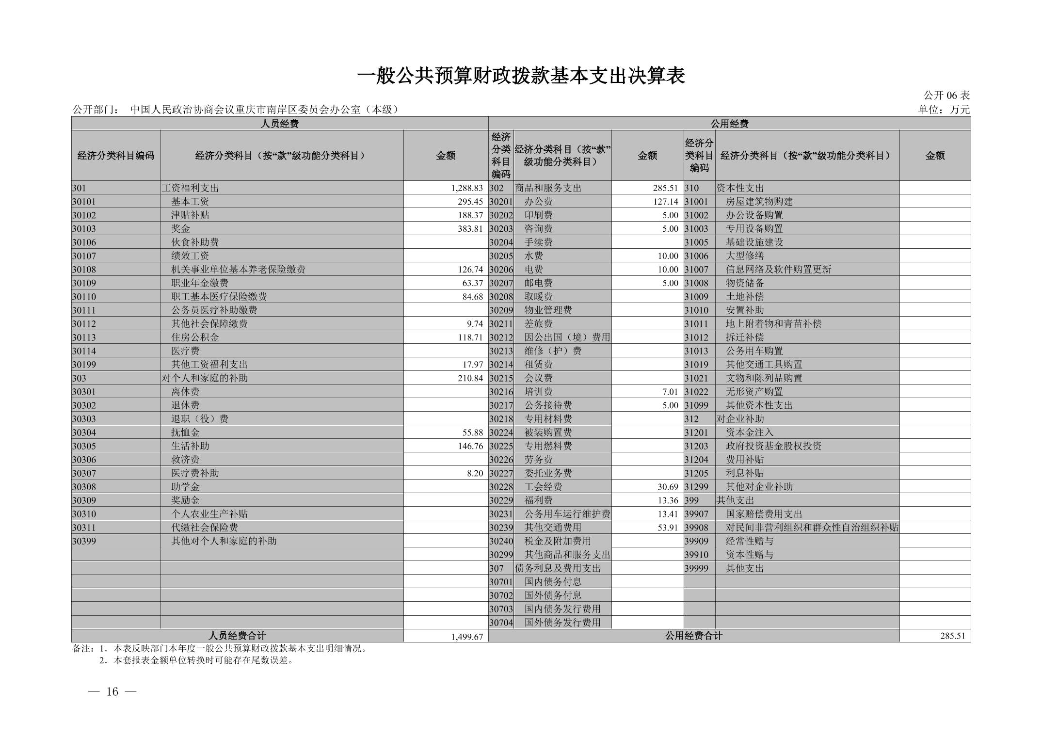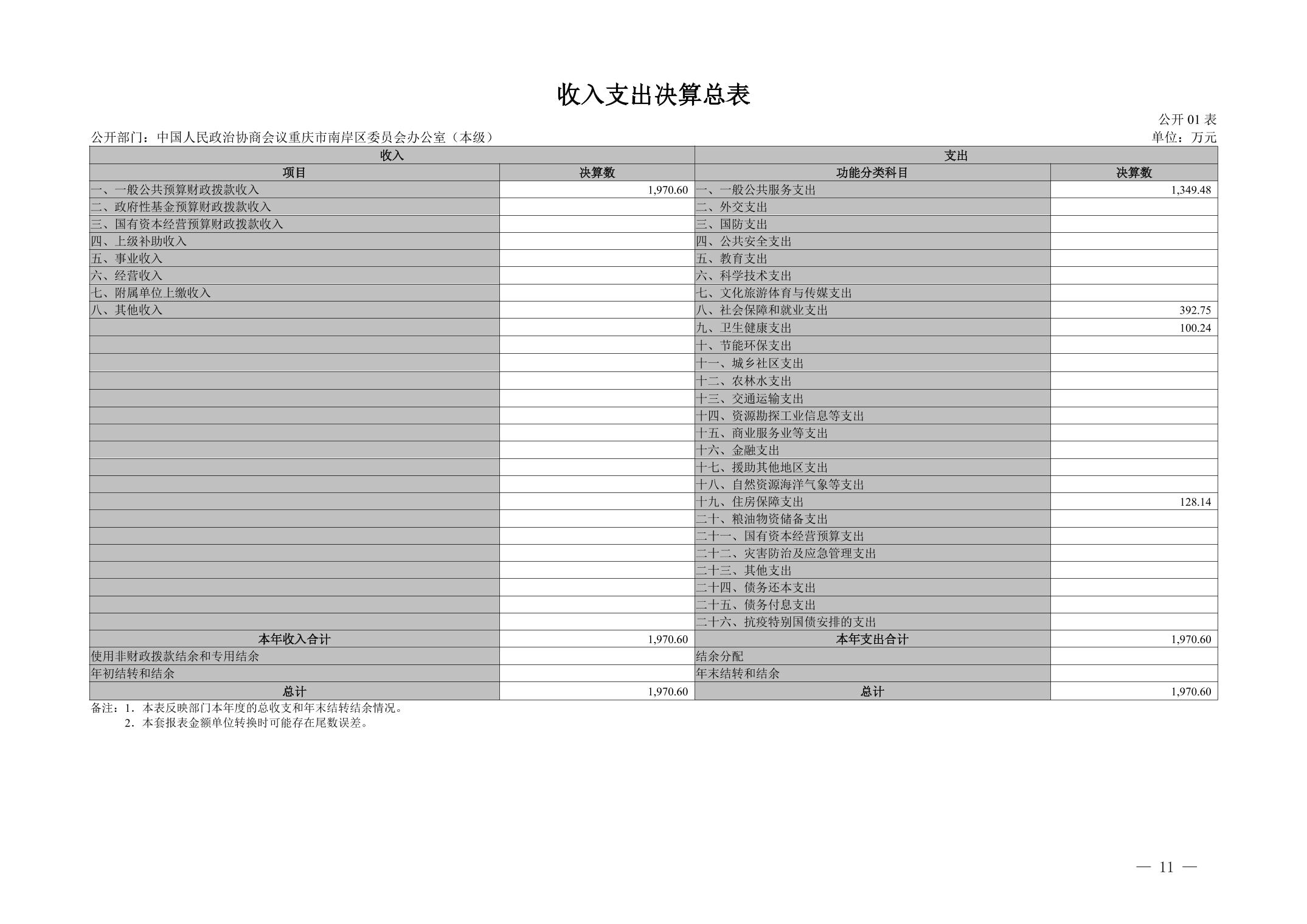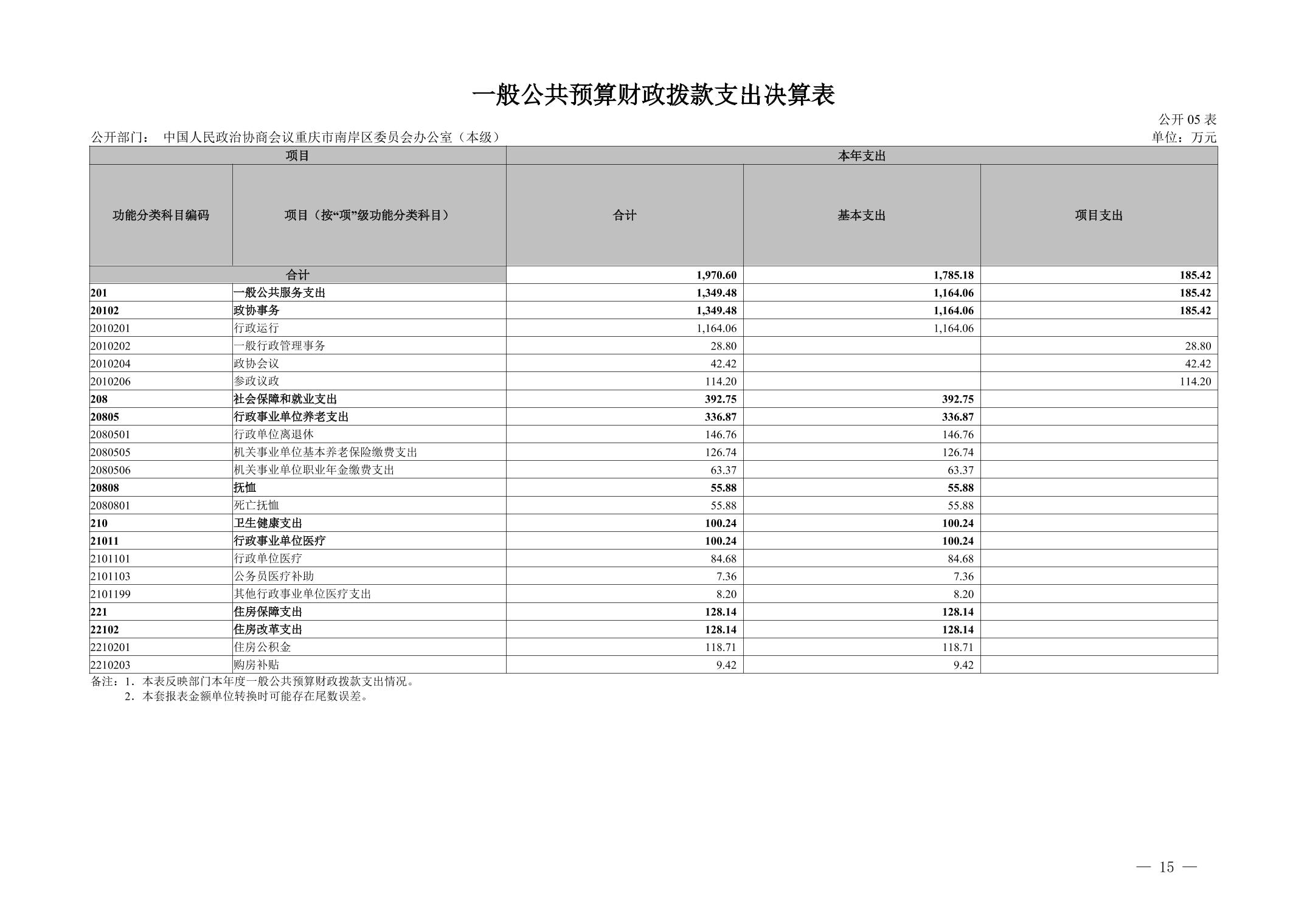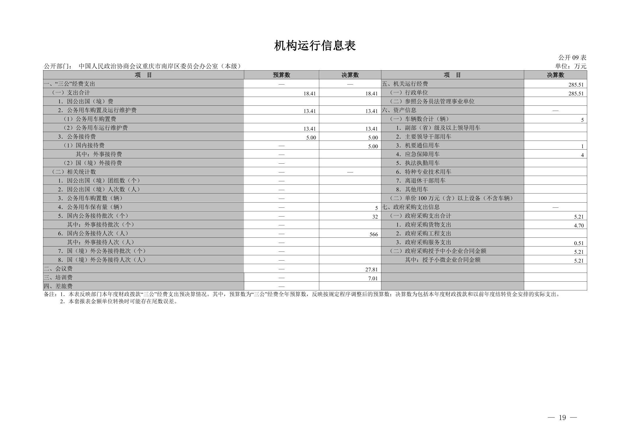 中国人民政治协商会议重庆市南岸区委员会办公室(本级)2024年度决算公开说明